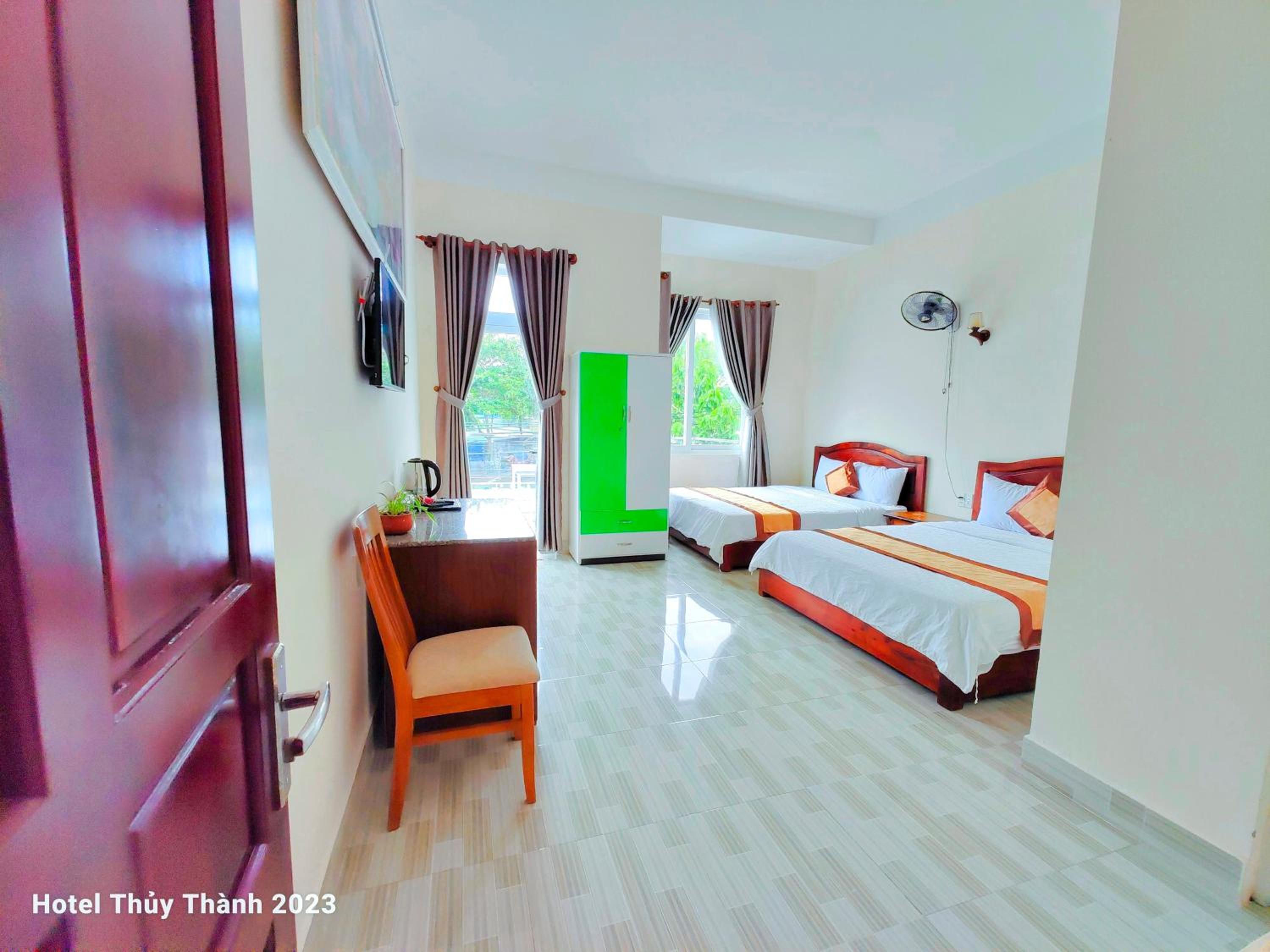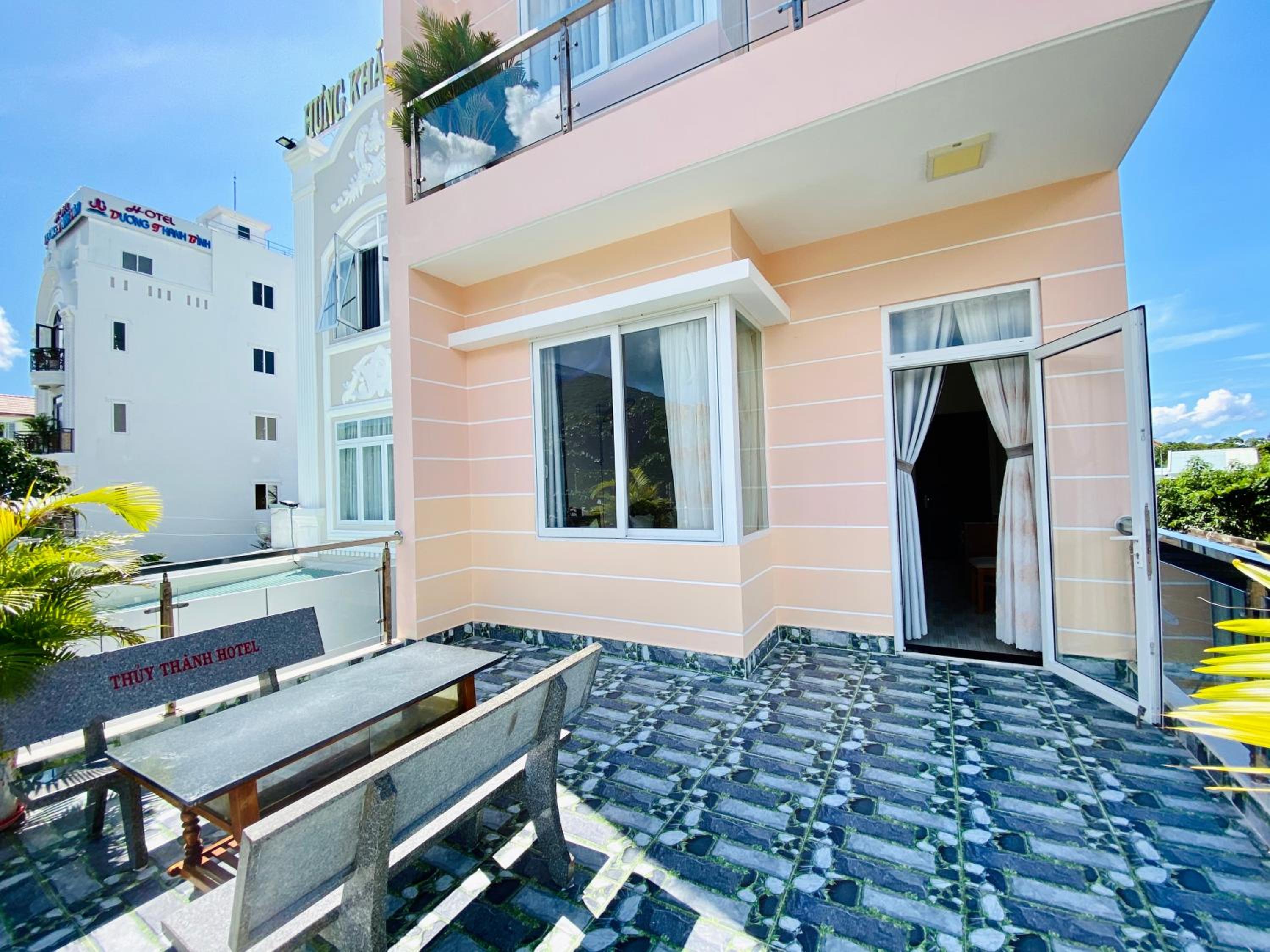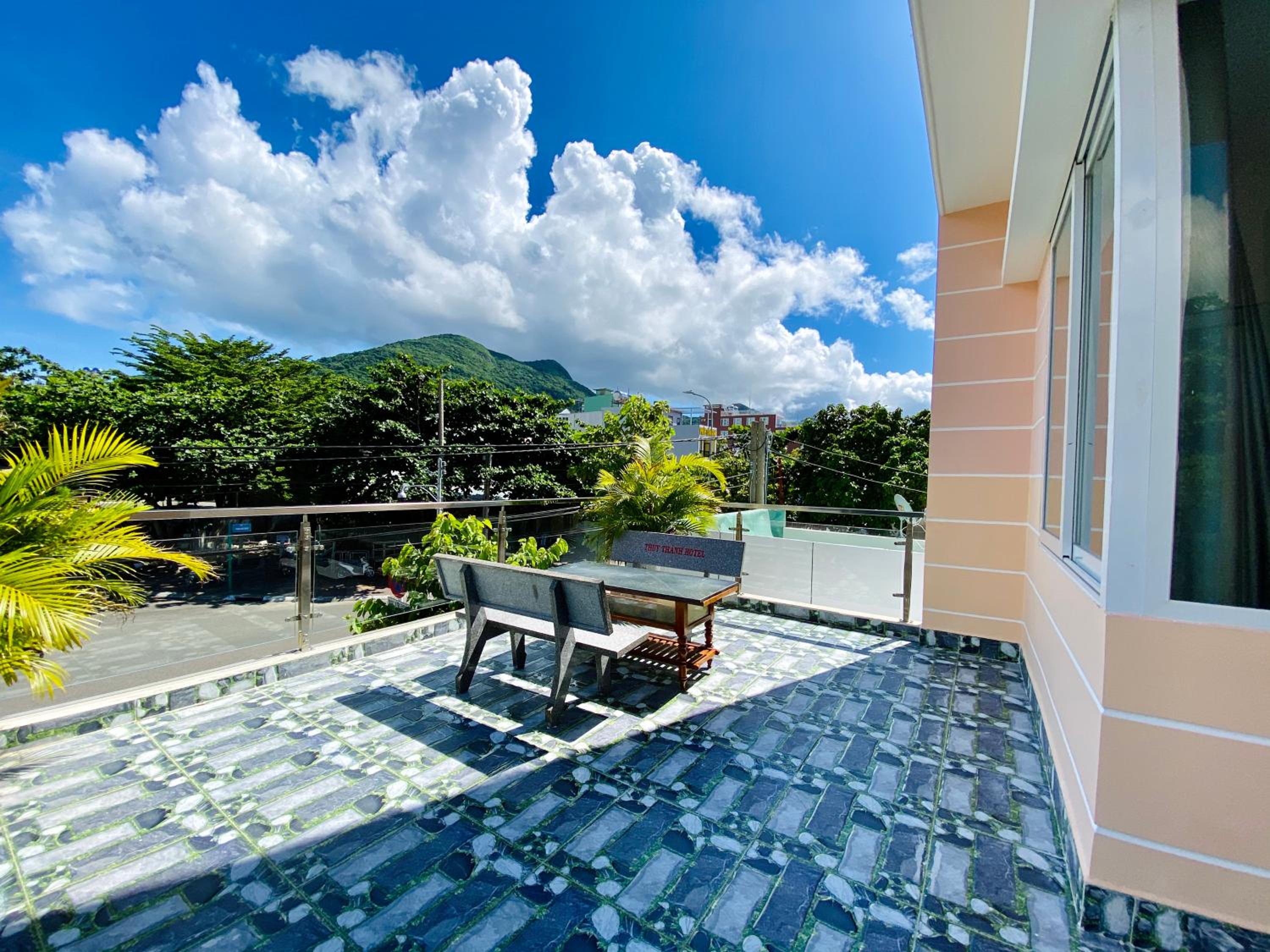 Escape to Thuy Thanh Hotel's private beach area for a serene retreat or unwind on the terrace while soaking in the breathtaking views.