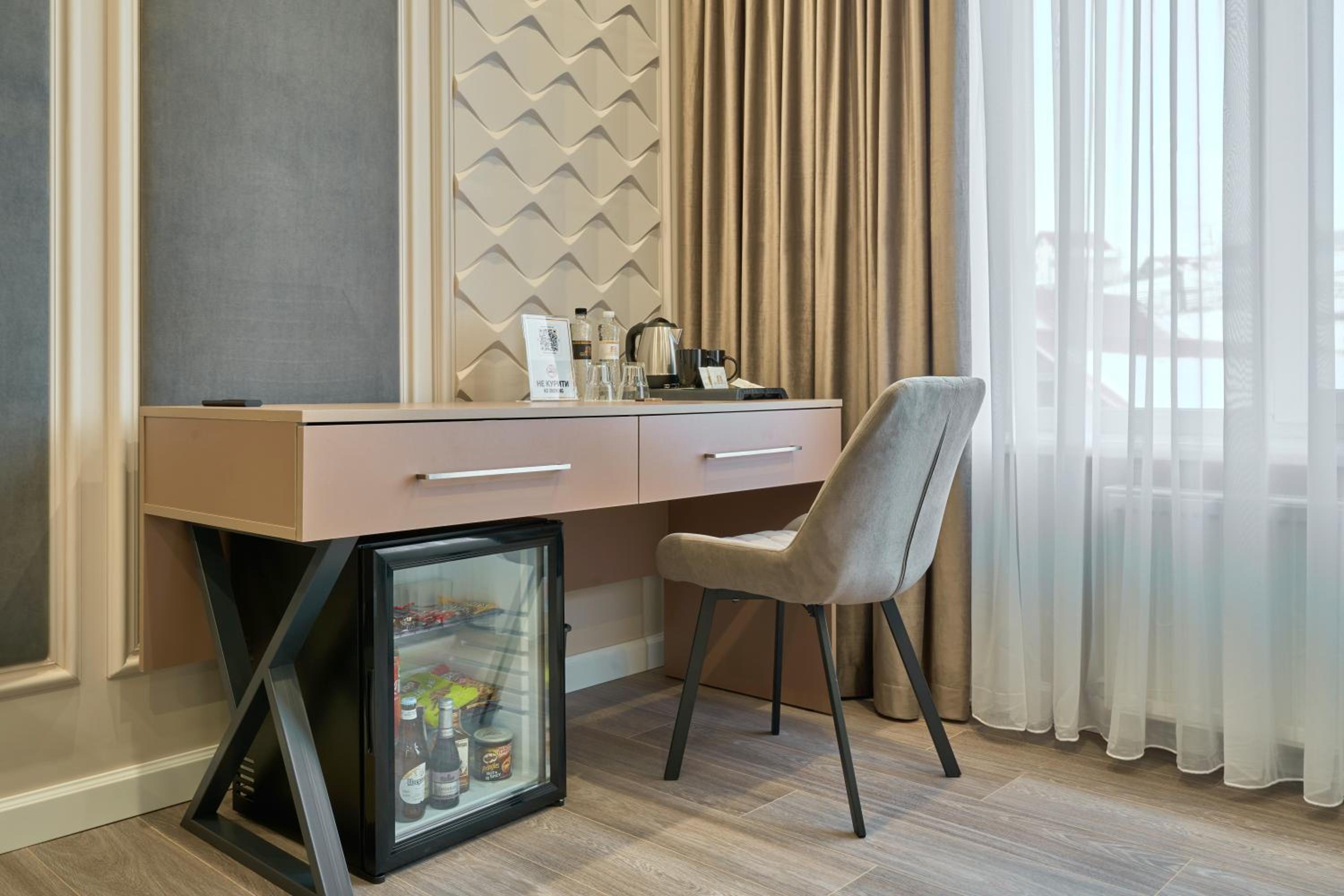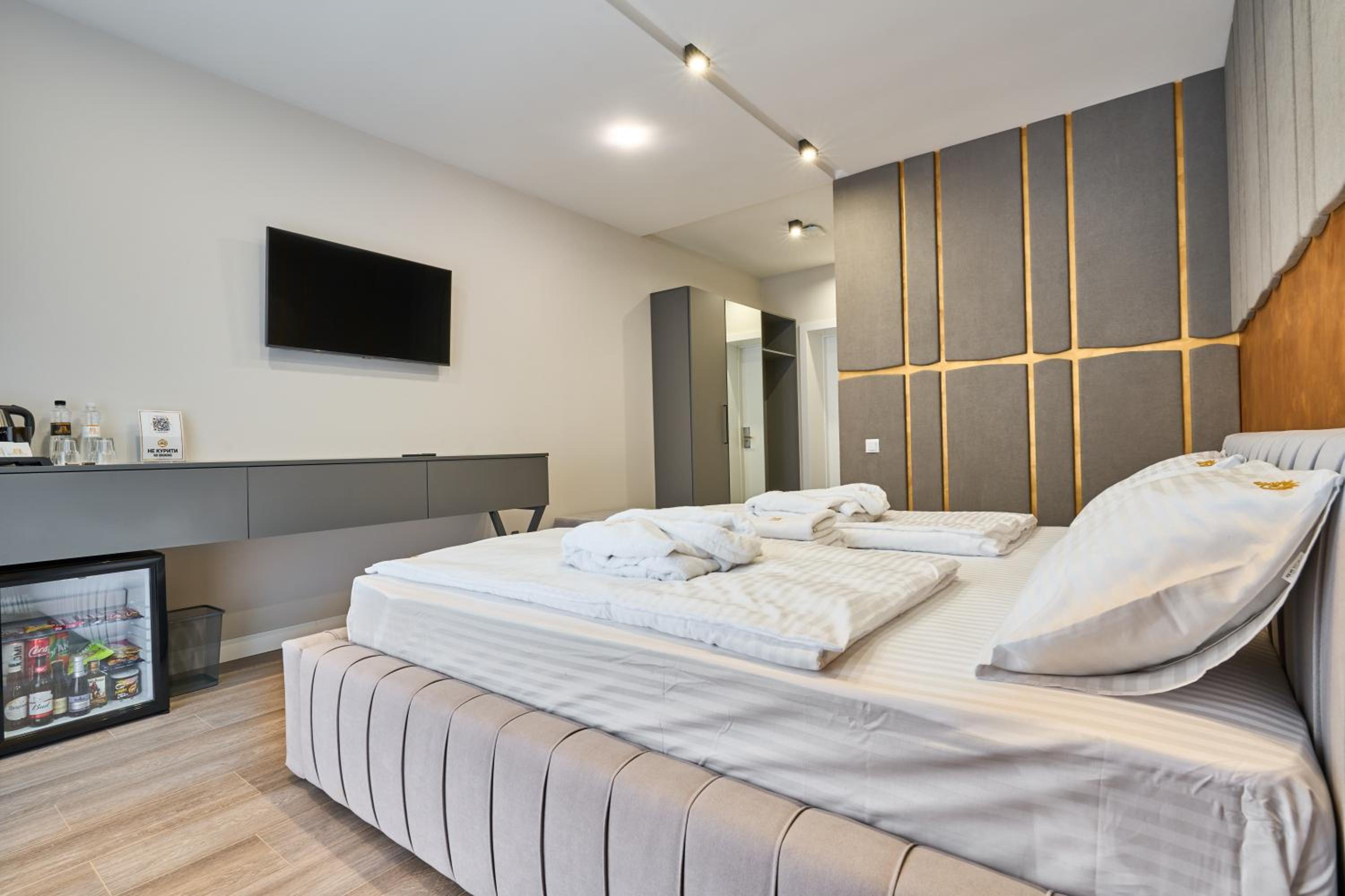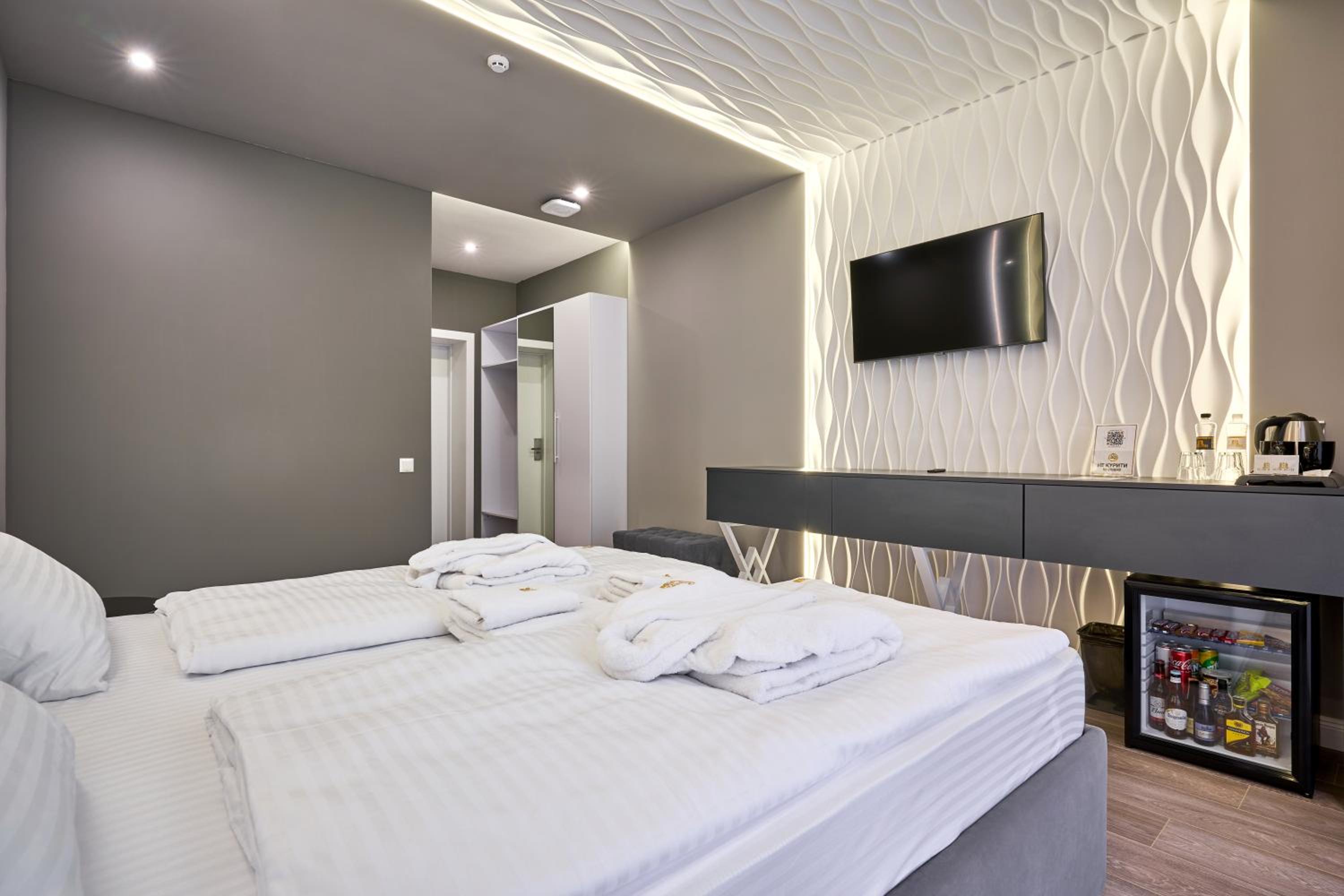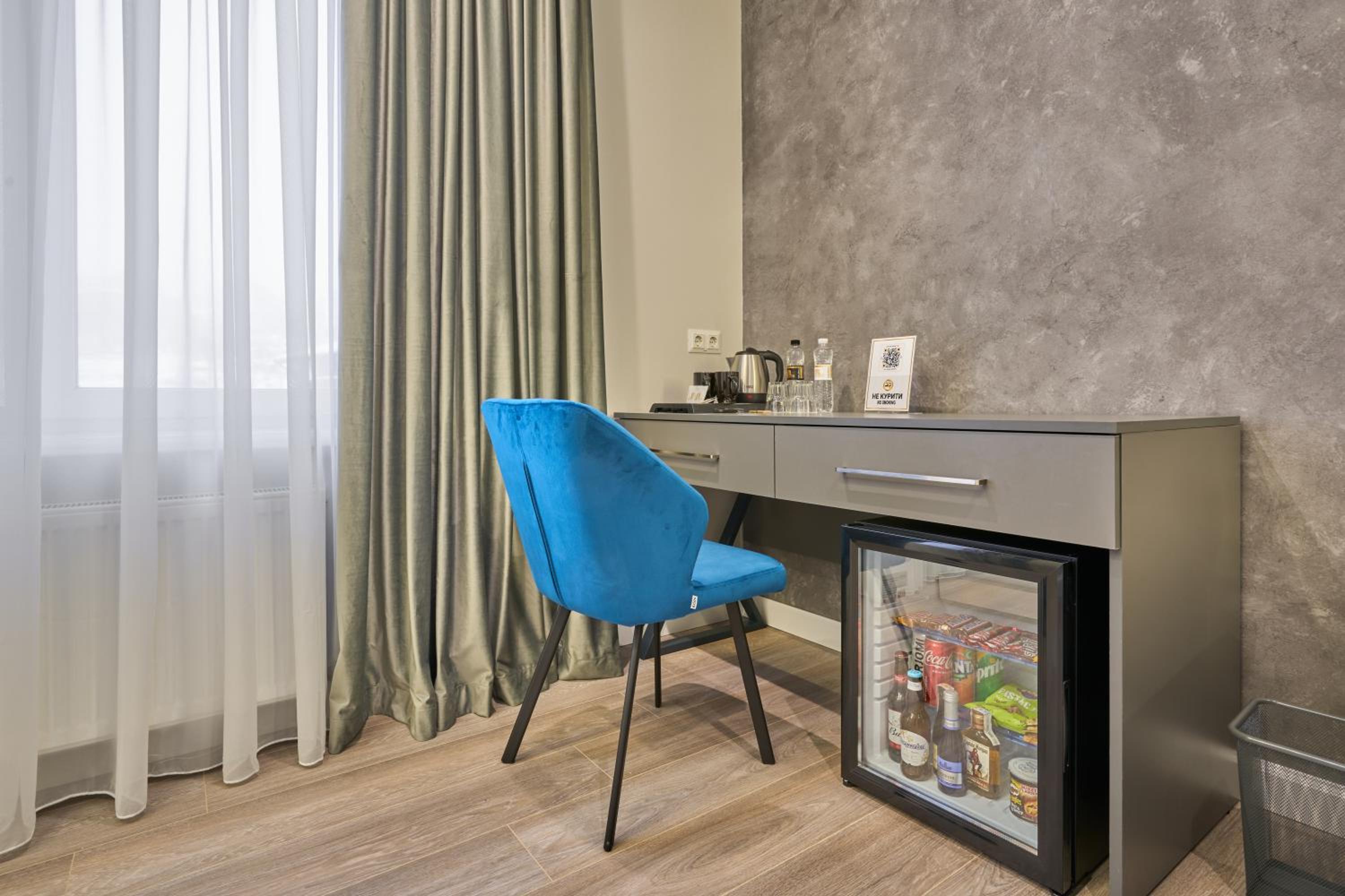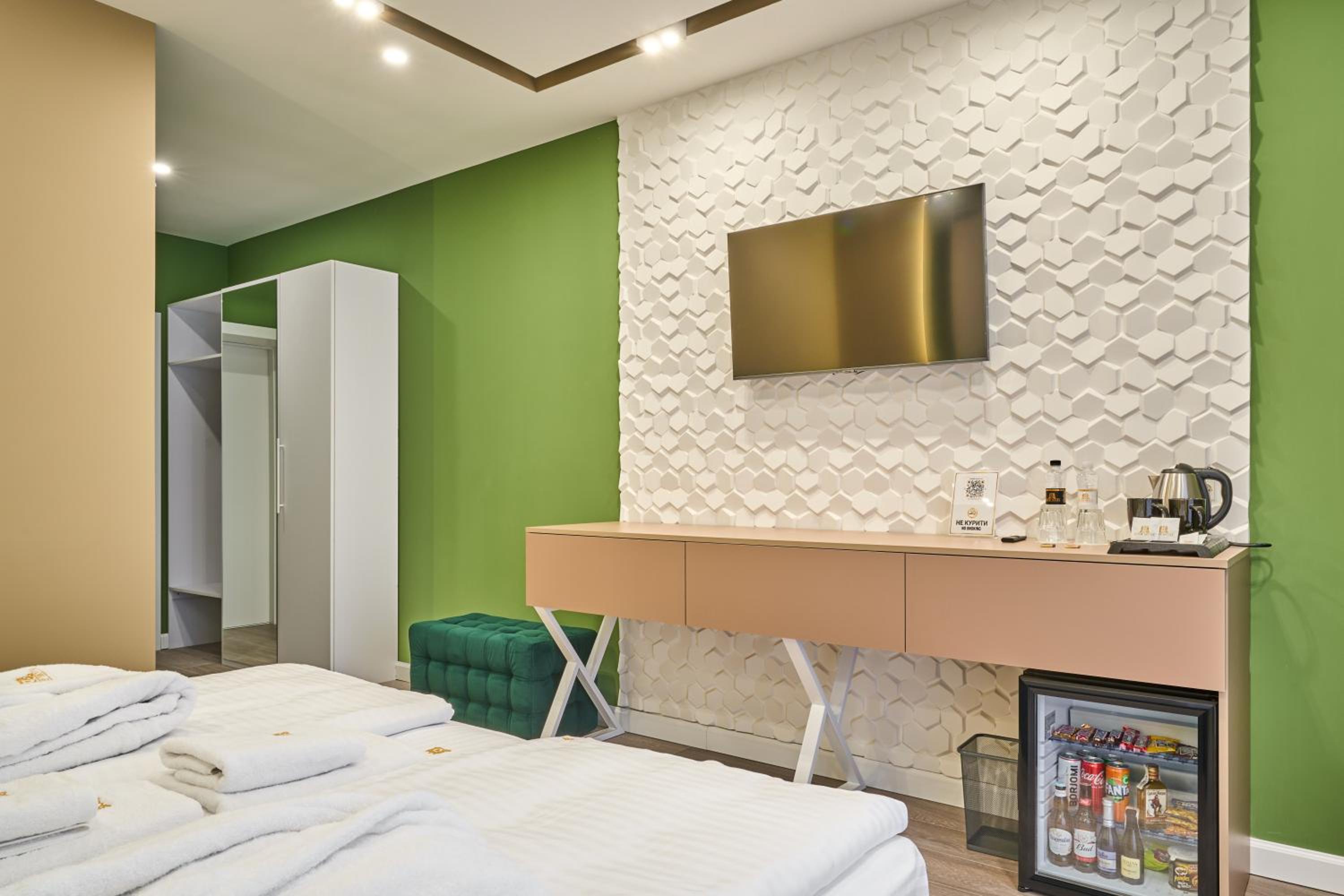 Прибирання в номері за 6 днів так і не сталось, хоча в правилах було написано що воно відбувається раз на 4-ри дні. Тож раджу вішати табличку про необхідність прибирання. Також майте на увазі, що холодильник у номері, це Бар, тобто він не підходить для зберігання продуктів, мається на увазі навіть тих сувенірних ковбас або сирів, що можна купити додому.