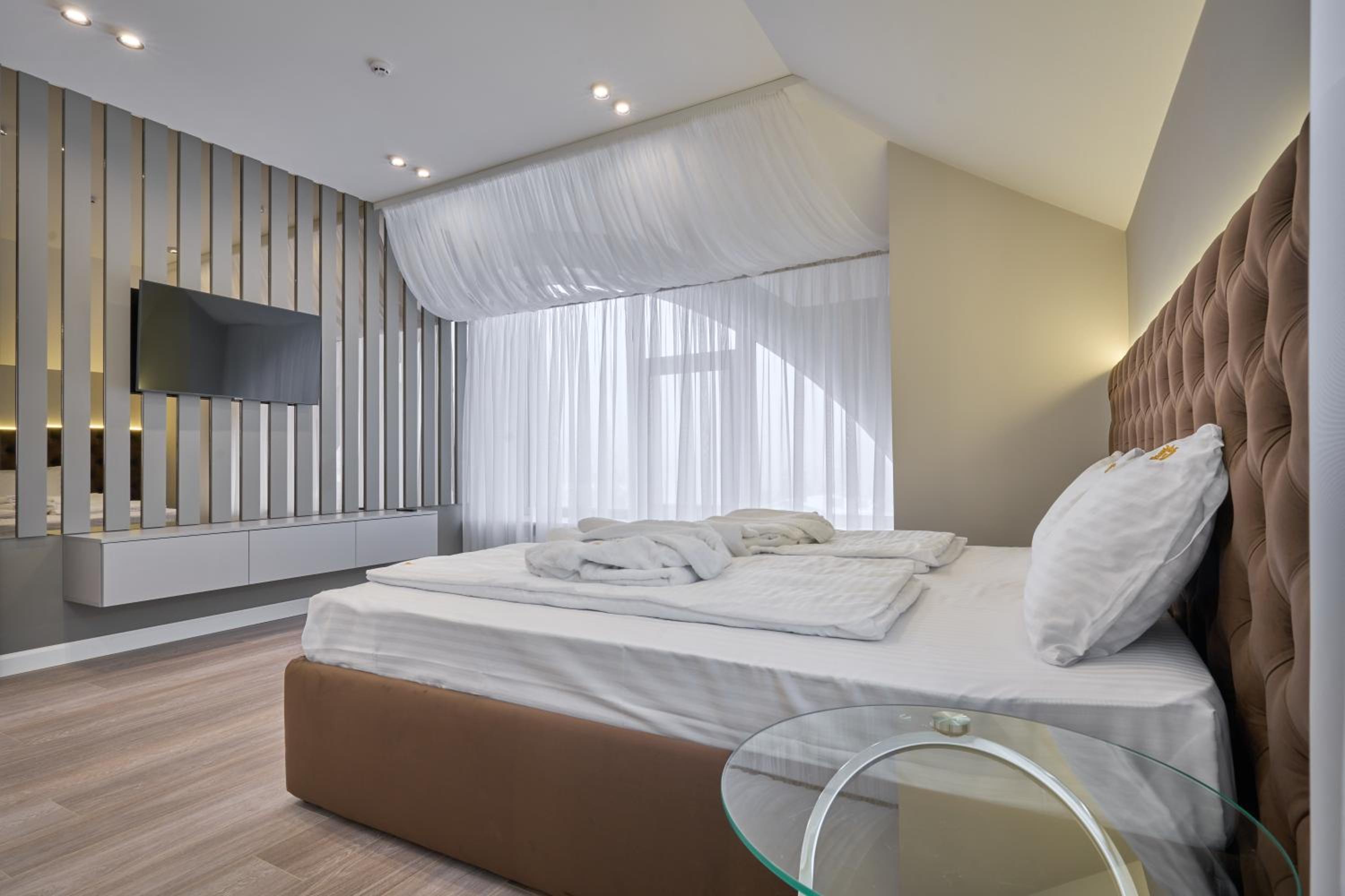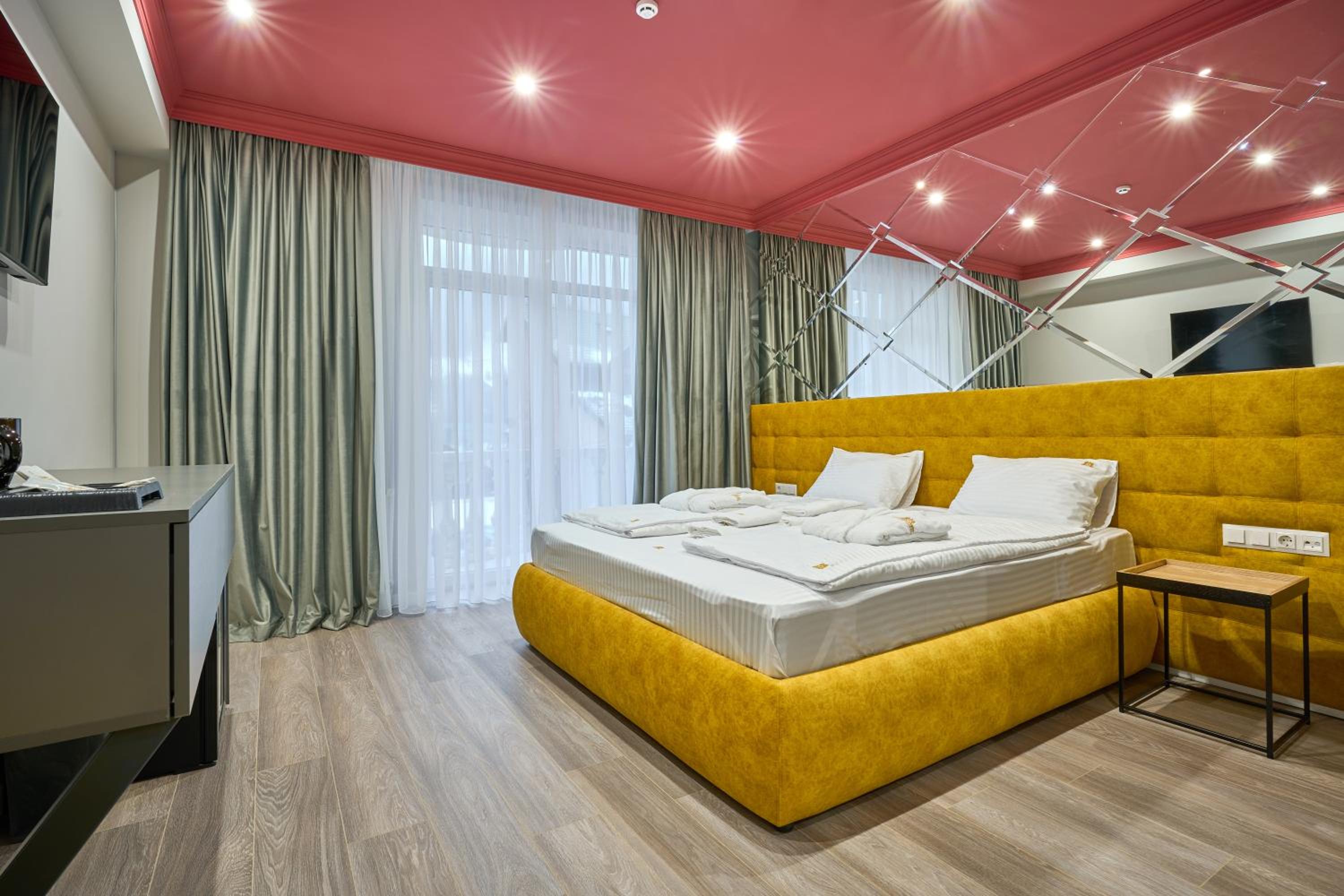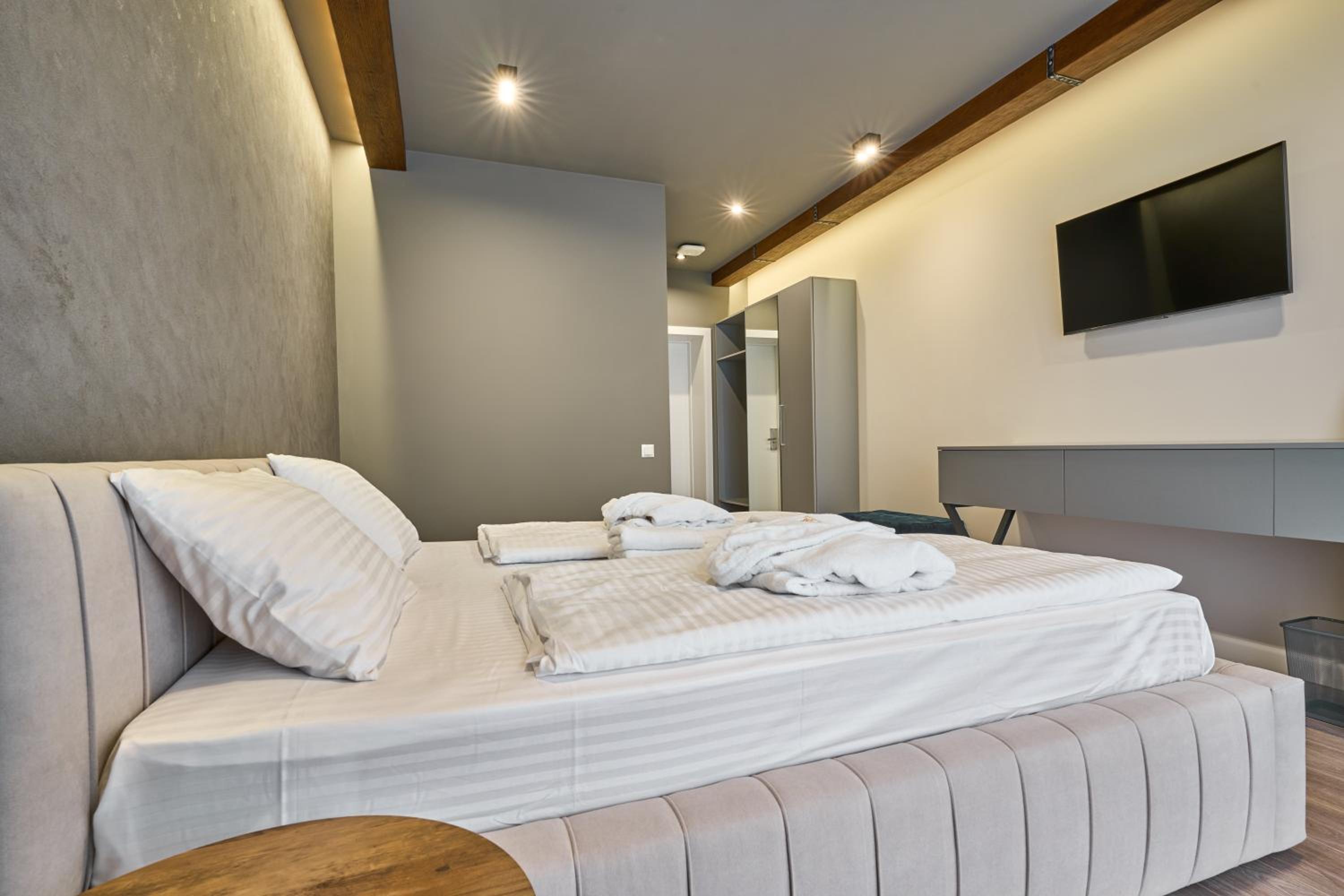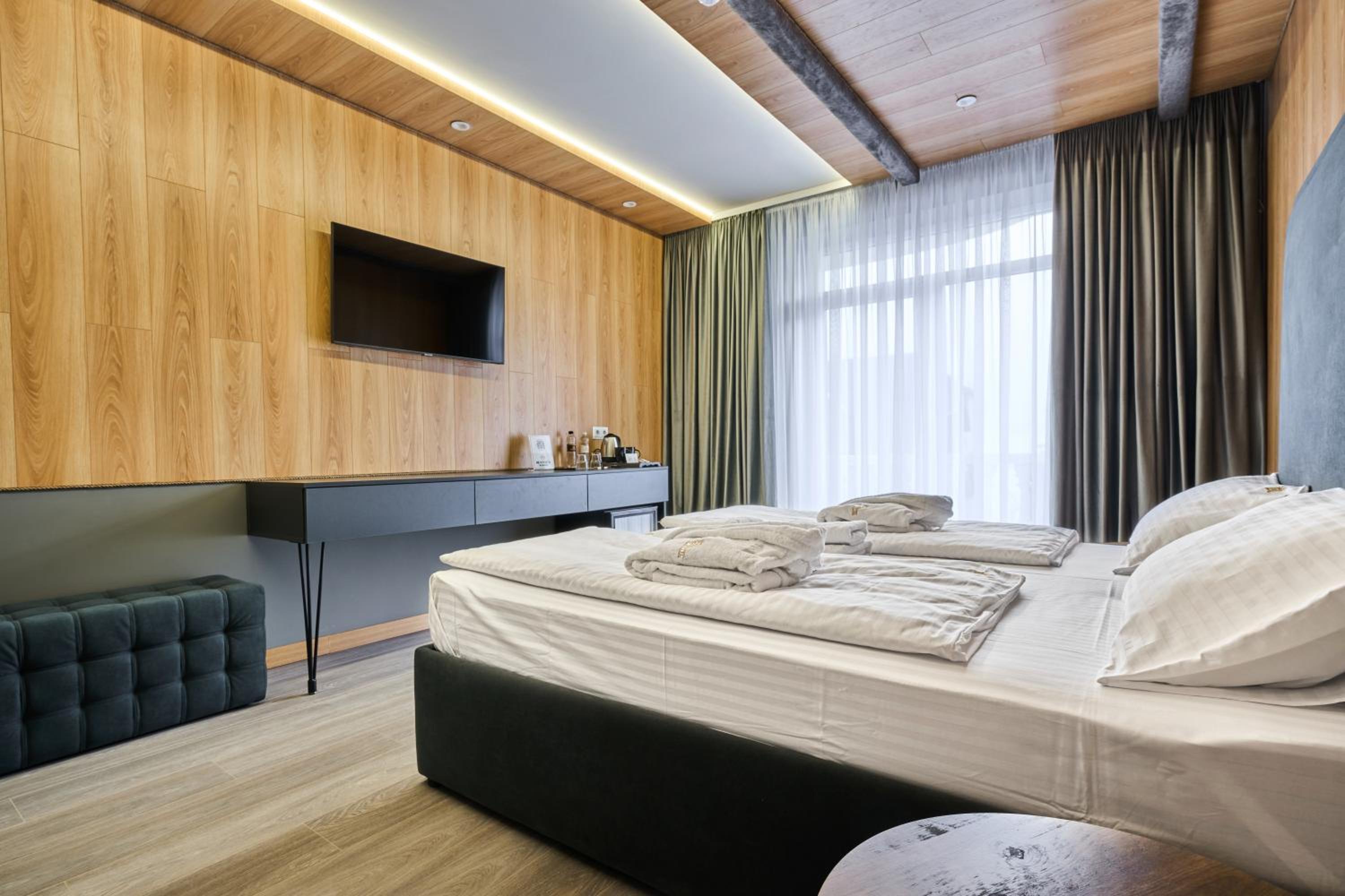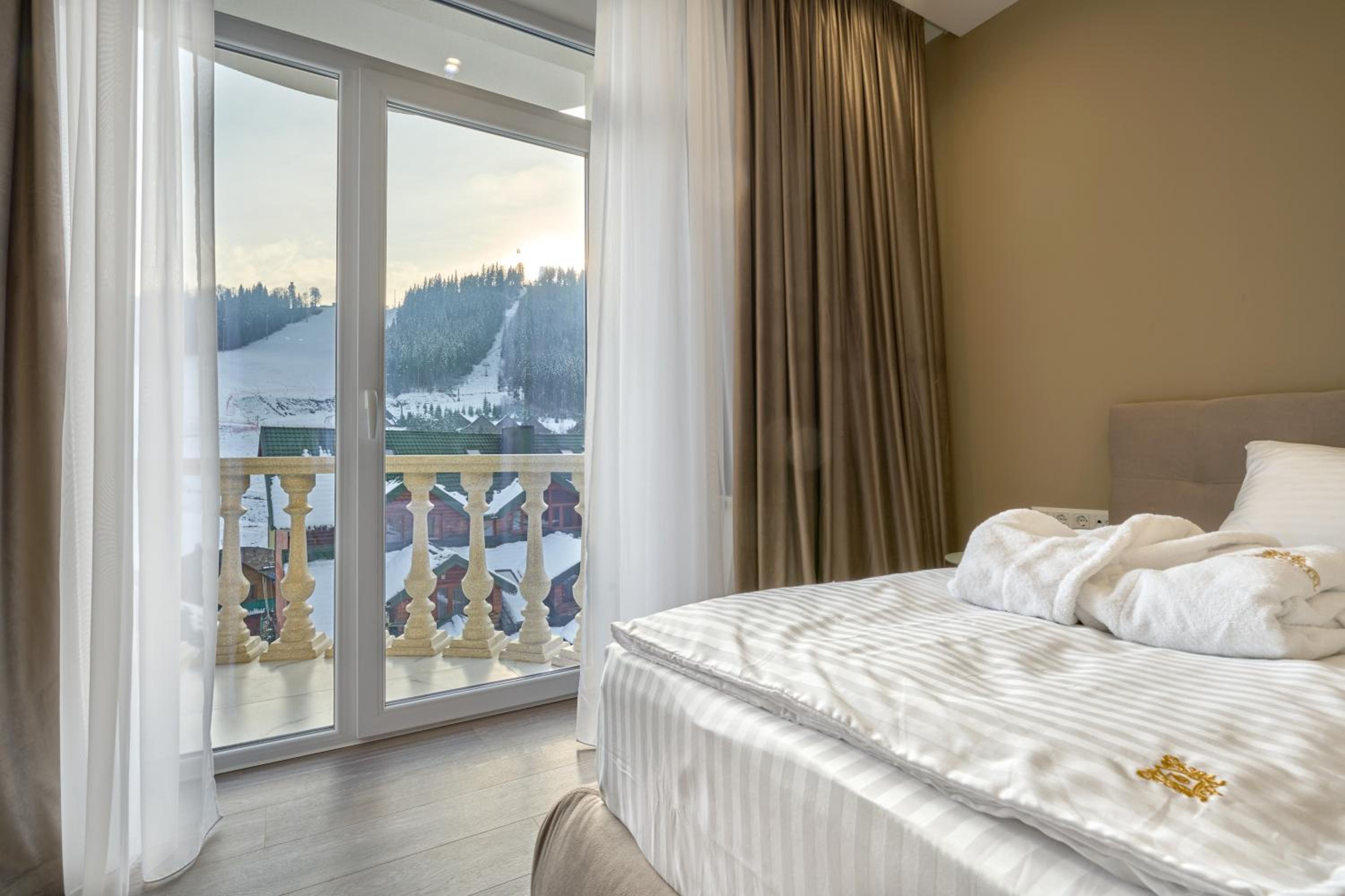 Convenience and Comfort: With complimentary private parking, room service, and cozy bedding, Olimp Hotel ensures a comfortable and hassle-free stay. Book now to experience the perfect blend of relaxation and excitement during your visit to Bukovel.