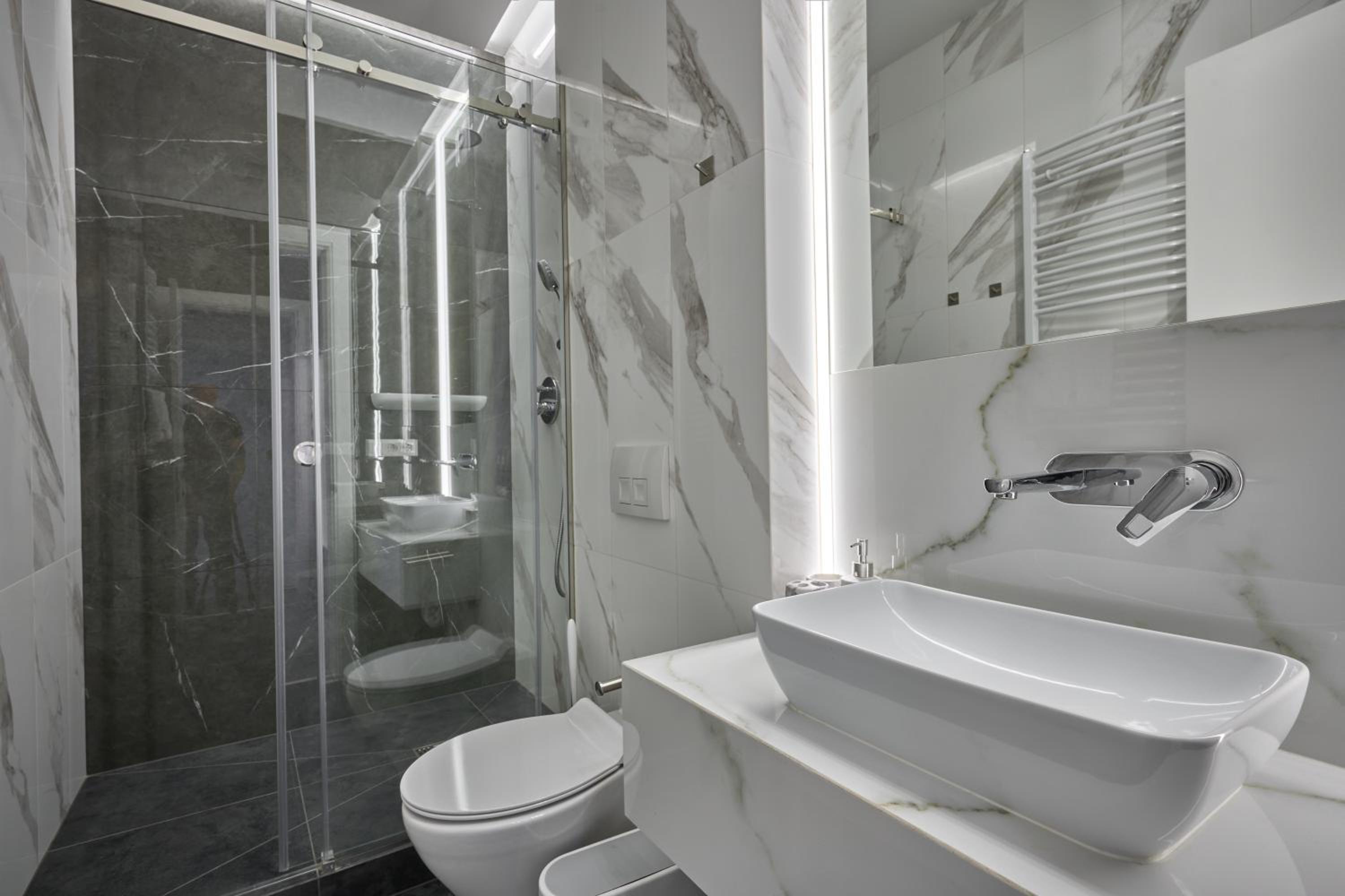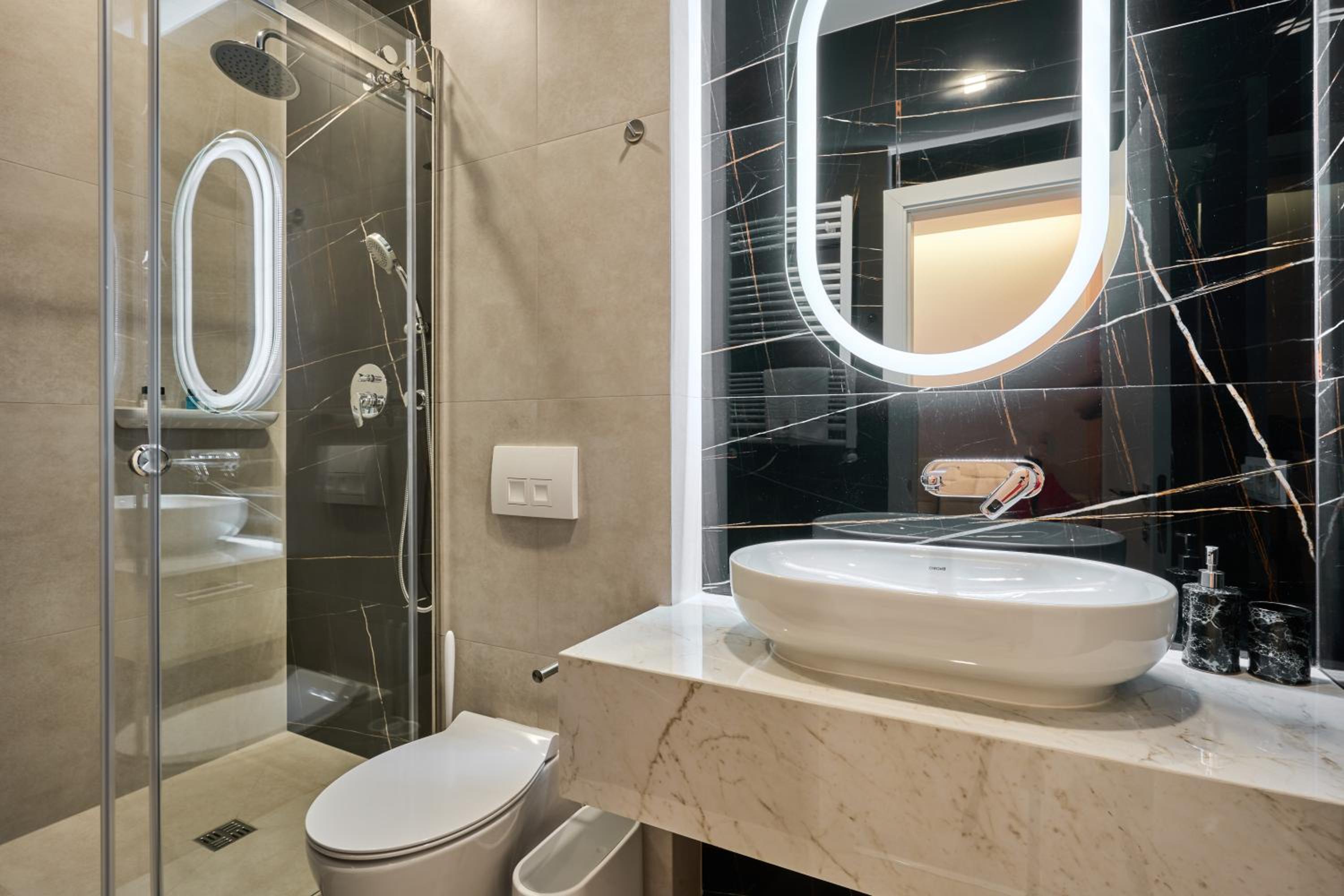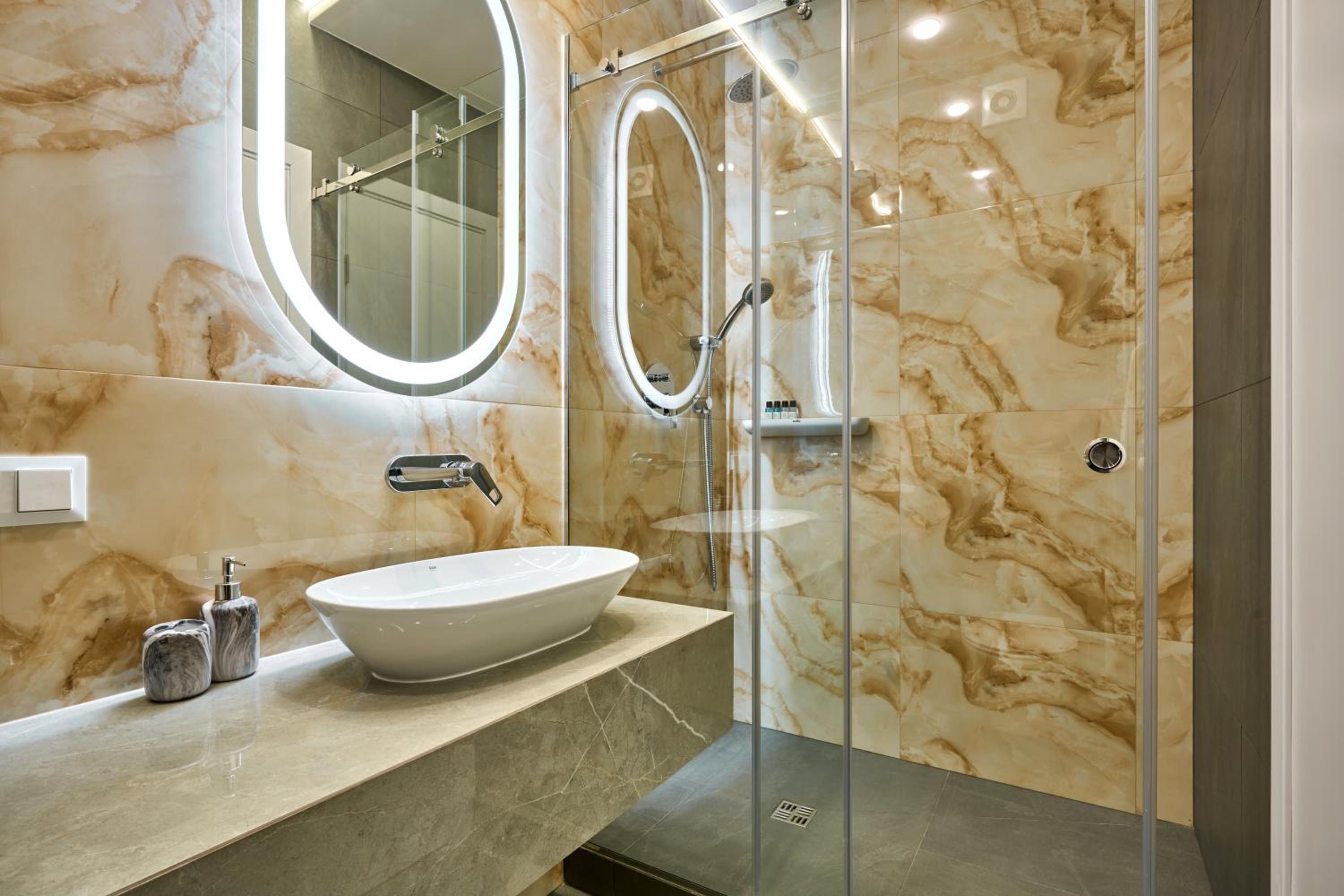 В номері відсутнє вечірнє світло, тільки дуже яскраве стельове освітлення, по вечорам перед сном хочеться менш яскравого освітлення.