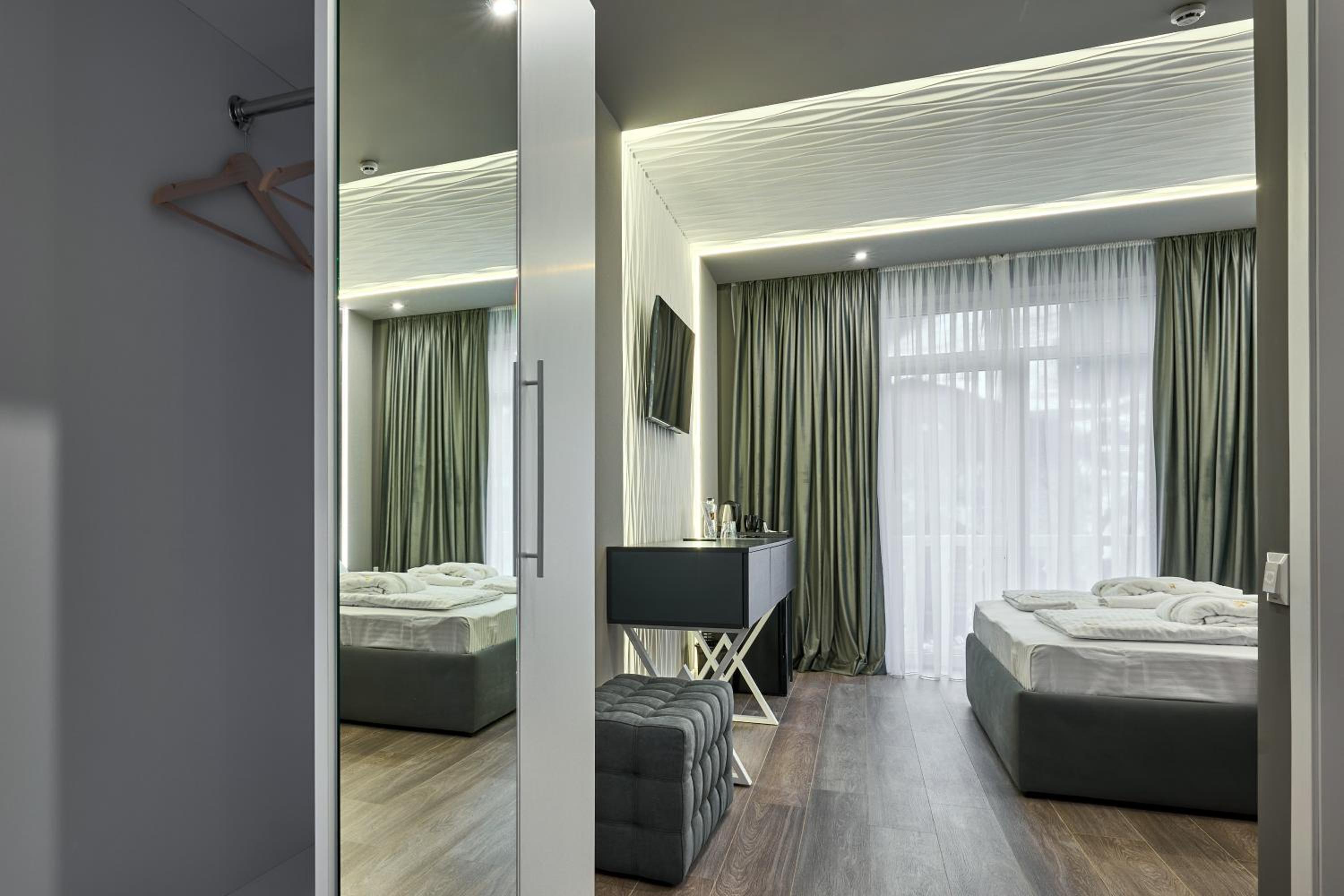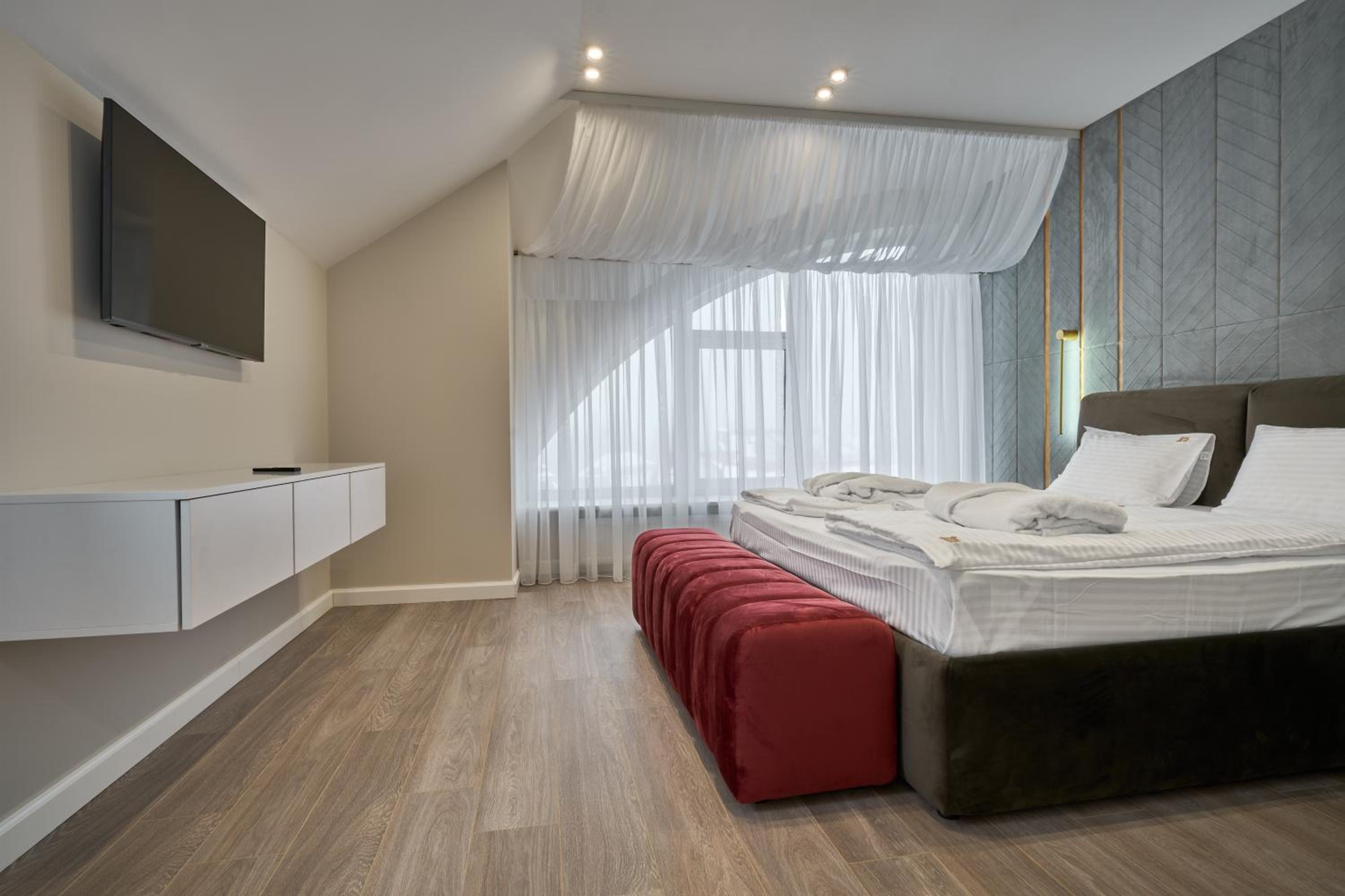 Сподобалось розташування готелю, великий гарний номер з свіжим ремонтом та його ідеальна чистота. Постійна гаряча вода з нормальним тиском. Білосніжна постіль та рушники. Зручне велике ліжко з якісними подушками. Всі номери готелю з видом на гори, це класне рішення. Привітний персонал готелю.