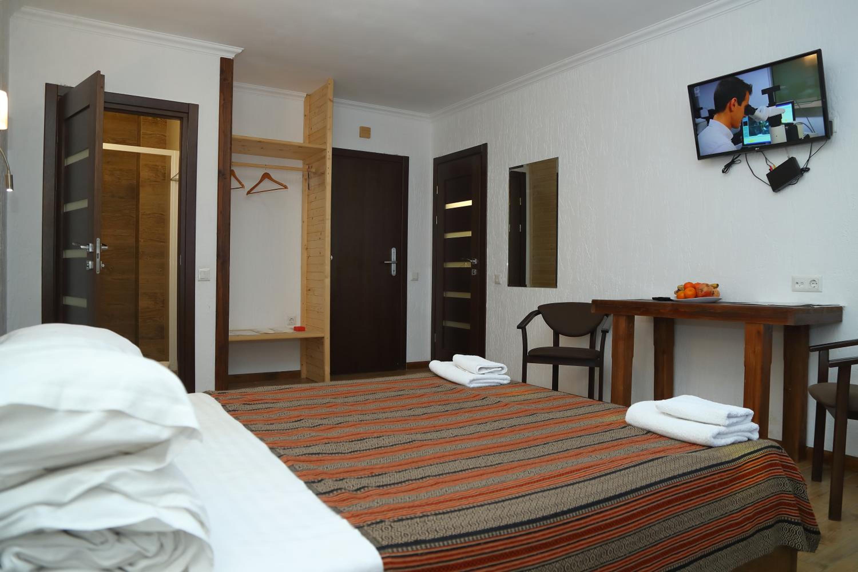 Отже, чистий, компактний і дуже теплий номер, ми скручували батареї на мінімум. Свіжа постіль і пахнючі рушники. Шо дивно, виспалась на готельному матраці) це для мене важливо! В номері є тв, сейф, холодильник, чайник. В загальному коридорі кулер з питною водою. Не звернула уваги щоб мені чогось бракувало.
