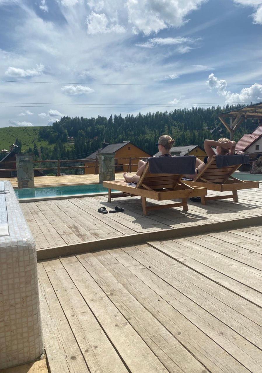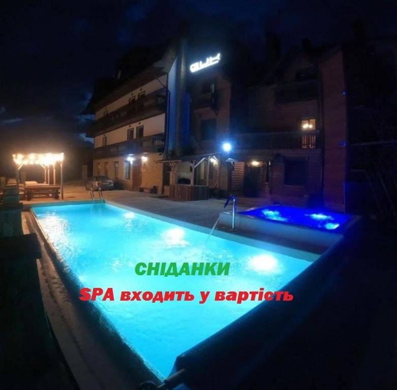 Авжеж є сауна, чан, джакузі- для зимового відпочинку і відкритий басейн з лежаками, терасою і баром - для літа.