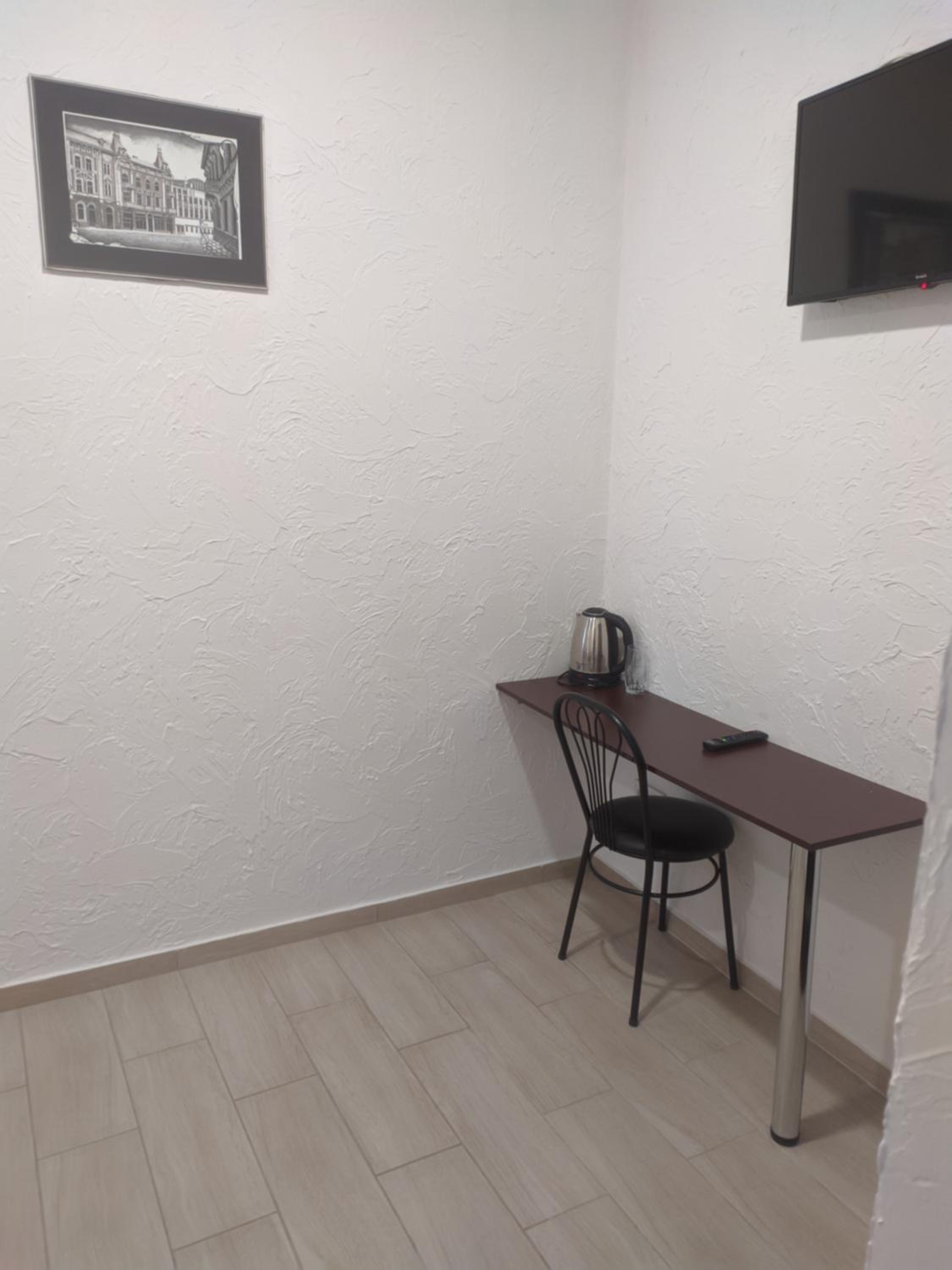 В номере нет електрочайника заварить чай. Купить можно в отеле на рецепции за 30грн)))