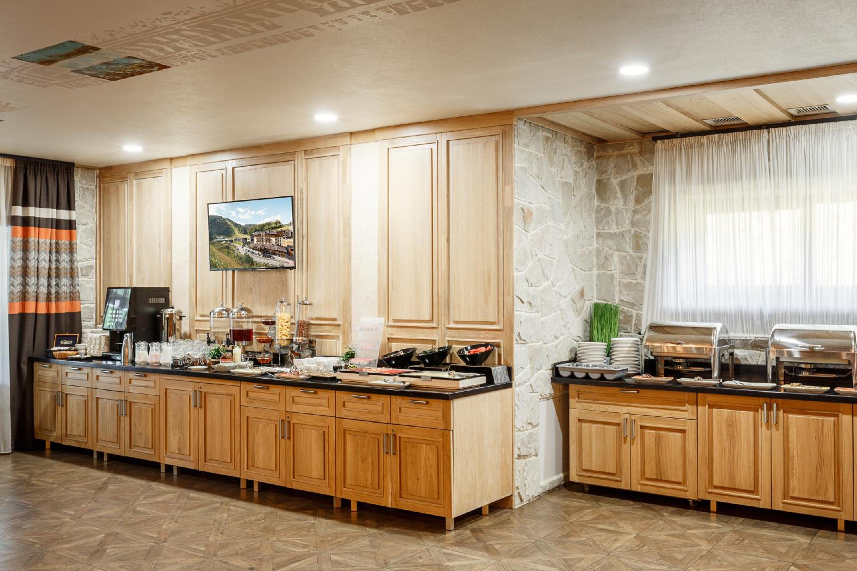 Номер був кутовий, тому було доволі прохолодно, а якщо ввімкнути батареі - занадто спекотно. Також за півгодини до кінеця сніданку інколи вже не було деяких позицій