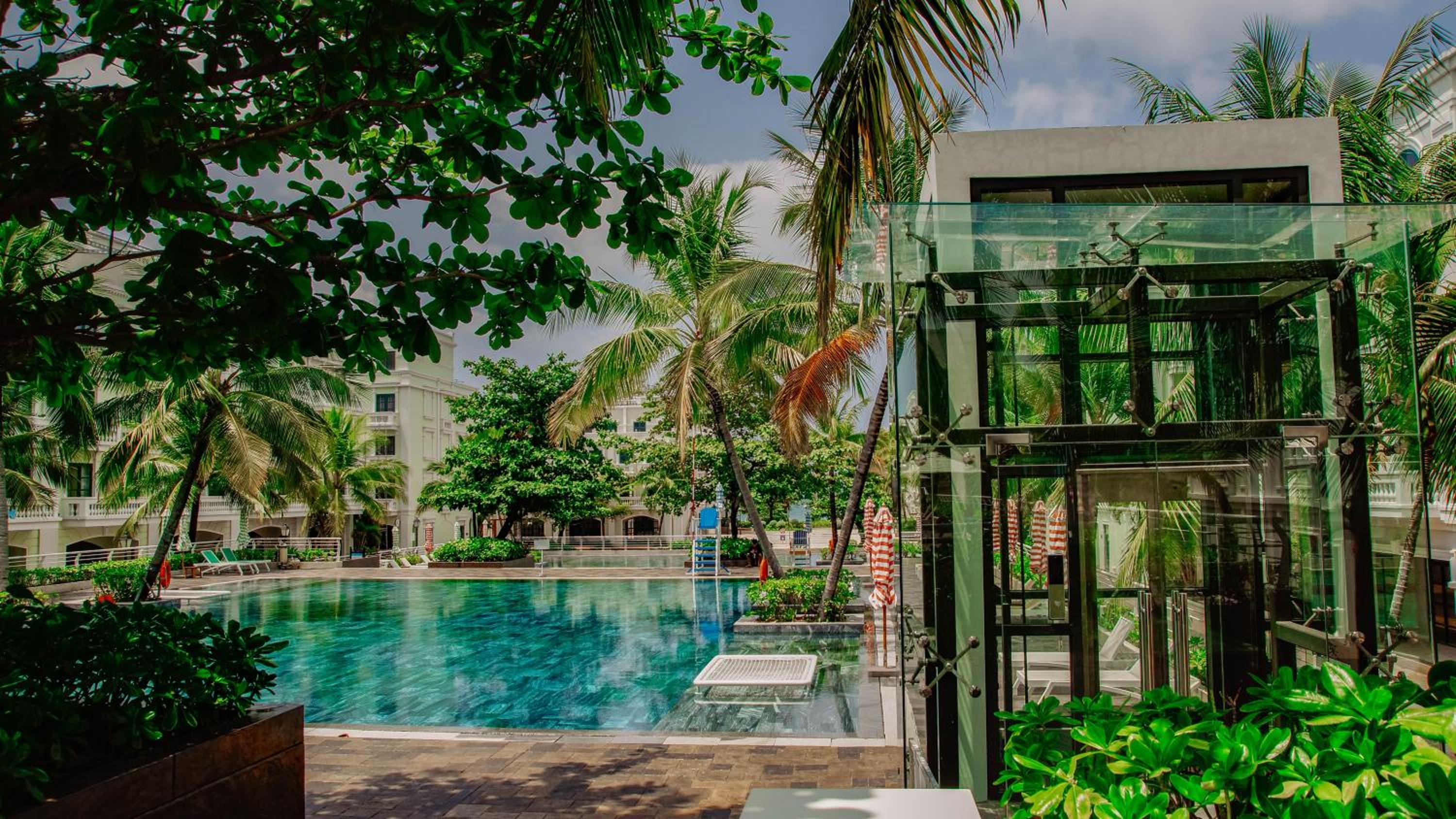 Phòng đầy đủ tiện nghi và sạch sẽ, gần biển, có hồ bơi nhưng hơi xa trung tâm.