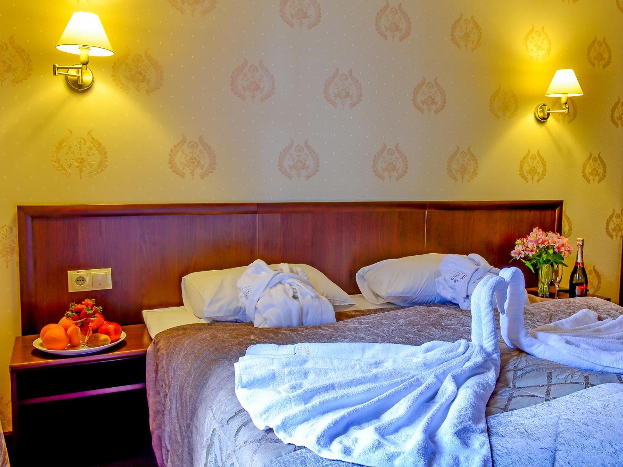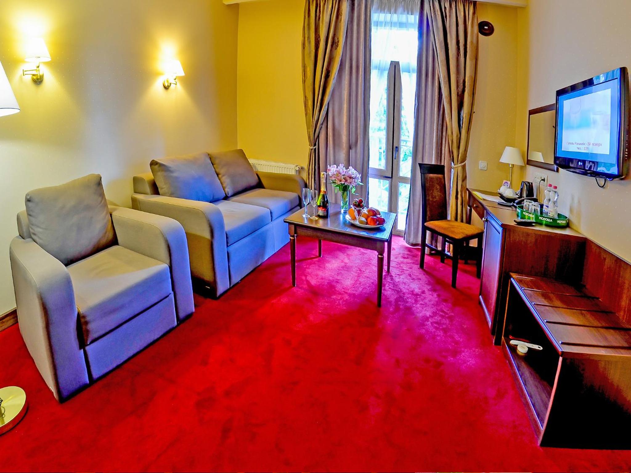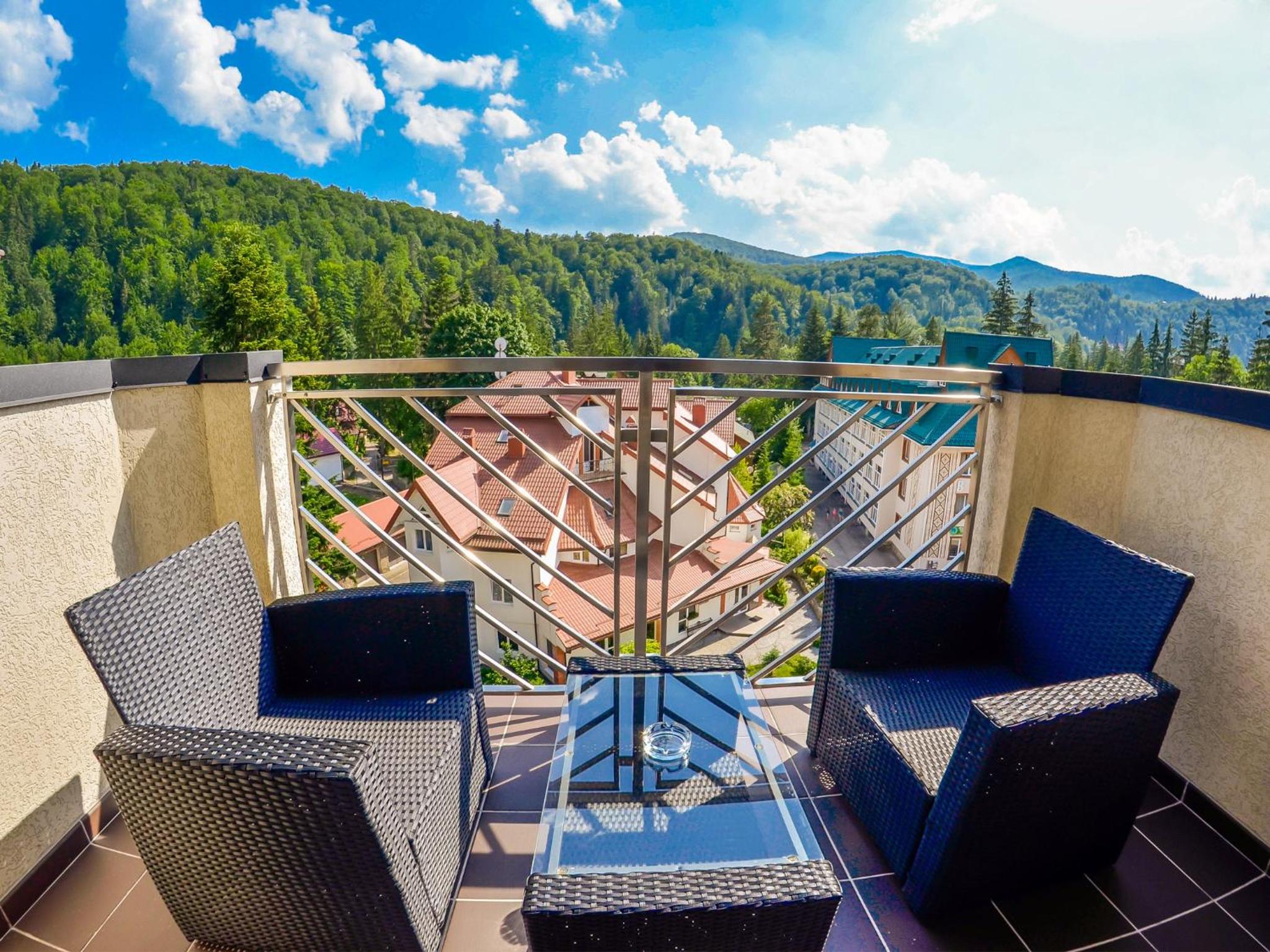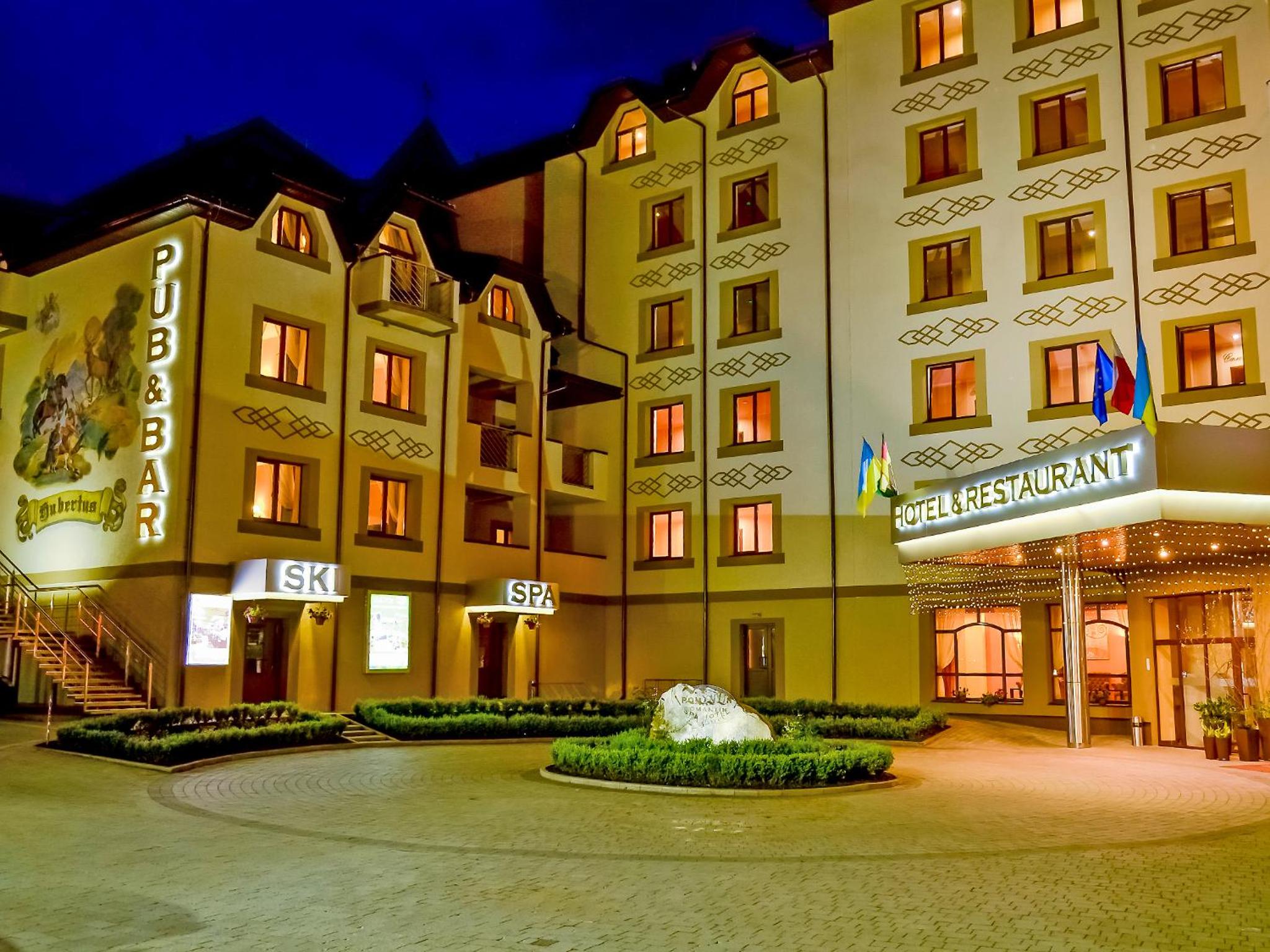 Culinary Delights and Nearby Attractions: Indulge in Ukrainian and European cuisine at Romantik Spa Restaurant or sip on drinks at the lobby bar. Explore the Yaremcha Souvenir Market, marvel at the Probiy Waterfall, or hit the slopes at Bukovel Ski Resort, all just a short distance away.