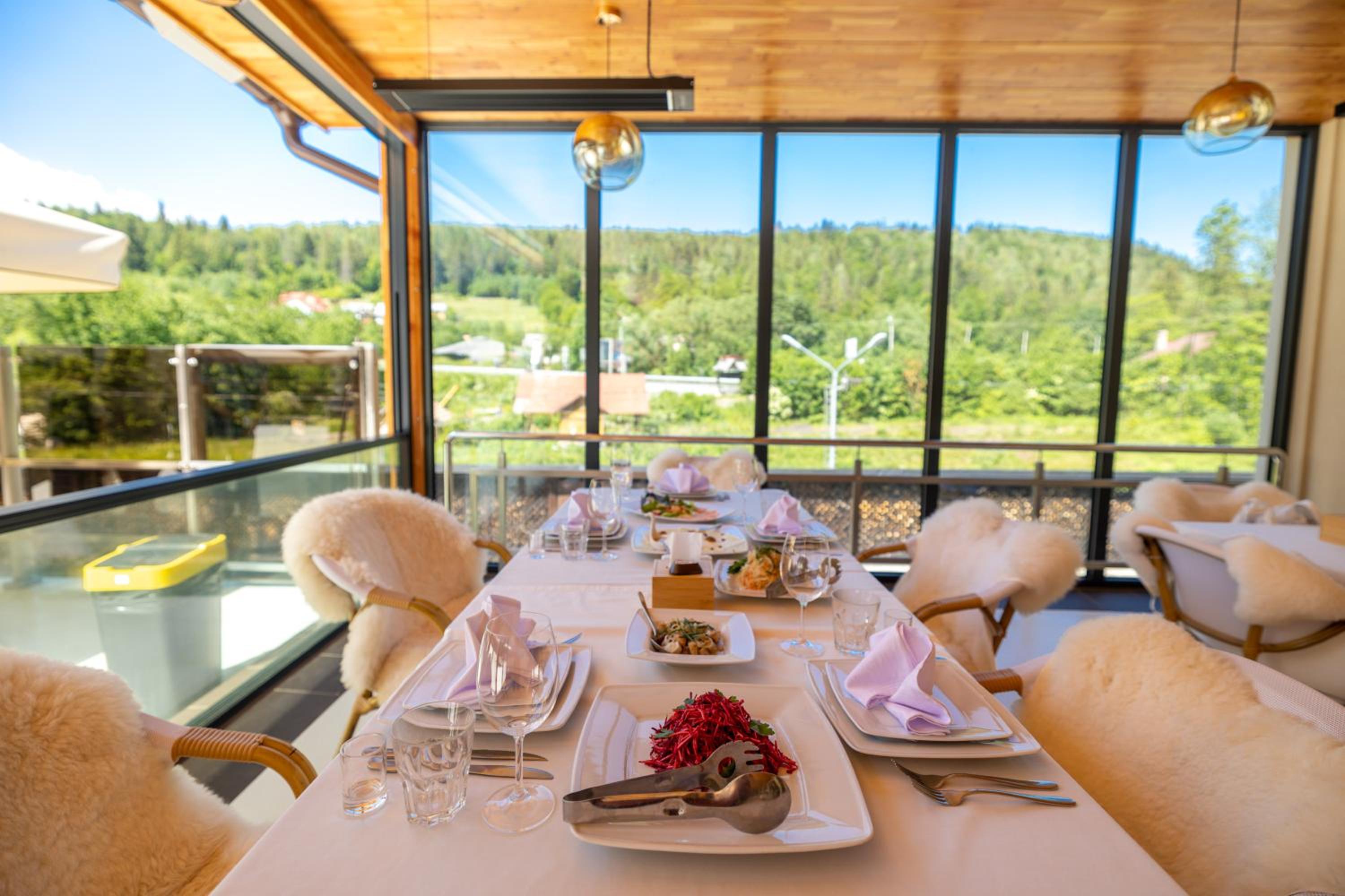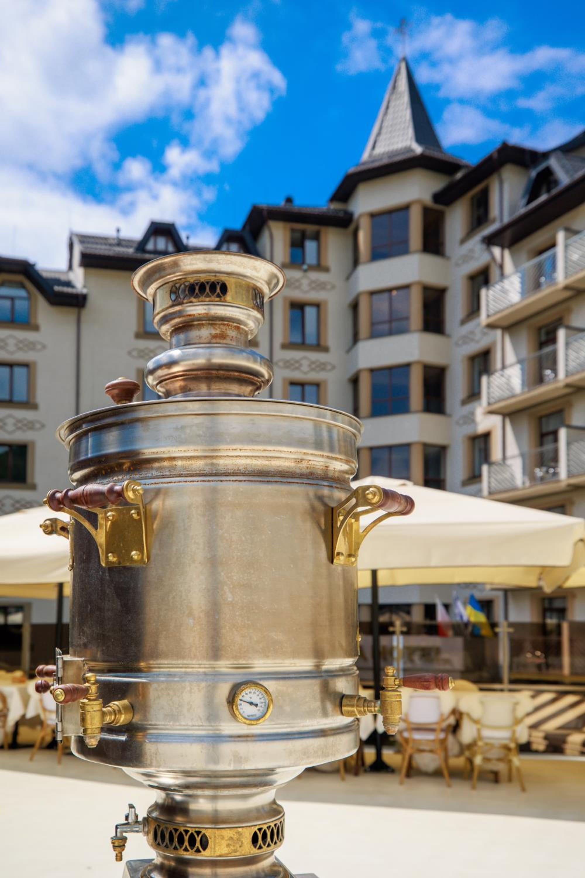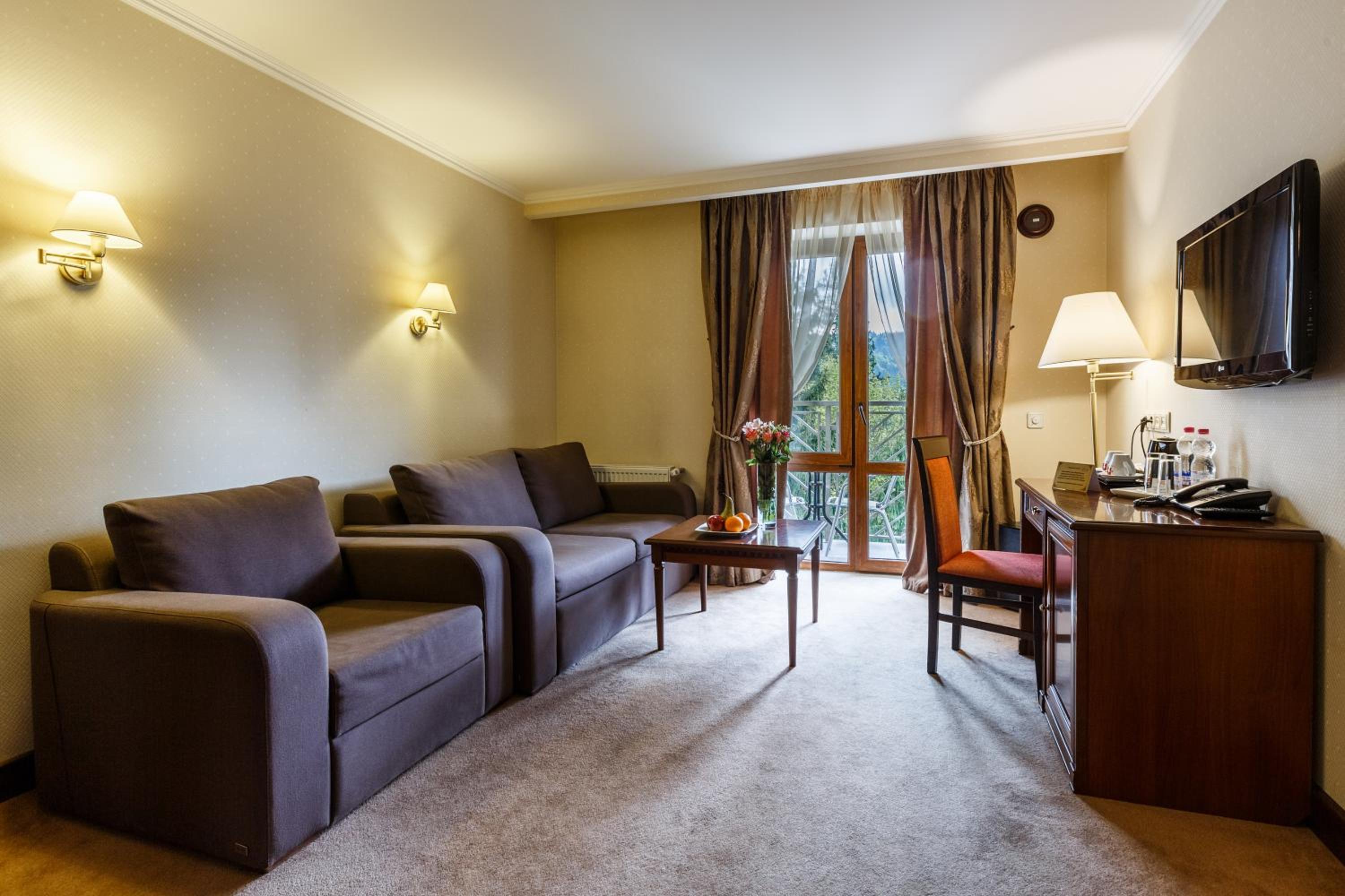 Culinary Delights and Nearby Attractions: Indulge in Ukrainian and European cuisine at Romantik Spa Restaurant or sip on drinks at the lobby bar. Explore the Yaremcha Souvenir Market, marvel at the Probiy Waterfall, or hit the slopes at Bukovel Ski Resort, all just a short distance away.