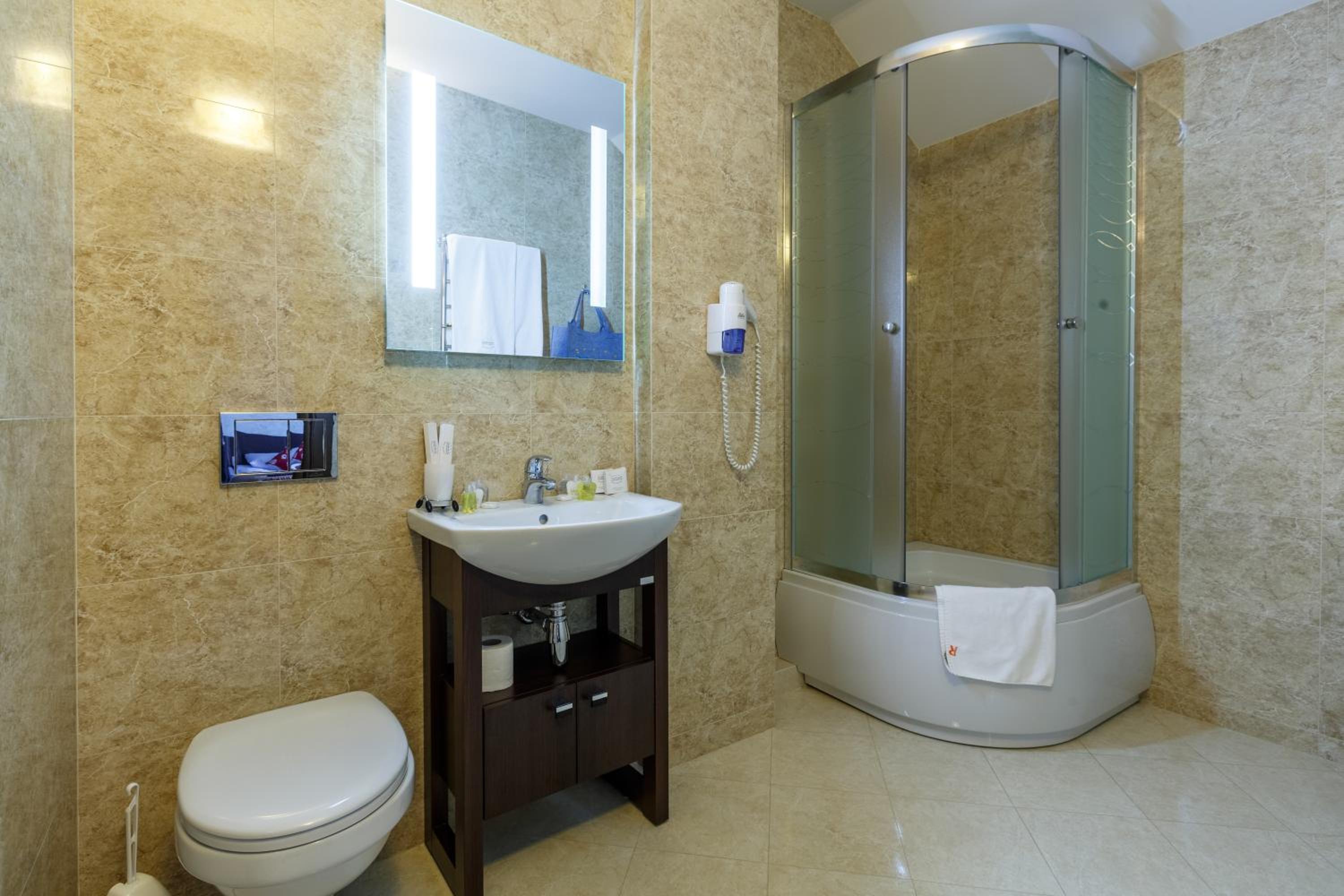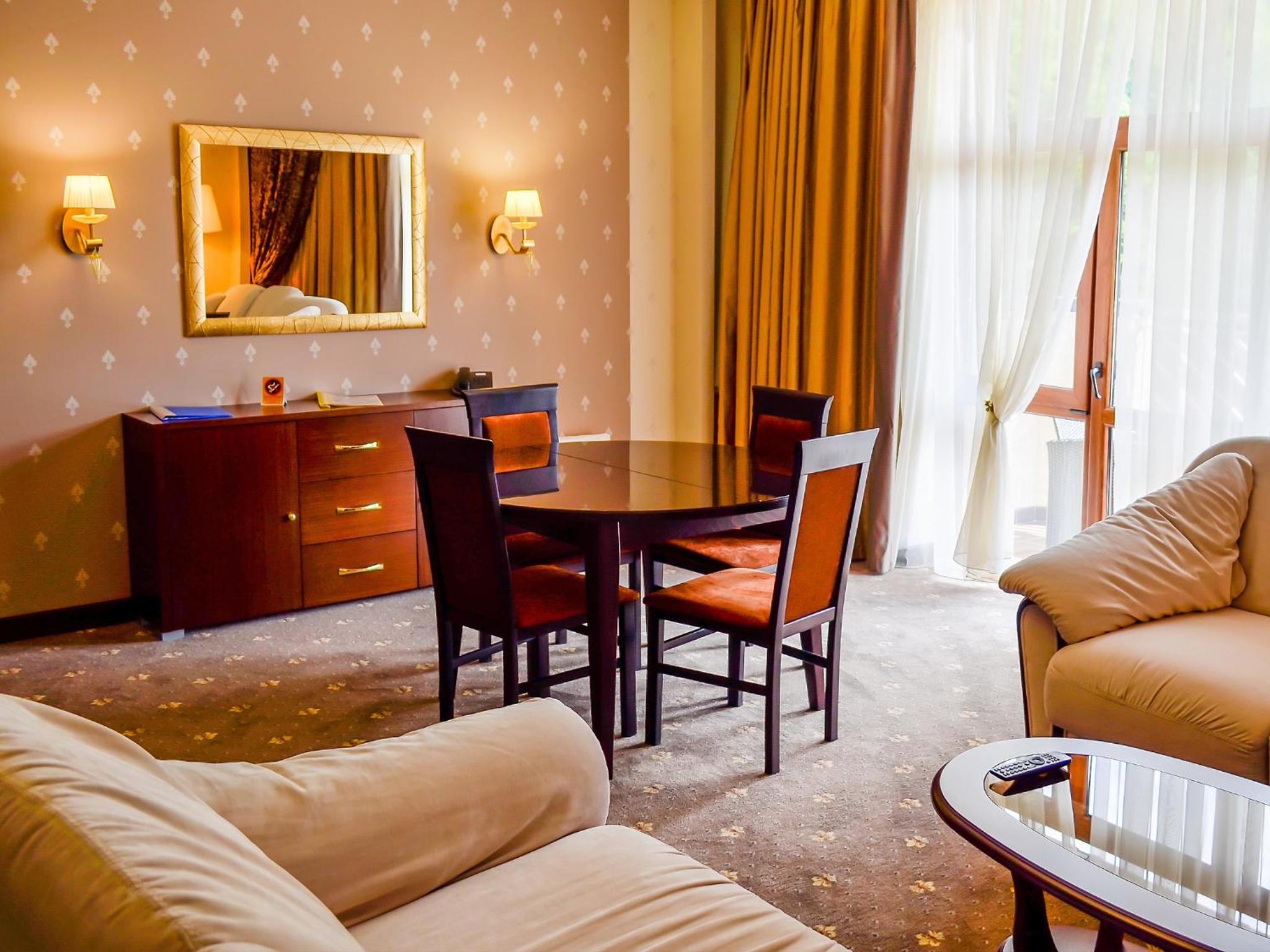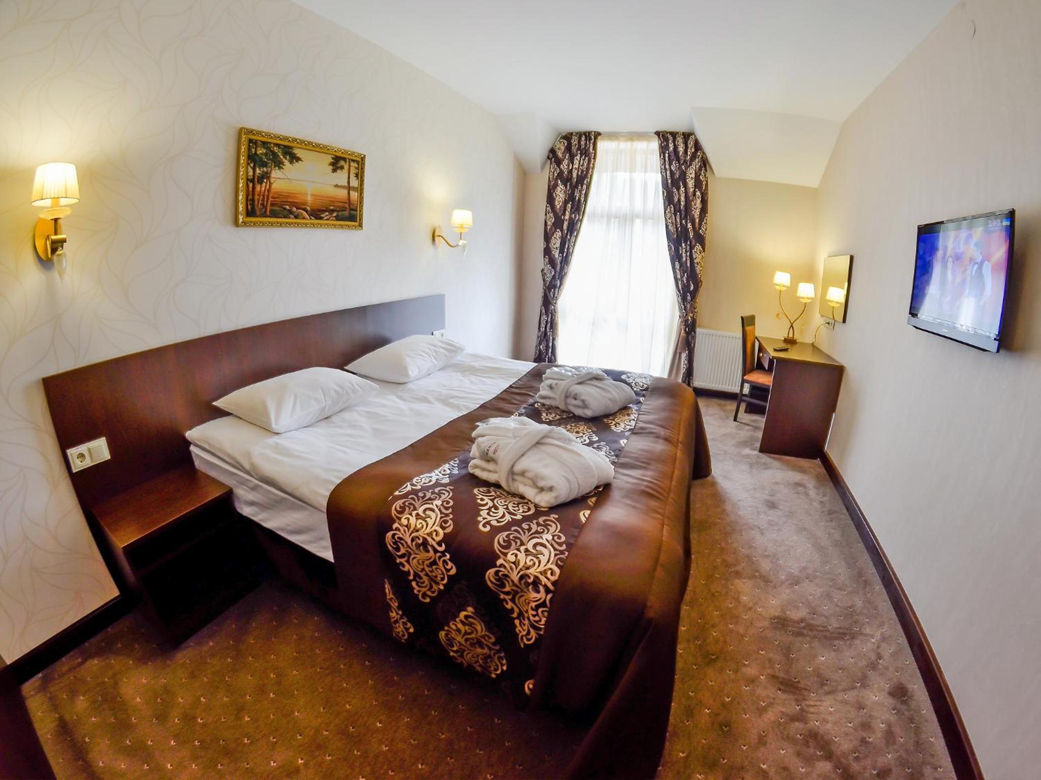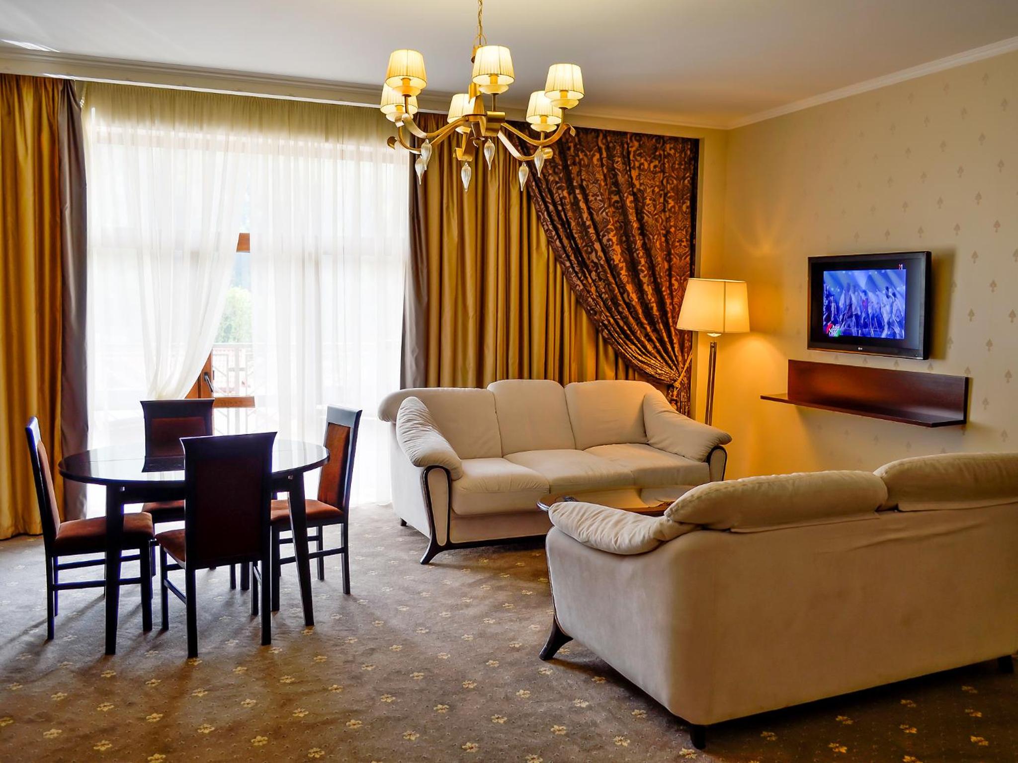 Culinary Delights and Nearby Attractions: Indulge in Ukrainian and European cuisine at Romantik Spa Restaurant or sip on drinks at the lobby bar. Explore the Yaremcha Souvenir Market, marvel at the Probiy Waterfall, or hit the slopes at Bukovel Ski Resort, all just a short distance away.