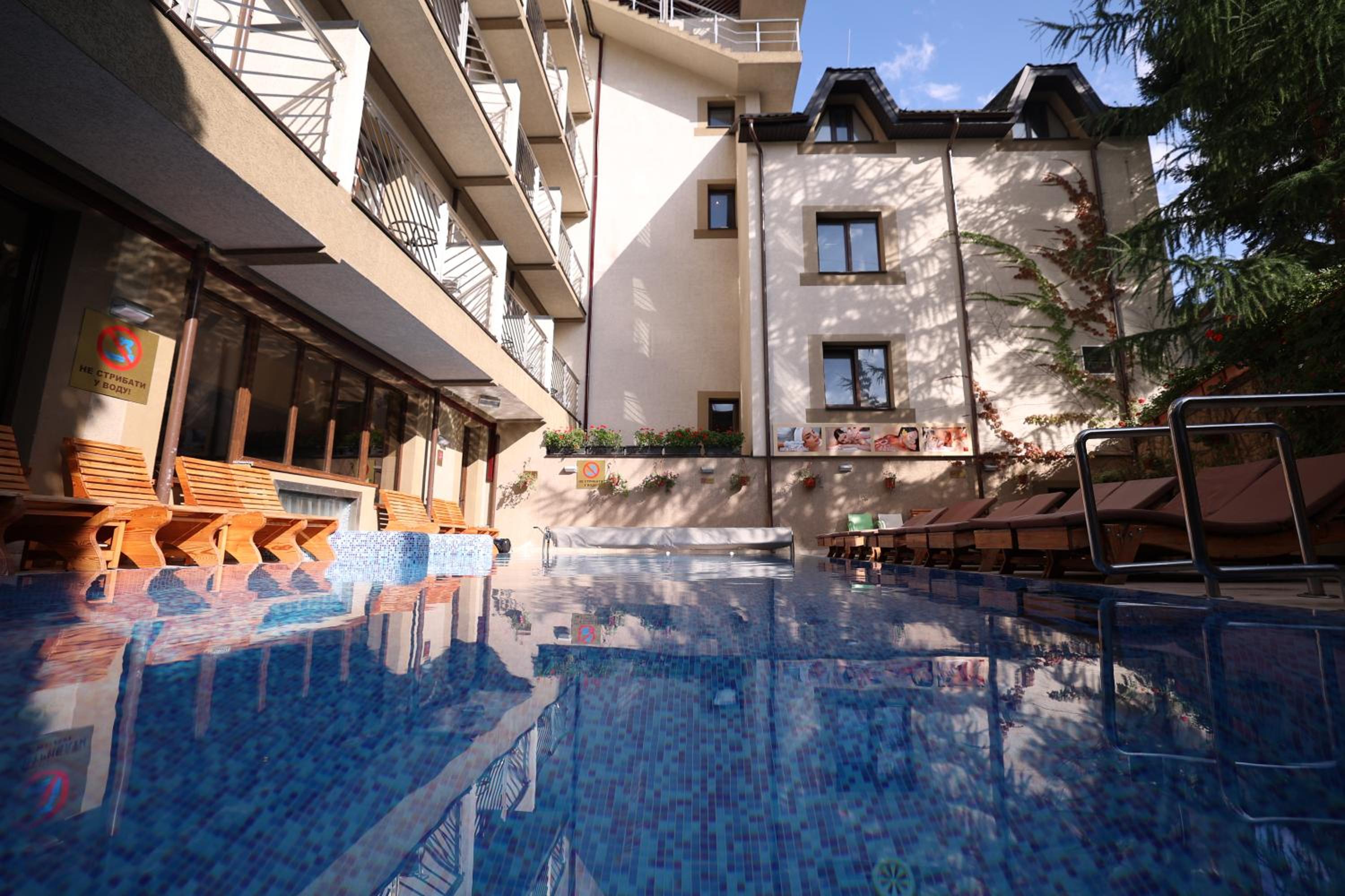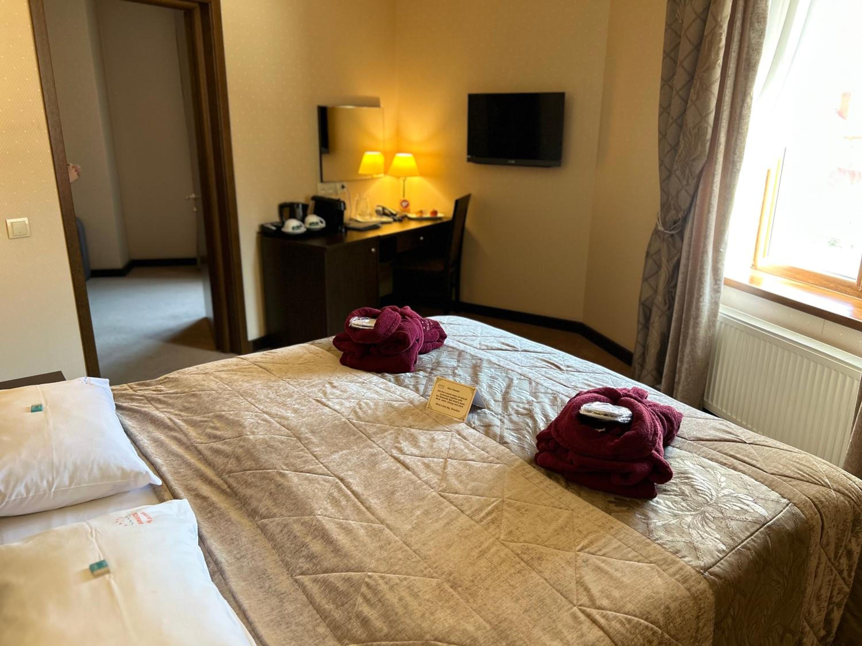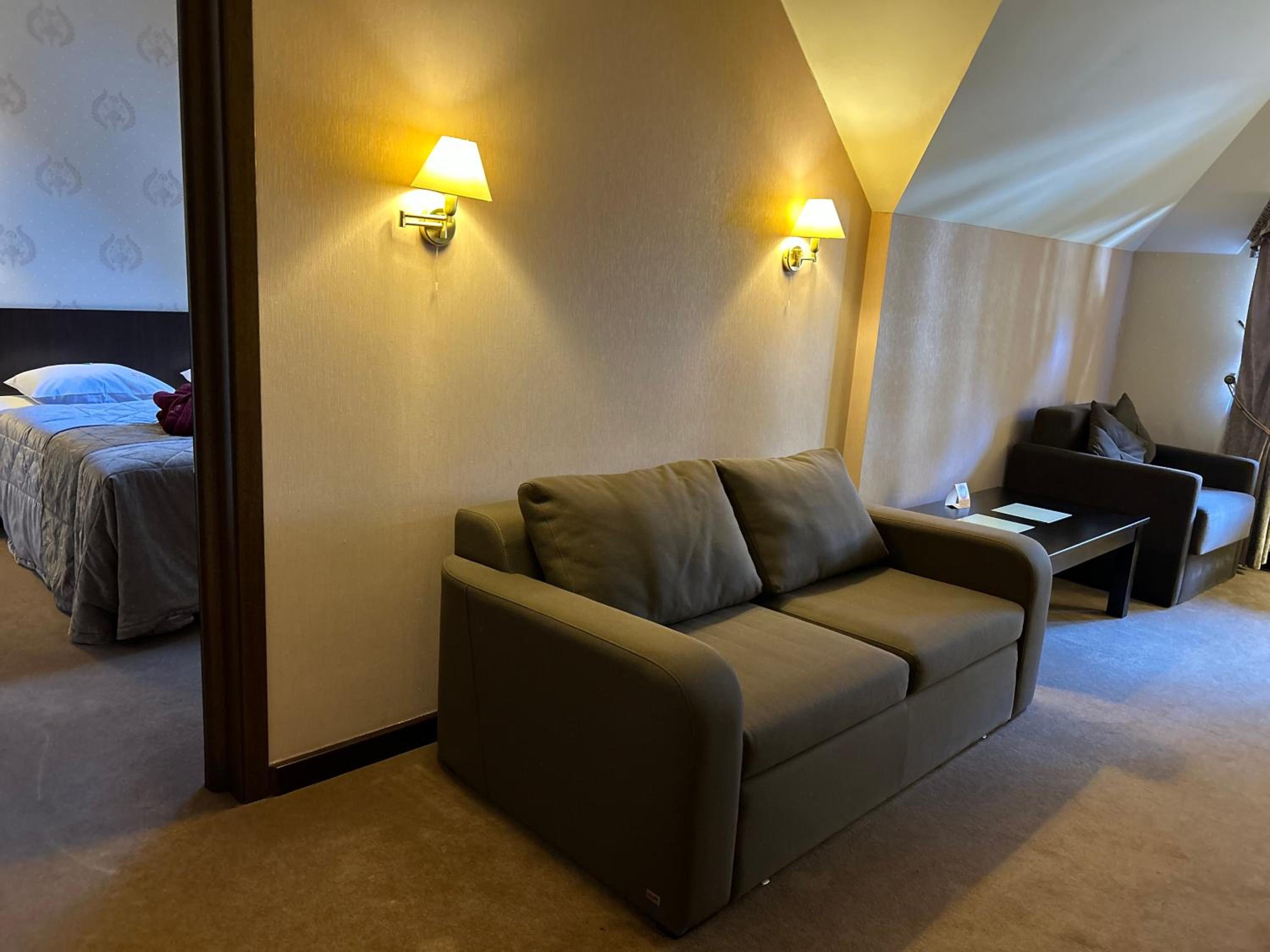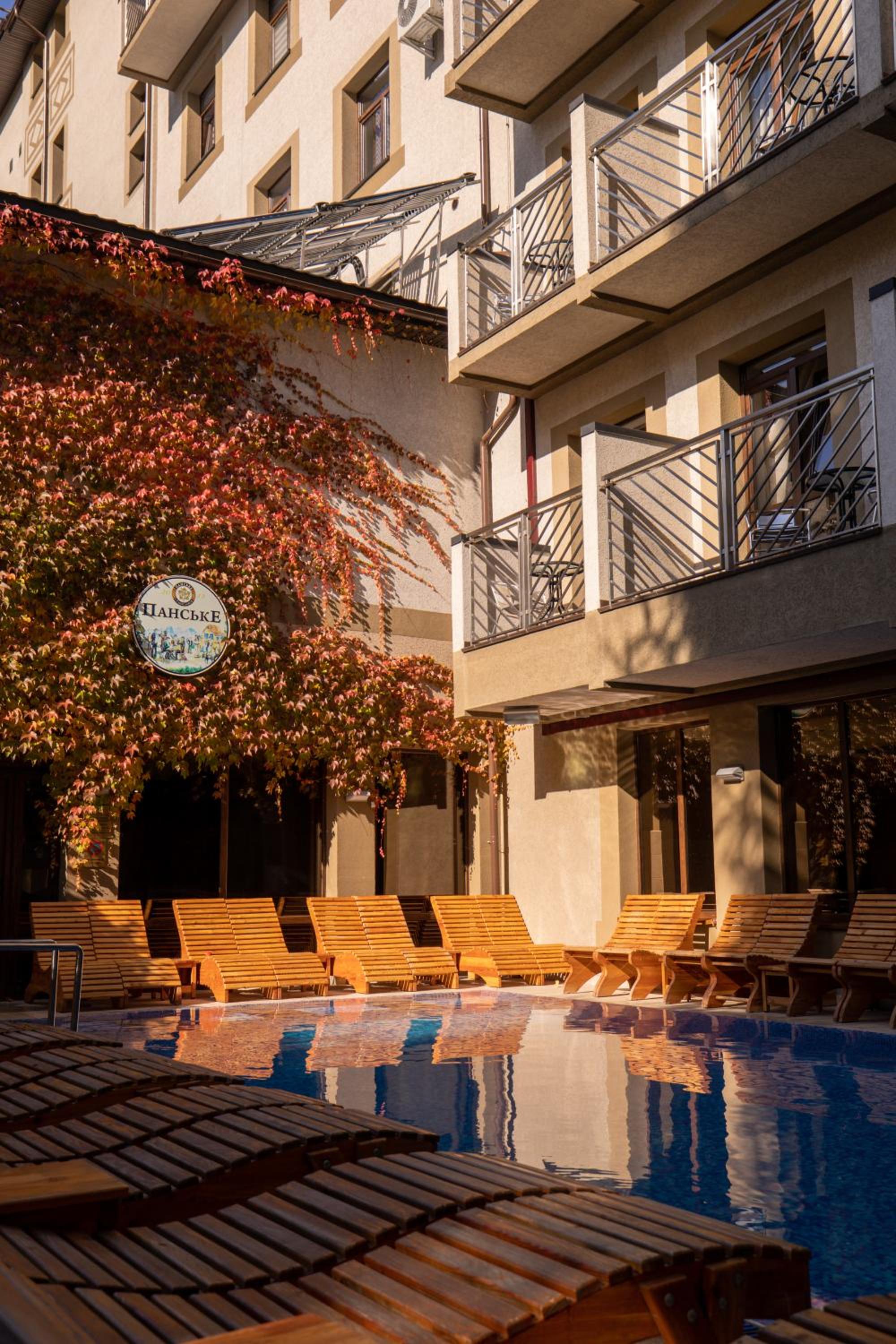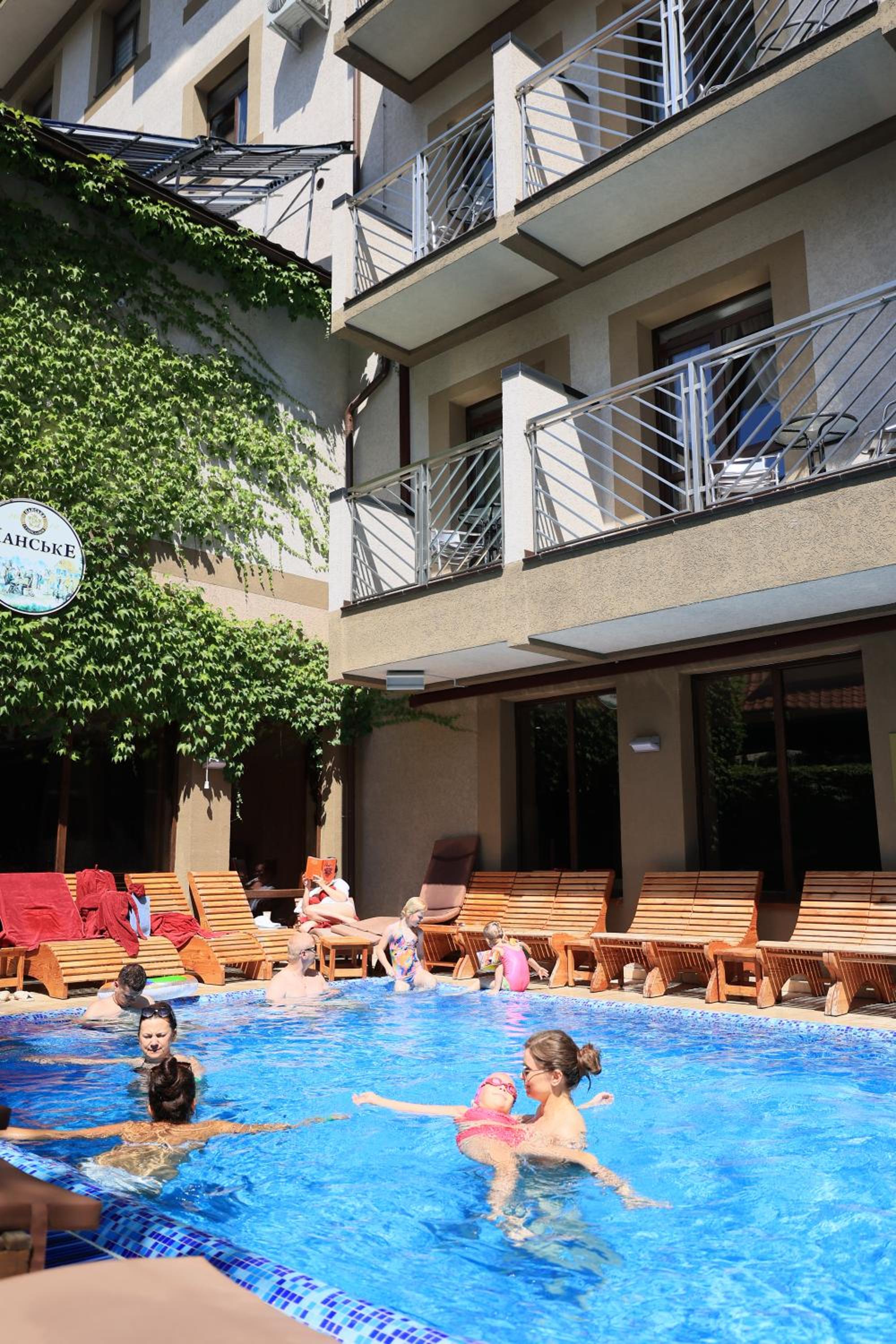 Під час гулянок в крилі біля ресторану "Губертус" досить гучно, а з самого ранку в зоні спа вмикають музику, яку чутно в номер, якщо він над басейном і має балкон. Тому раджу обирати номери в іншому крилі (номери з 9 по 16) і без балкона. Басейн, на мою думку, трохи мілкуватий для дорослих, і там, звісно, дуже багато людей, але це все некритичні нюанси.