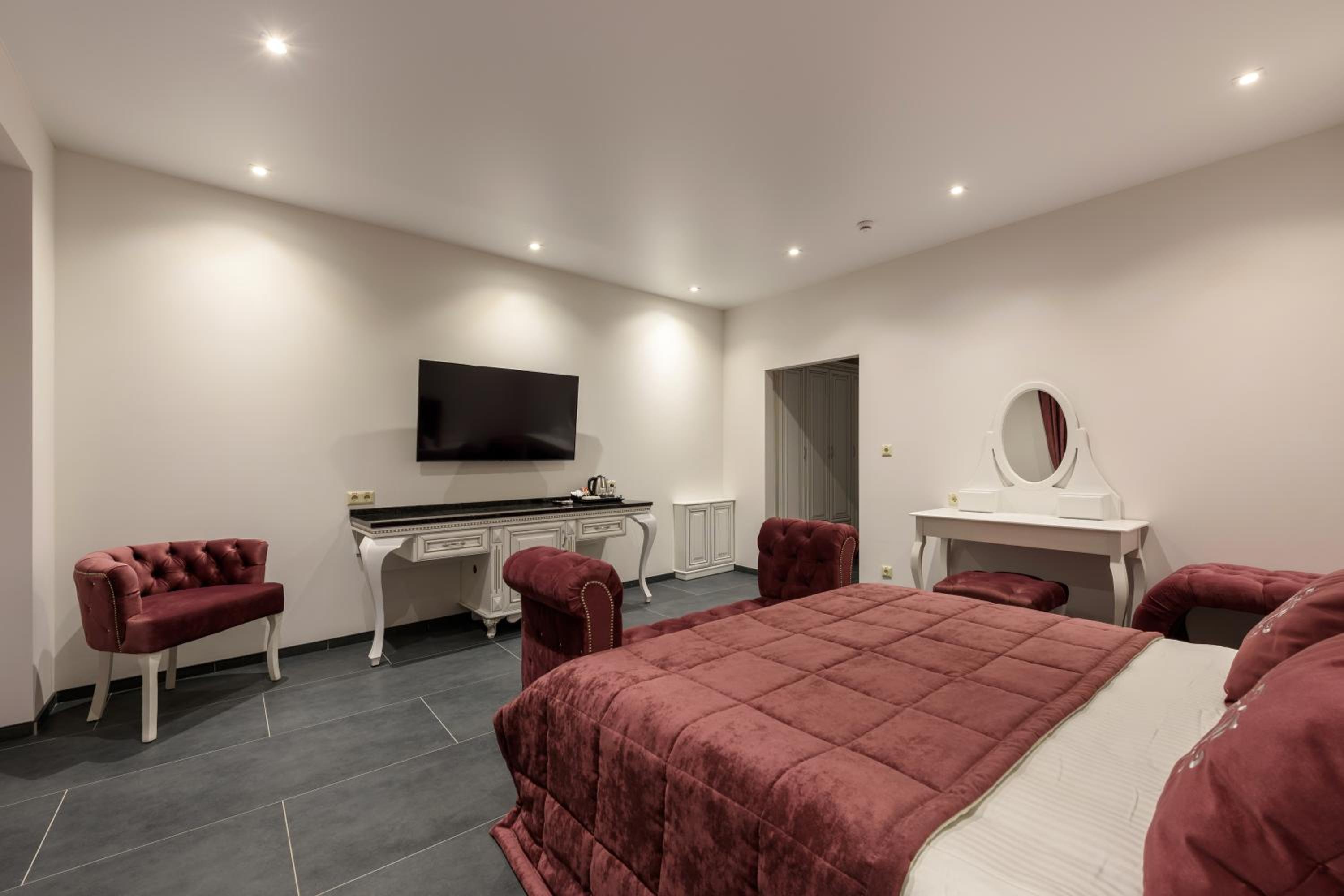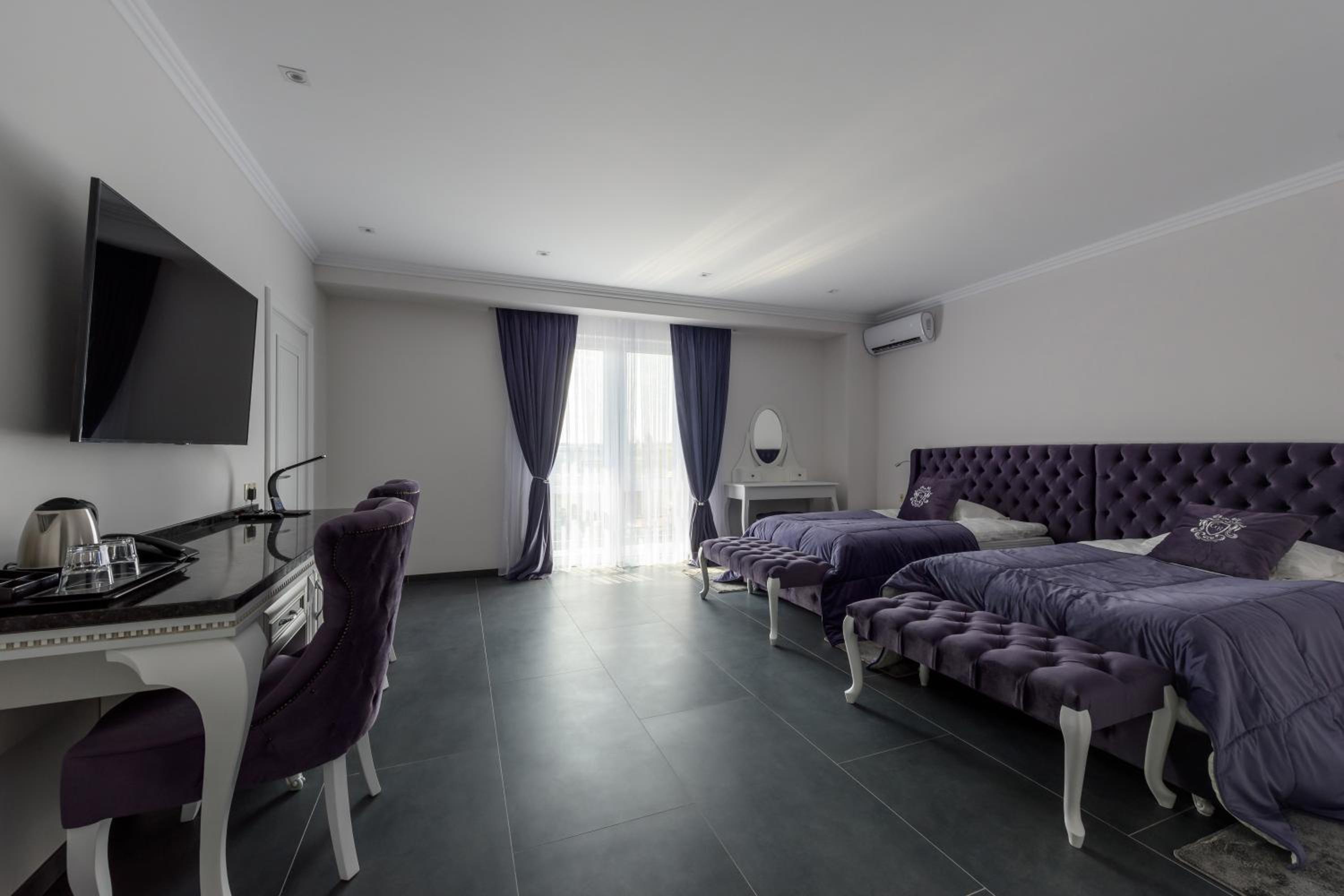 Grand Royal in Chernivtsi offers a lavish stay with air-conditioned rooms, free WiFi, and elegant decor. Each room is equipped with modern amenities including a fridge, minibar, and flat-screen TV.