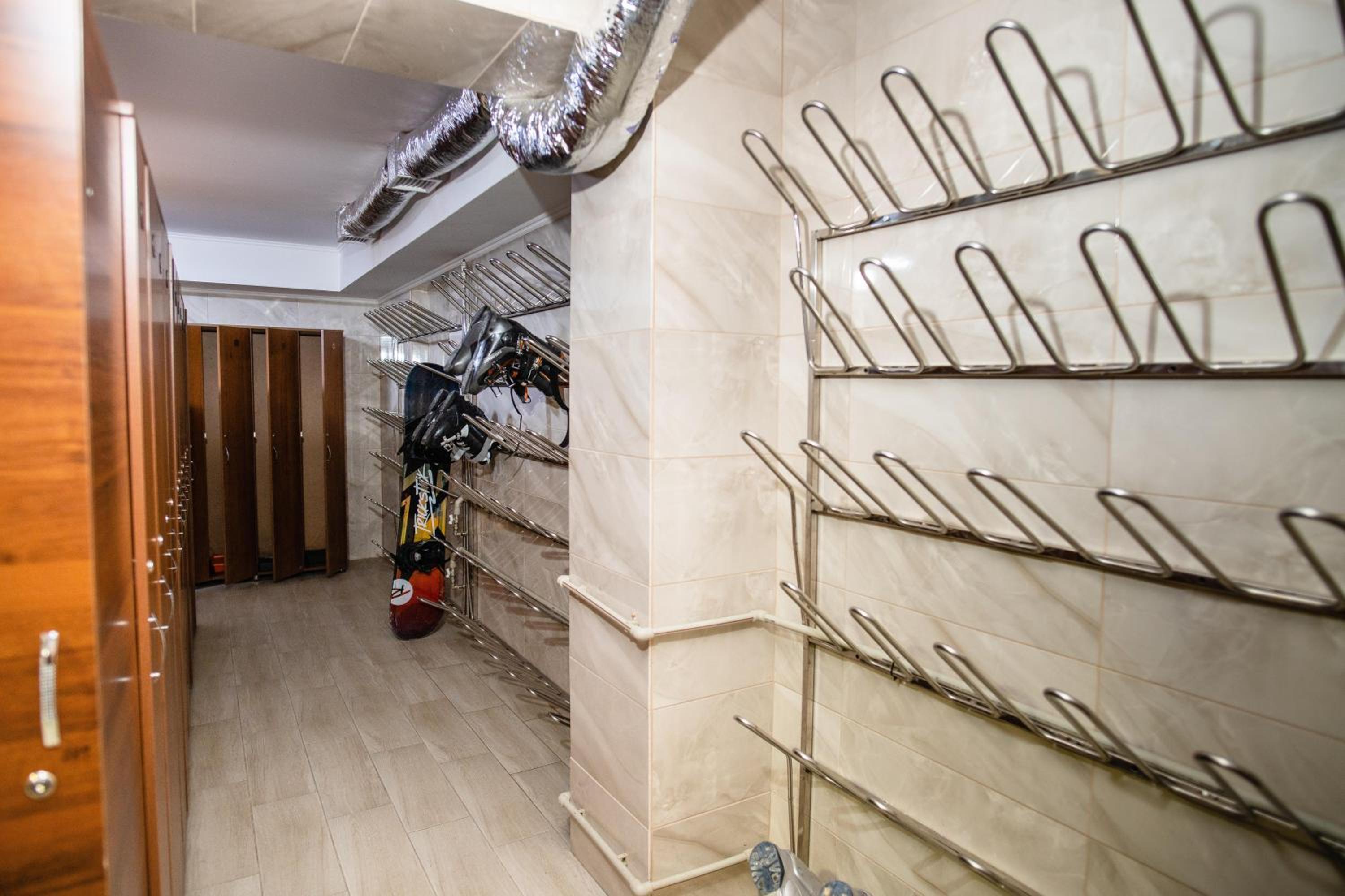 Є спец. лижна кімната з ящичками для лиж.