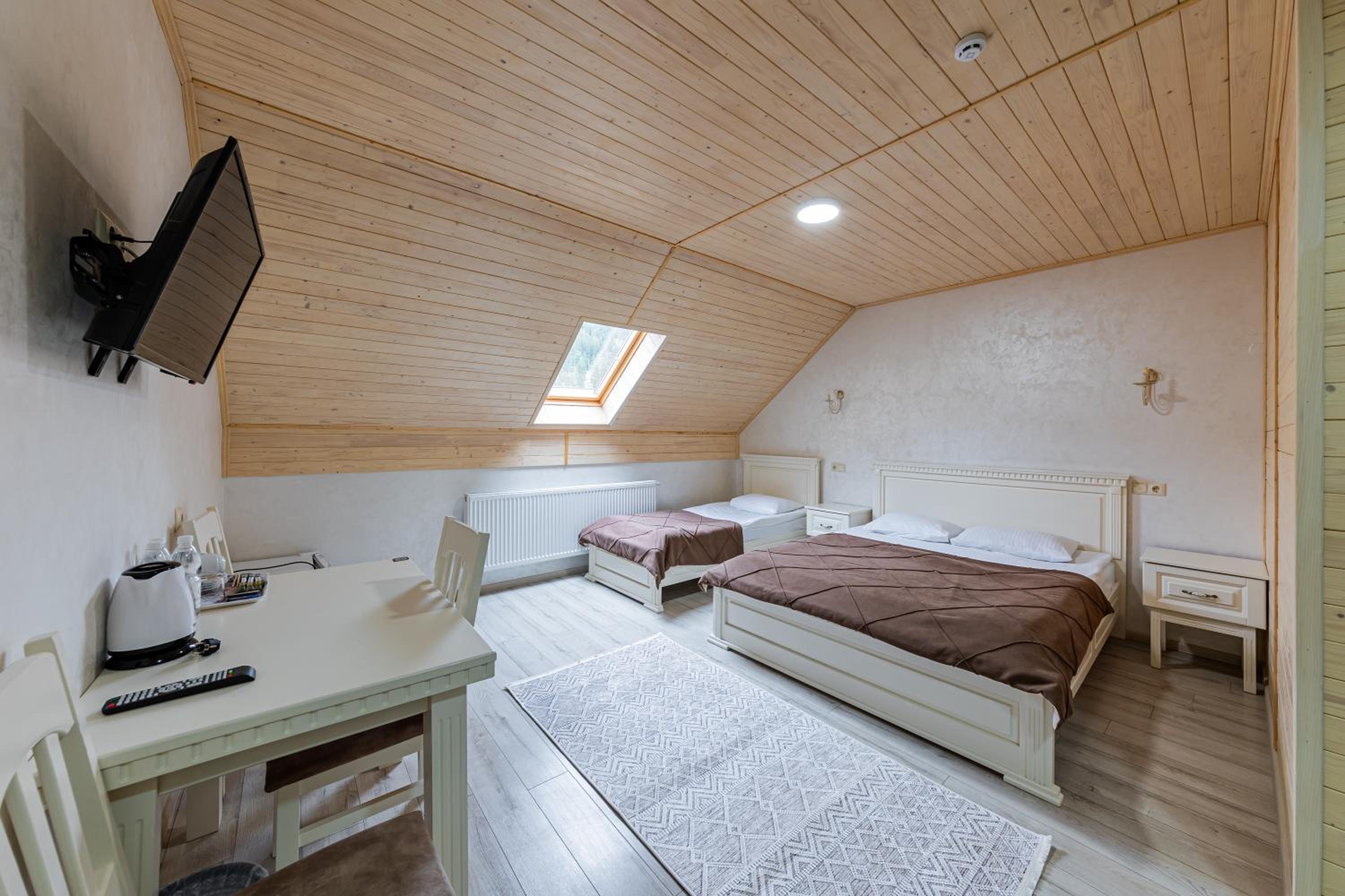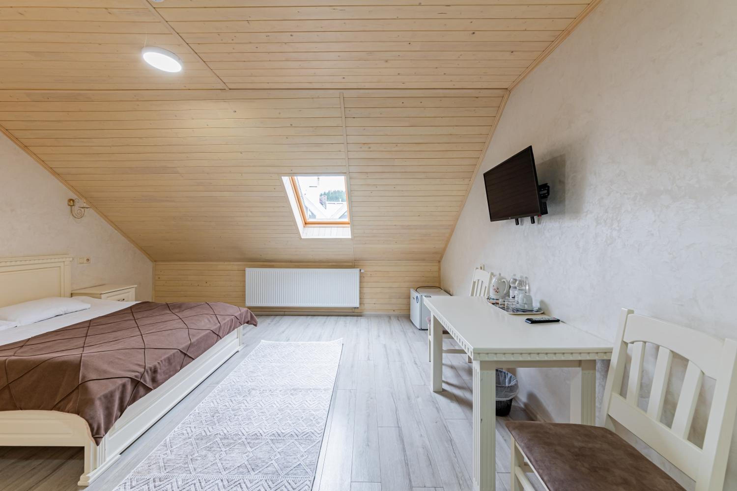 For adventure enthusiasts, the hotel offers ski and bike equipment hire, perfect for exploring the nearby Hoverla Mountain. After a day of outdoor activities, guests can enjoy a delicious meal at the on-site restaurant.