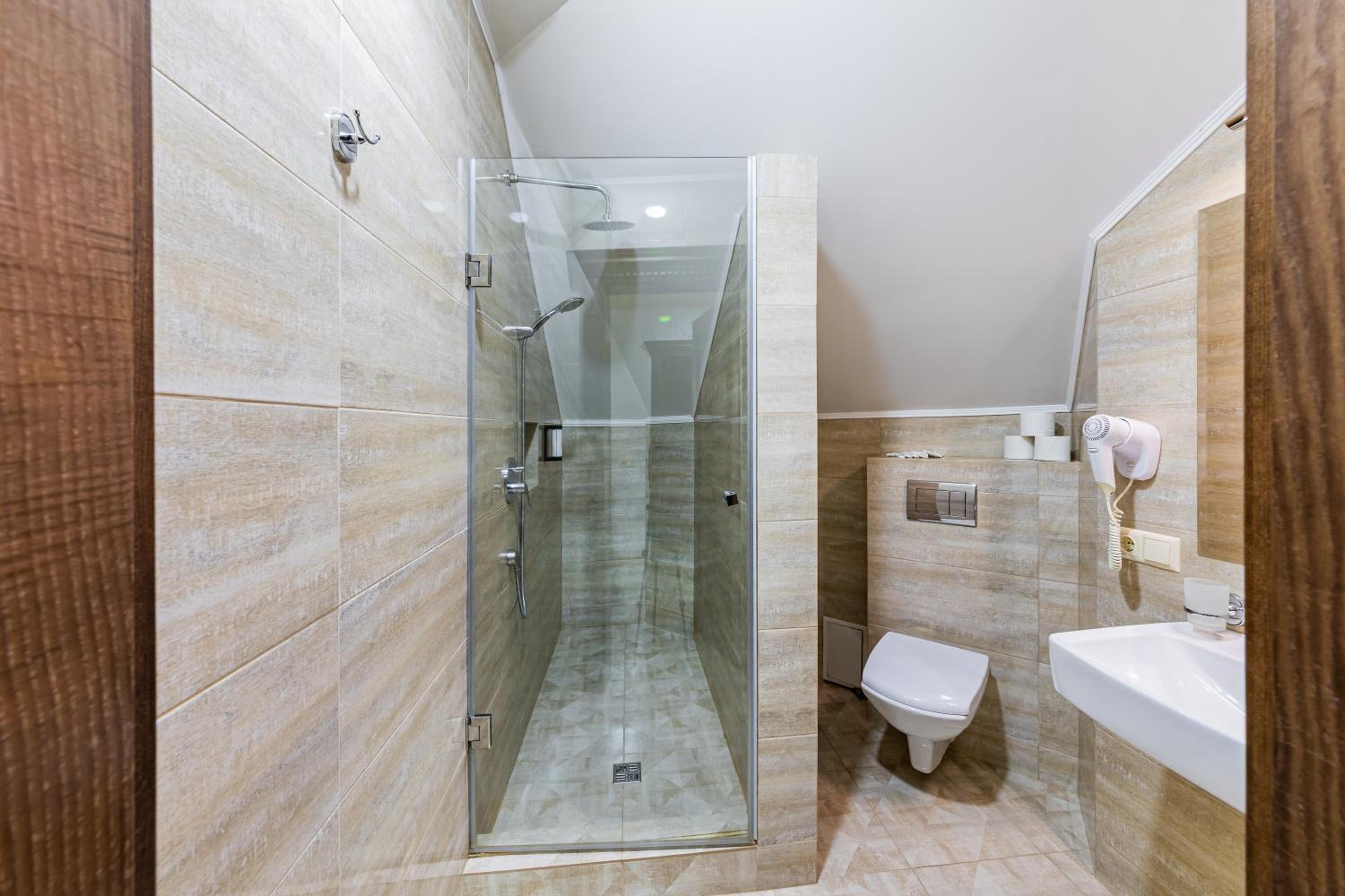 Приємний персонал, смачні сніданки, зручне розташування. Кімнати великі, сонячні, є все необхідне для комфорту. Парковка на багато місць. В СПА чисто, зручно.