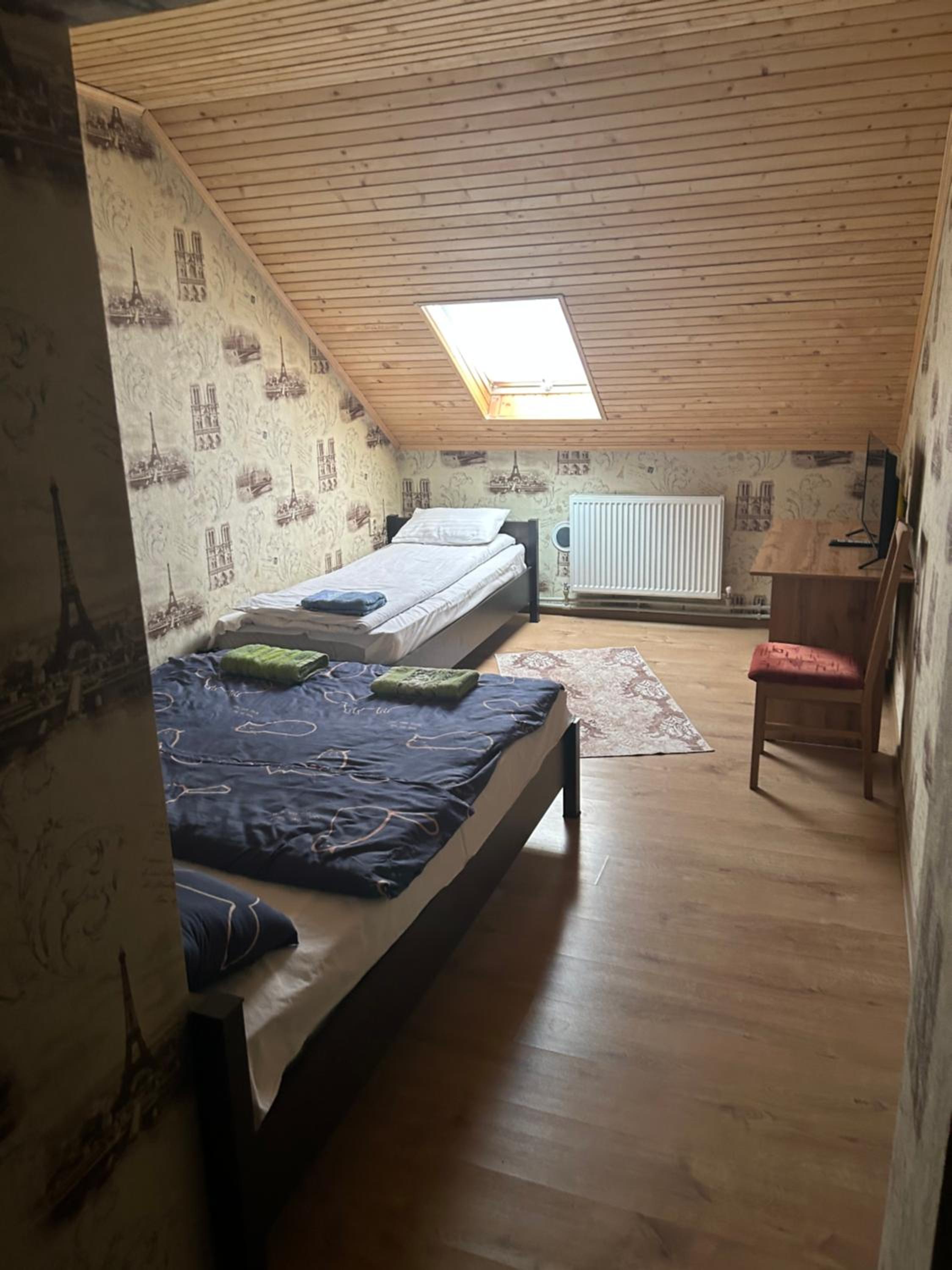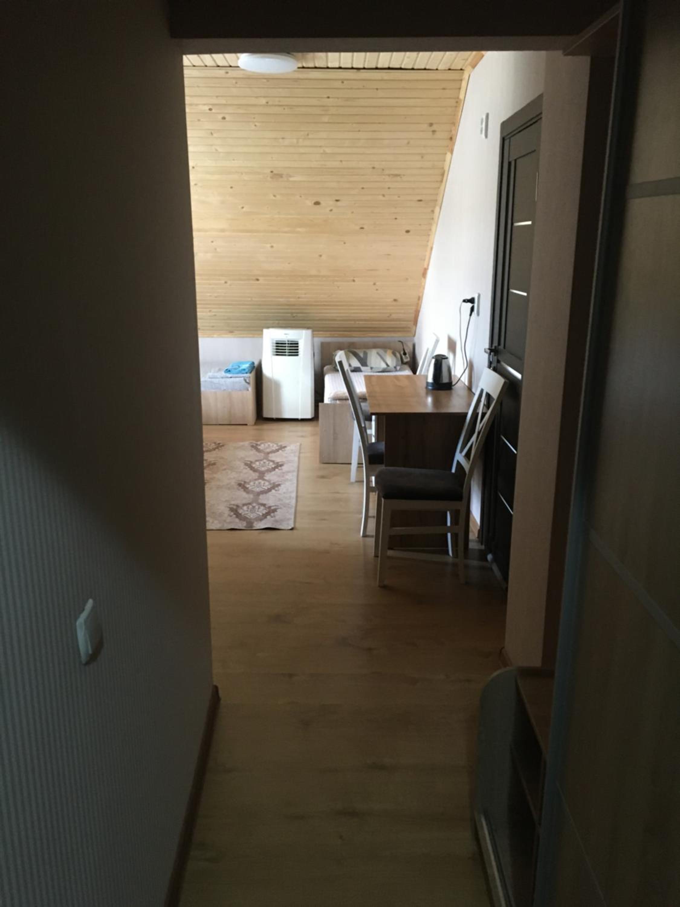 Пан по телефону дуже приємний і милий, респектую;) телевізор з ютуб, нормальний інтернет, можливість пізнього заселення, терраса на поверсі, можливість замовити с5іданок від 130 до 150 грн