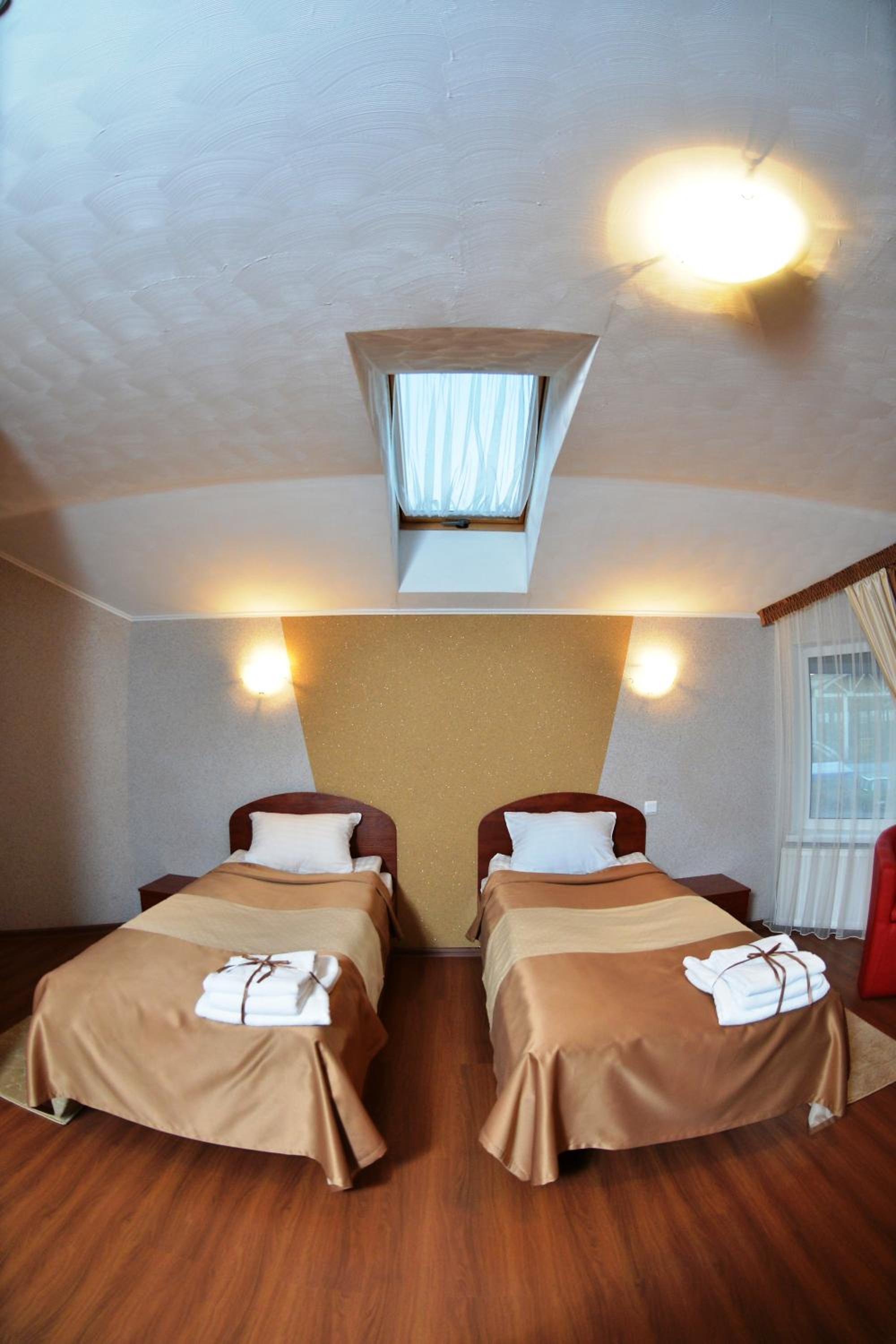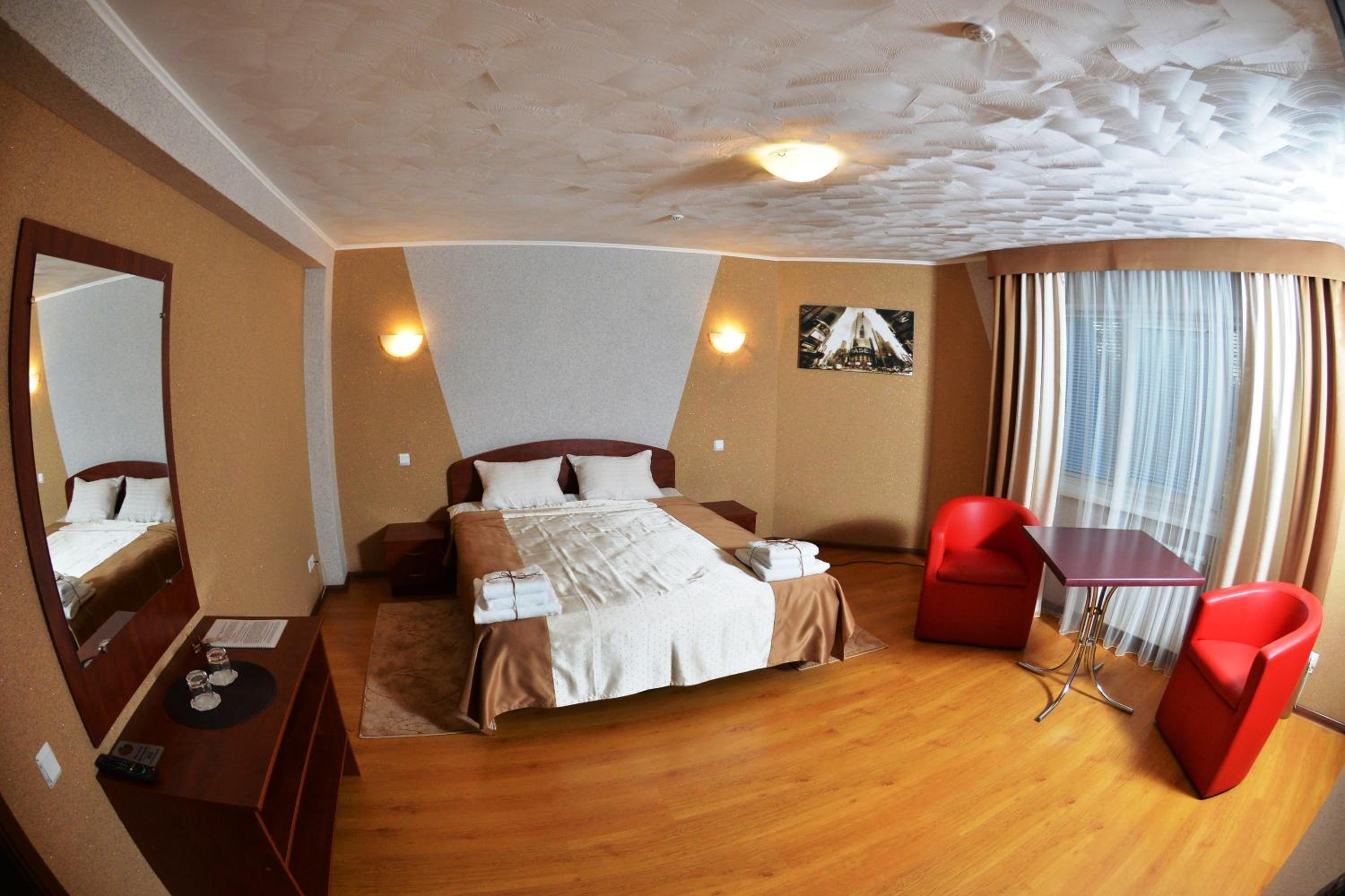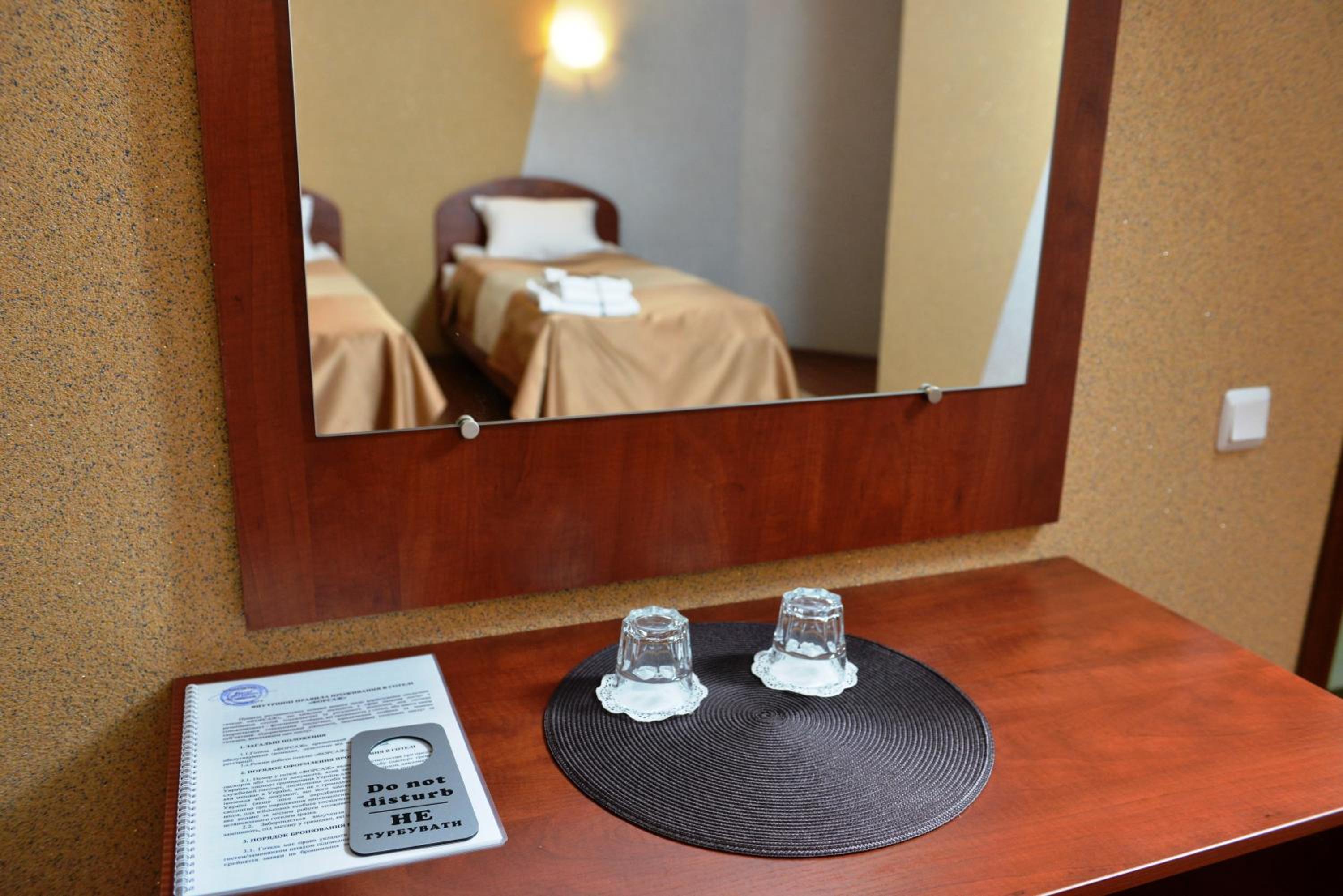 Convenient Location and Services: With a 15-minute walk to Rivne Train Station and free private parking, Forsage offers easy access to transportation. Our 24-hour front desk is ready to assist you, including ironing services. Plus, the hotel is just a short walk to the nearest bus stop for added convenience.
