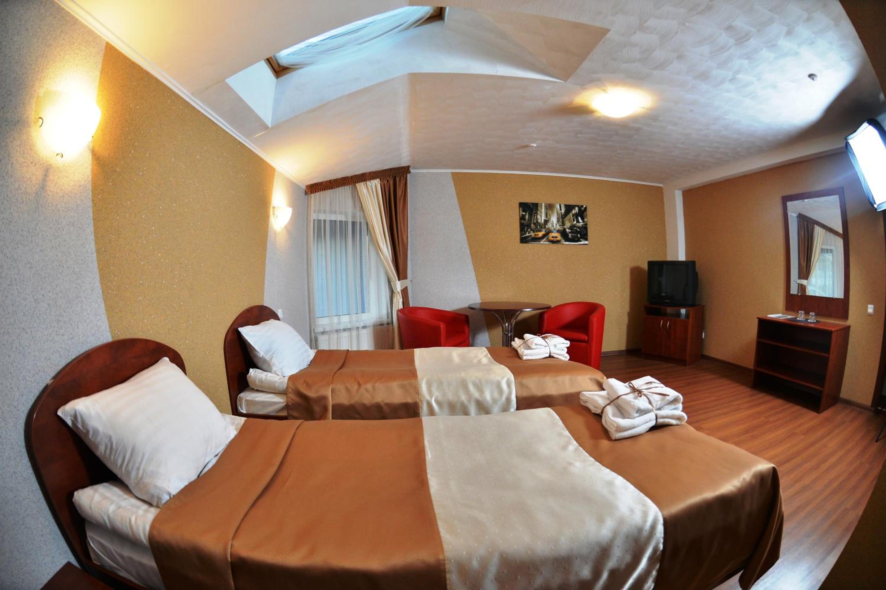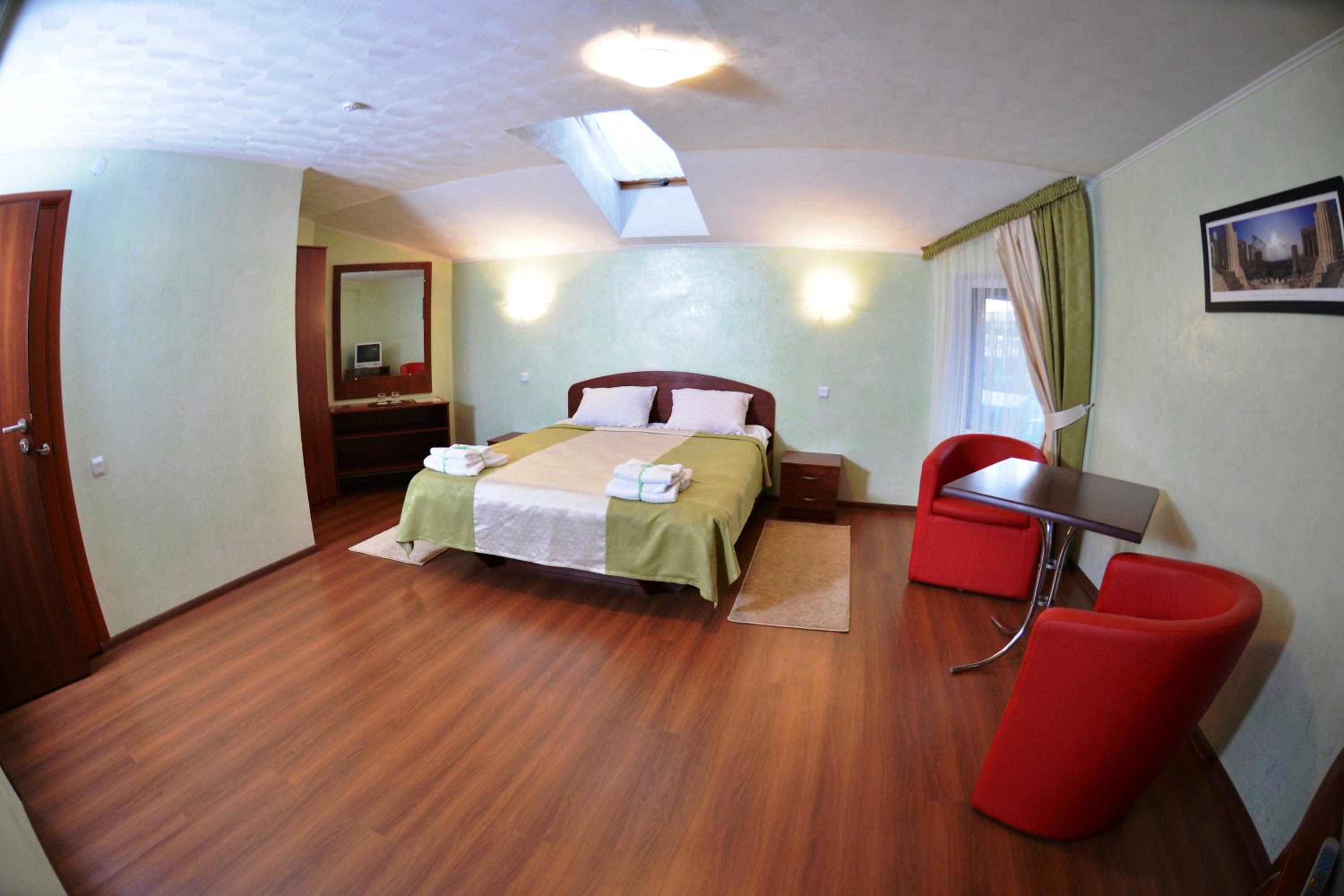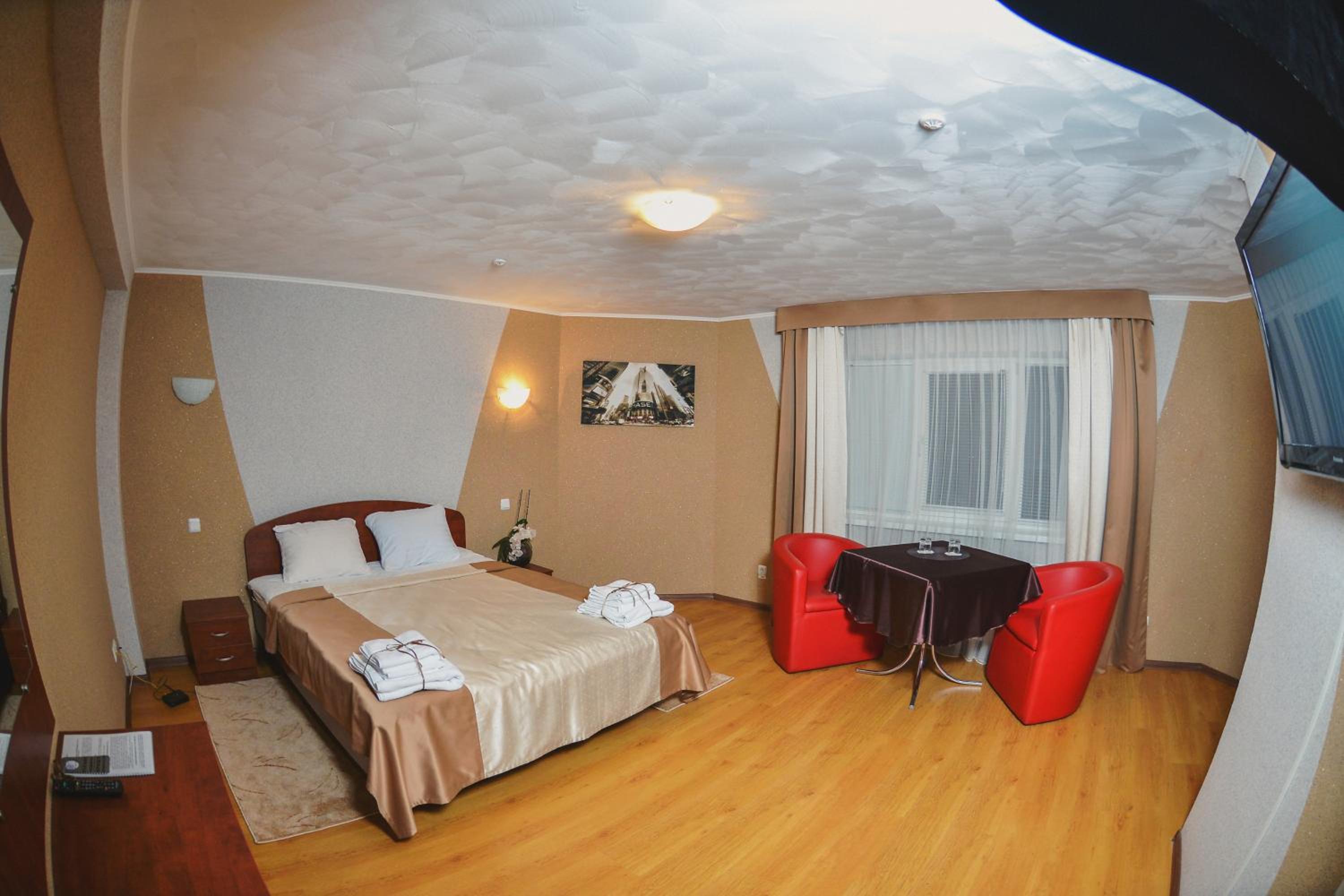 Convenient Location and Services: With a 15-minute walk to Rivne Train Station and free private parking, Forsage offers easy access to transportation. Our 24-hour front desk is ready to assist you, including ironing services. Plus, the hotel is just a short walk to the nearest bus stop for added convenience.