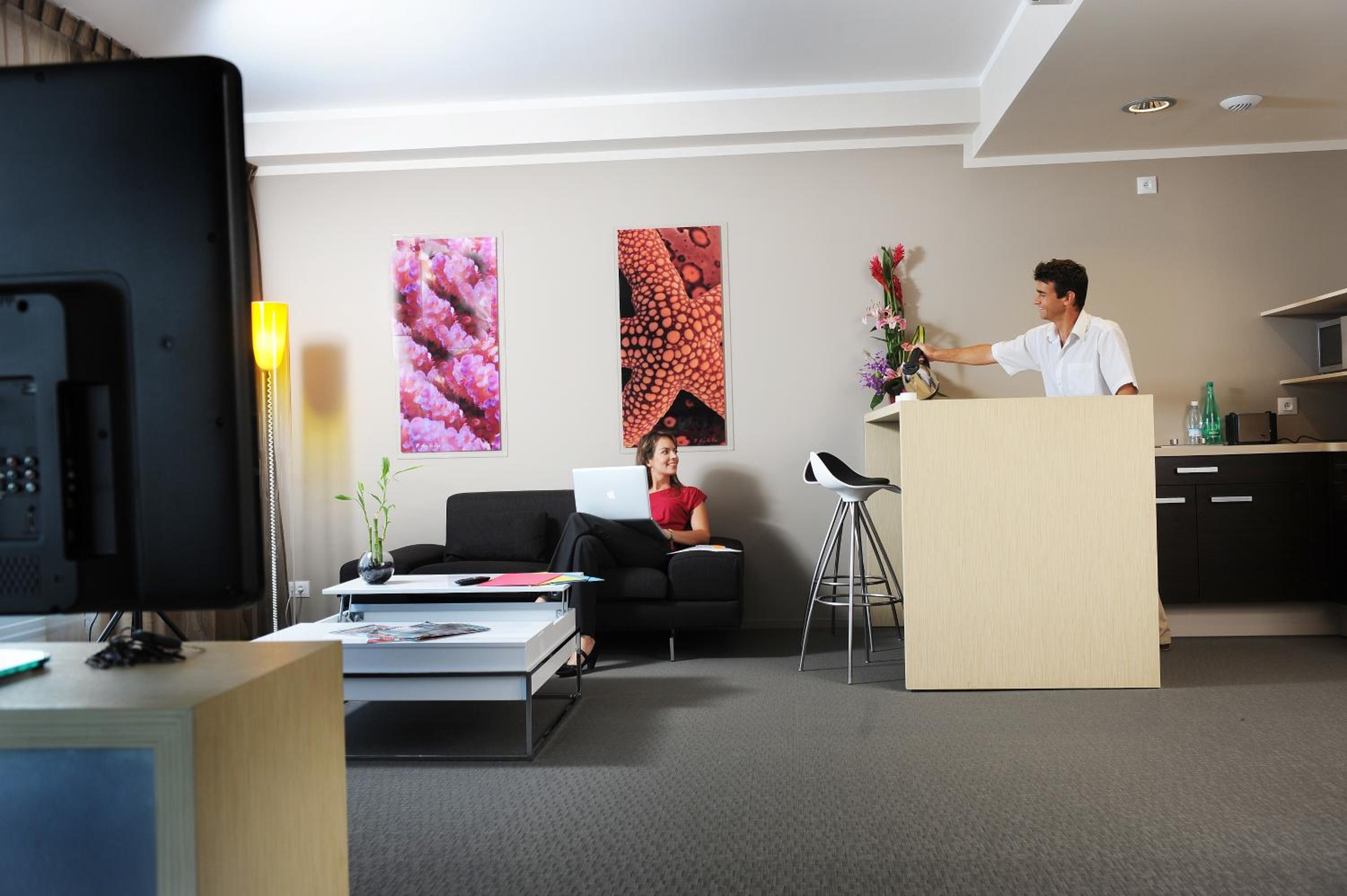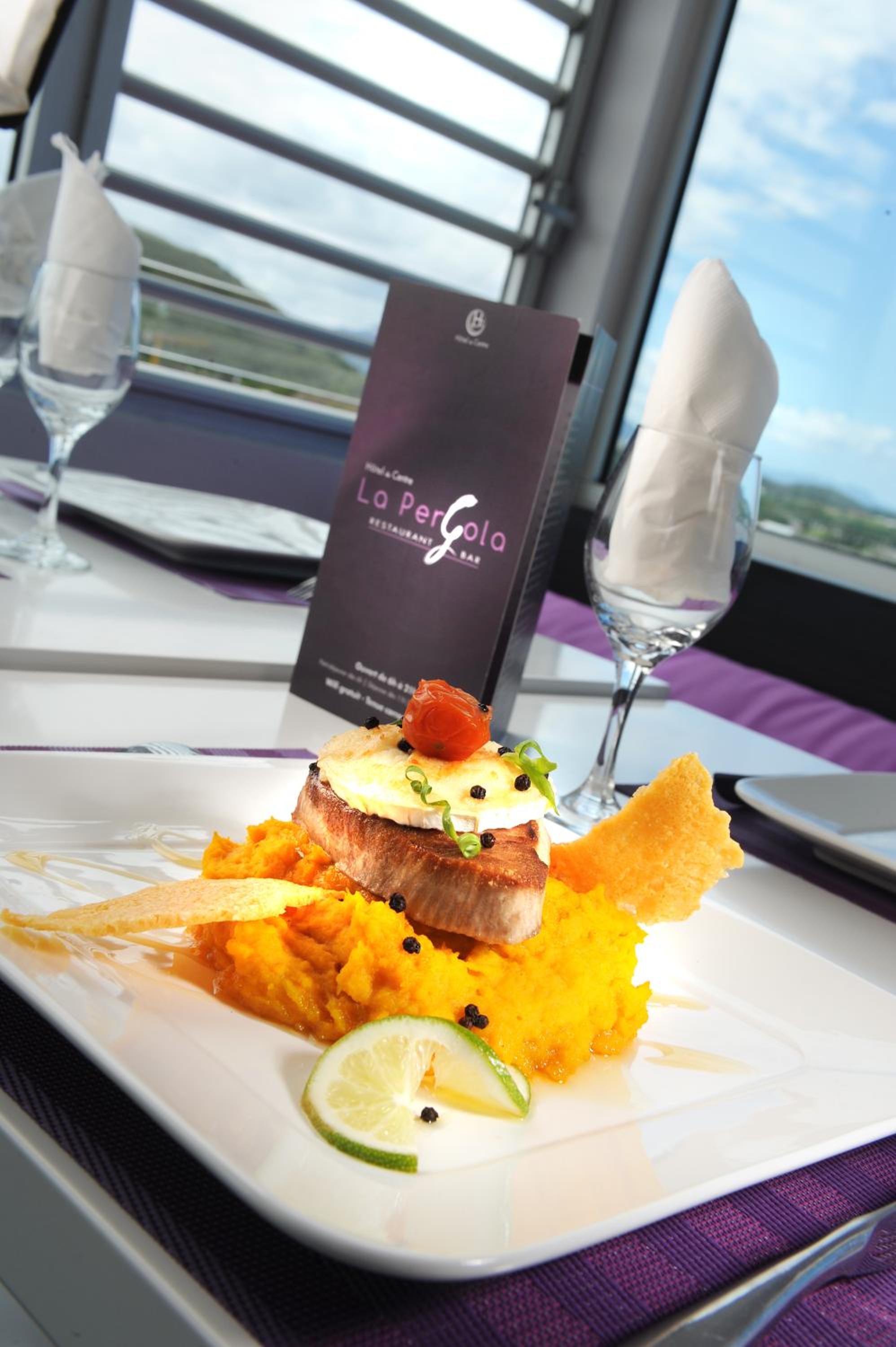 Relax in modern accommodations with stunning mountain views, equipped with a kitchenette, dining area, and air-conditioning. Indulge in delicious local and French cuisine at the restaurant's terrace or indoor dining area, ensuring a satisfying dining experience throughout your stay.