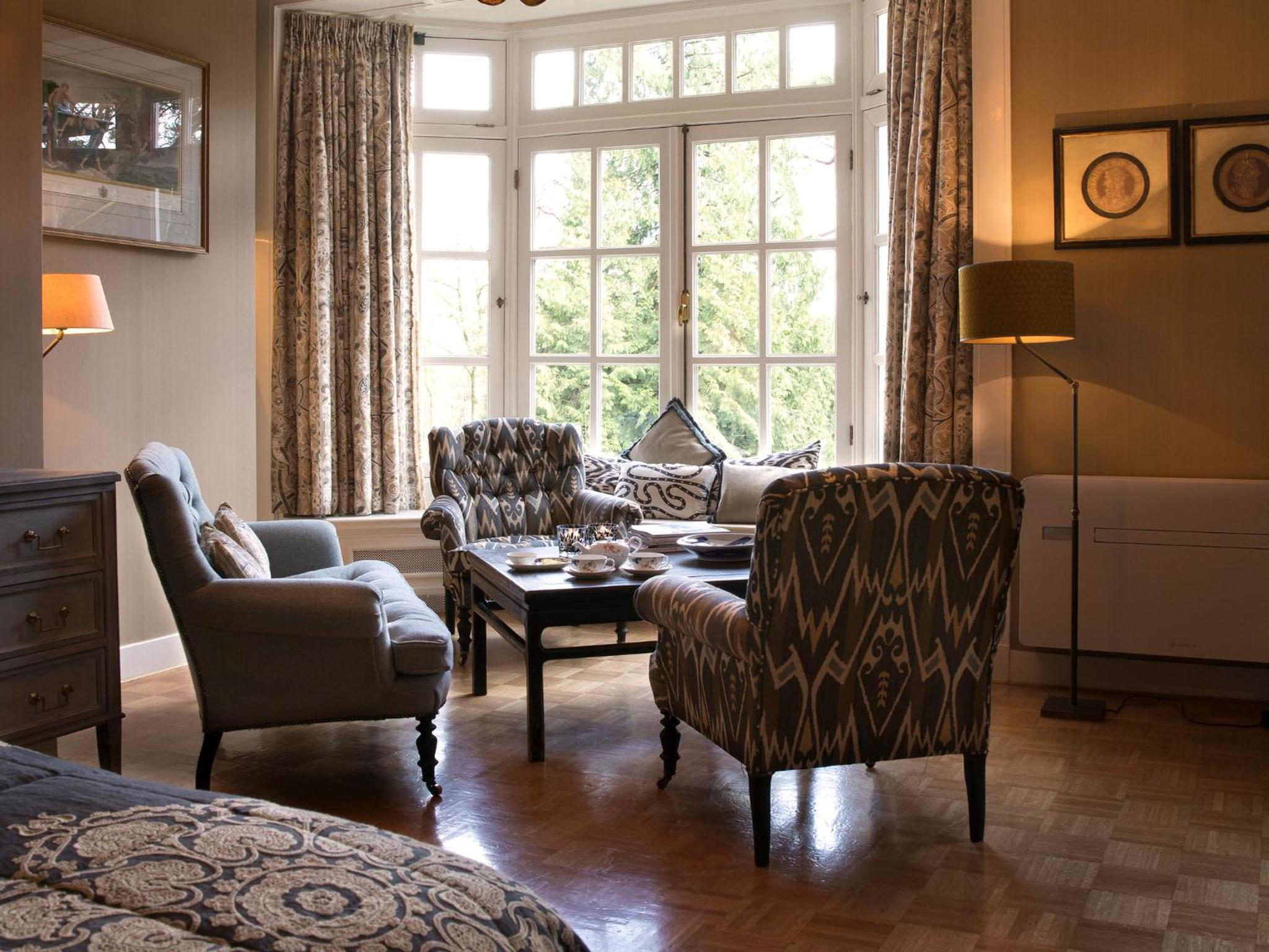 Unwind by taking a swim in the heated outdoor pool, playing tennis, or exploring the gardens and woods. Relax in cosy lounges by the fireplace. Enjoy peace, space, and a warm reception at our estate.