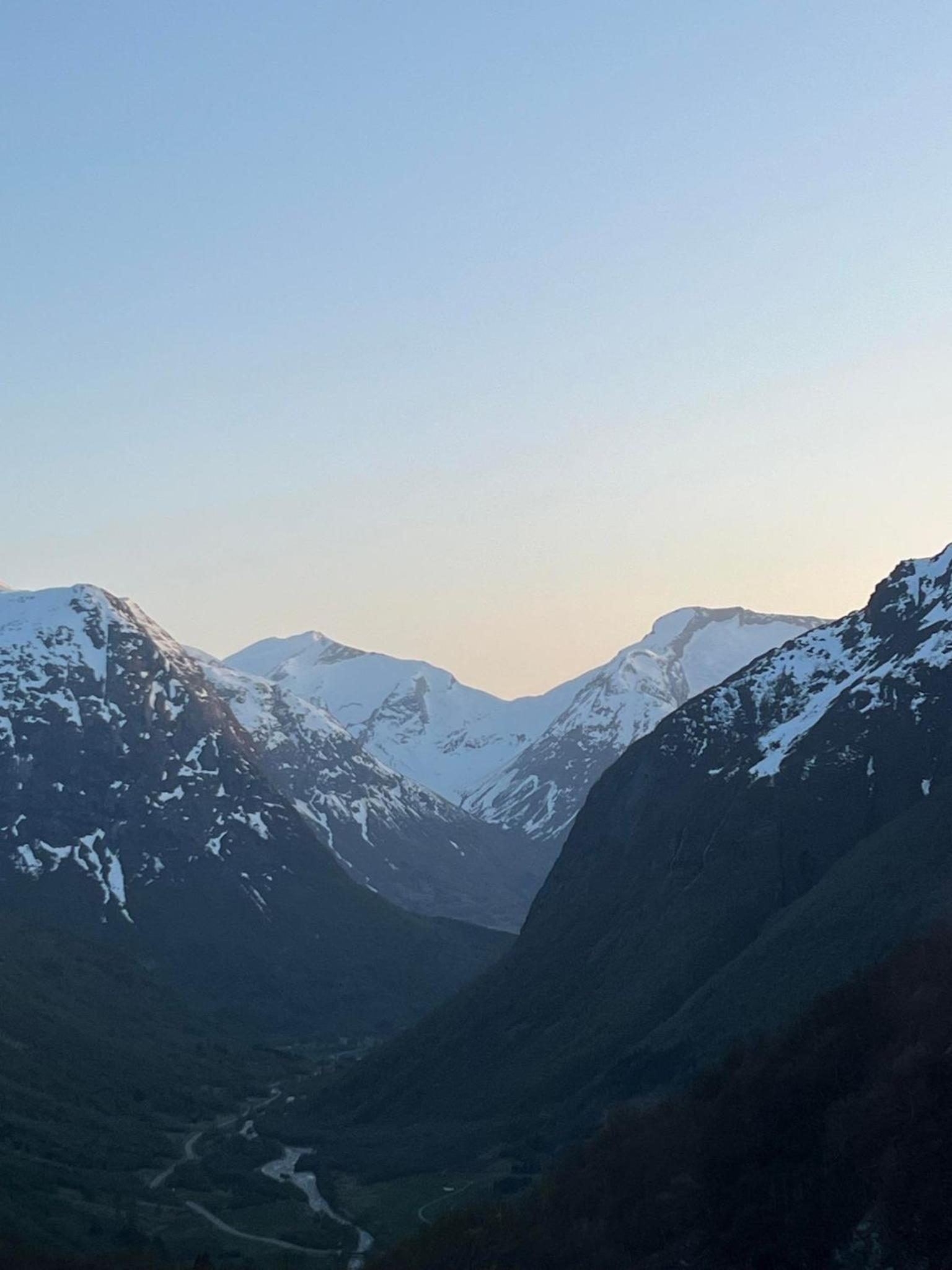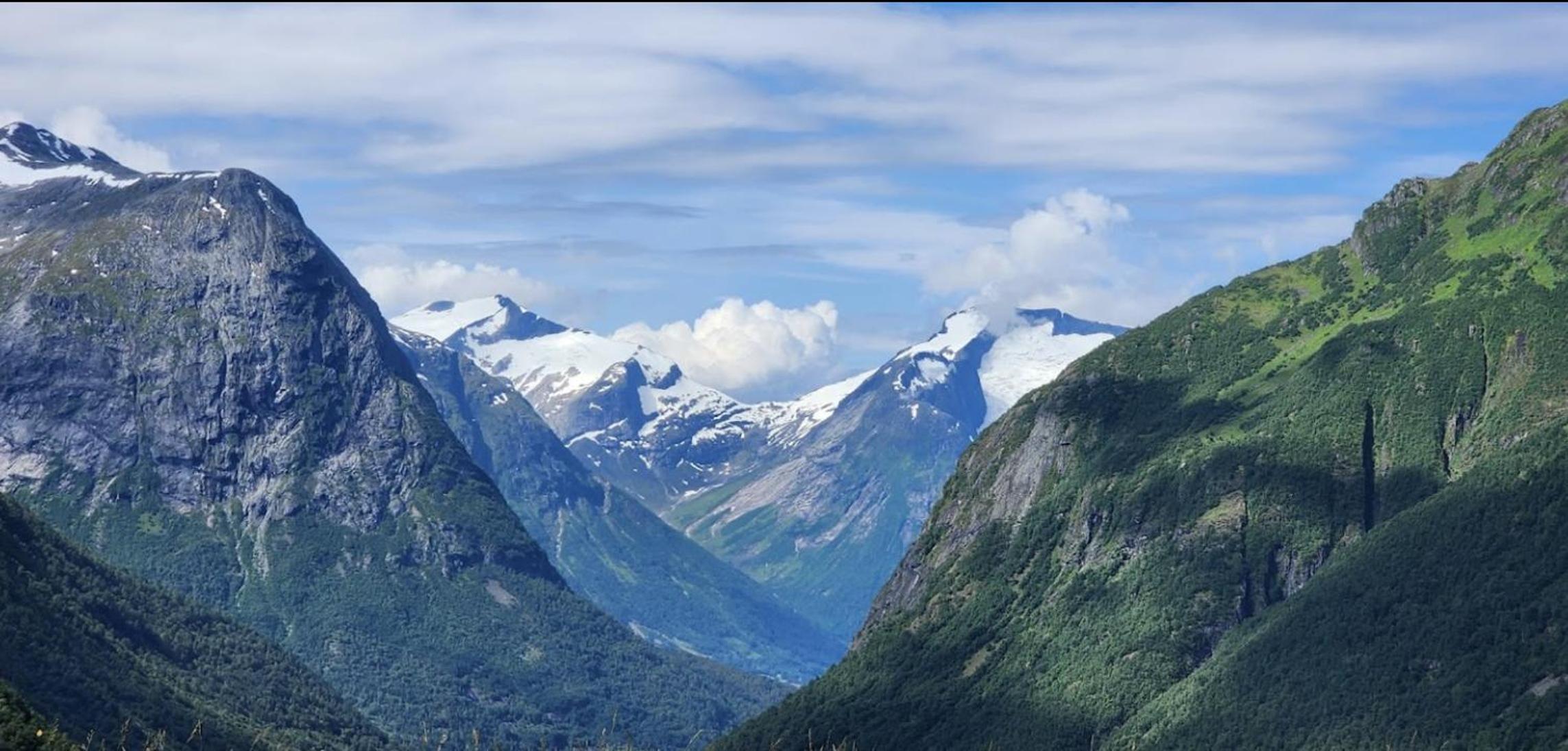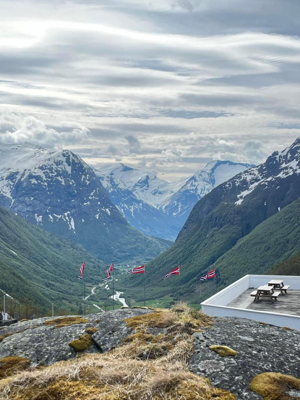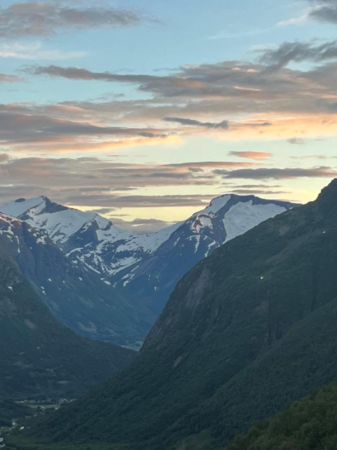 Prachtig uitzicht op het dal vanuit de kamer met comfortabele stoelen. Naast de Videfossen waterval. De andere waterval Ovstefoss vlakbij was nog mooier. Ligt aan het begin van turistveger Gamle Strynefjellvegen, prachtige route naar Grotli, deels gravel.
