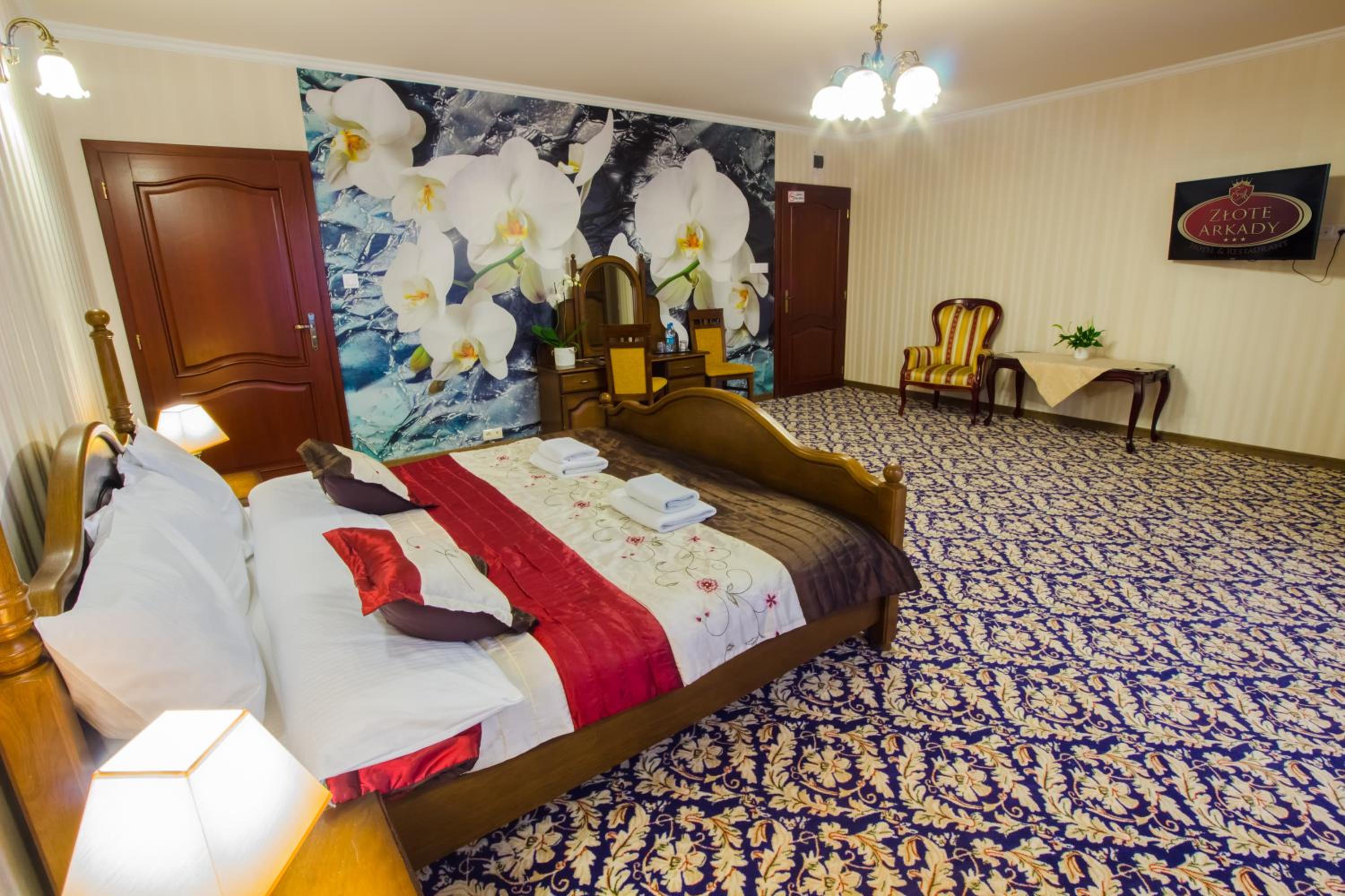 Experience comfort and elegance at Złote Arkady, with spacious rooms and apartments tastefully decorated in warm tones. Enjoy modern amenities like a 32’’ LCD TV and a private bathroom, plus the option of a balcony or garden view.