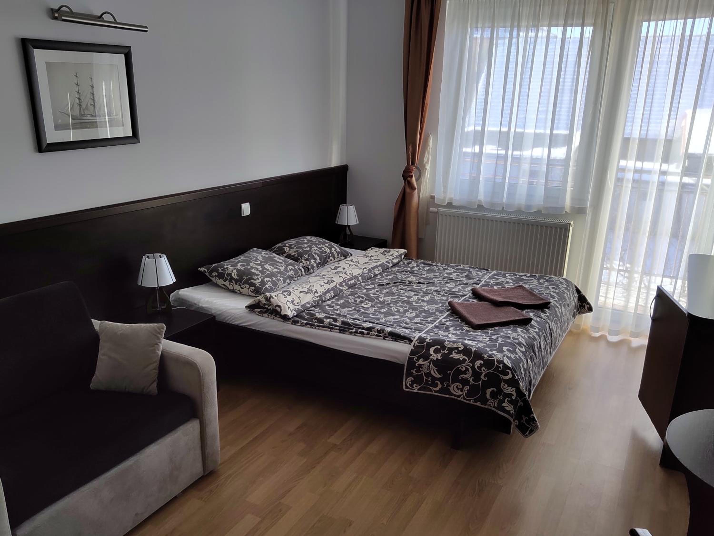Willa Latarnik offers modern, spacious rooms with complimentary Wi-Fi, perfect for relaxation after a day of exciting activities like diving, motorboat trips, and sea fishing.