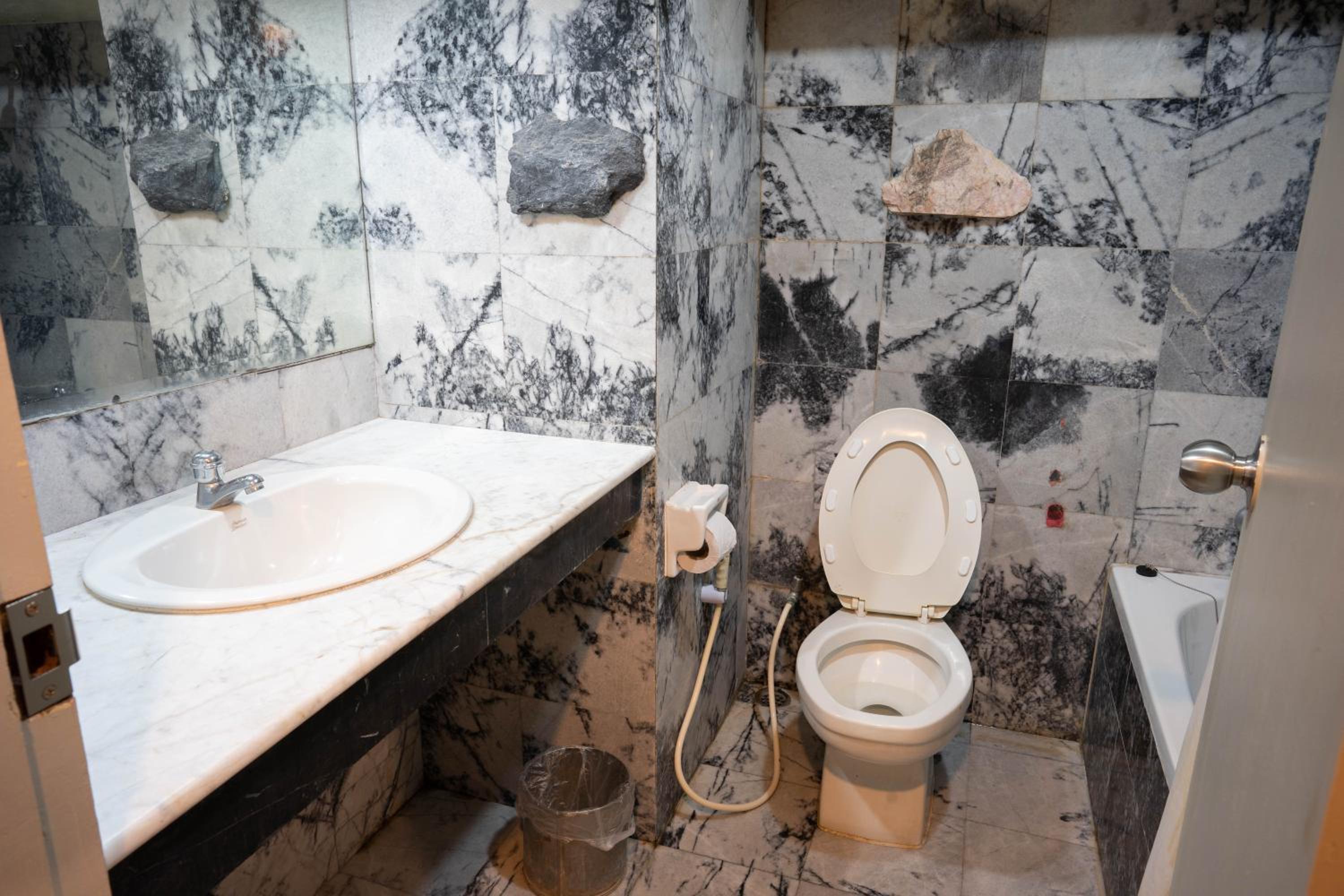The bathroom was okay, but it could use a little improvement. Other than that, everything was fine.