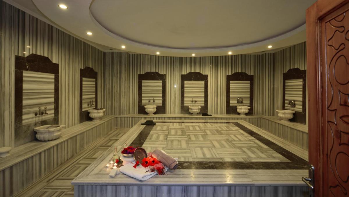 Savor delectable meals at the open buffet restaurant and unwind with a wide selection of drinks at the hotel bars. Stay active at the fitness centre, then pamper yourself with a Turkish bath, sauna session, or a dip in the indoor pool.