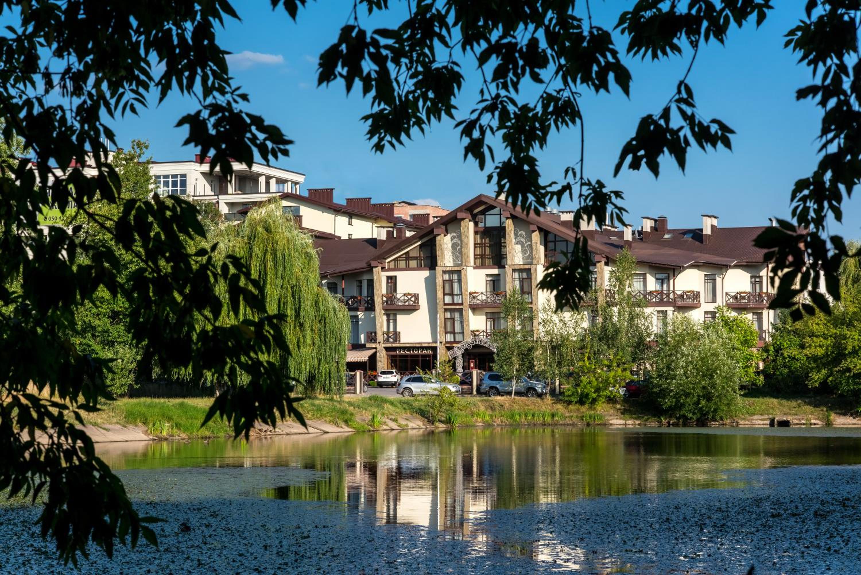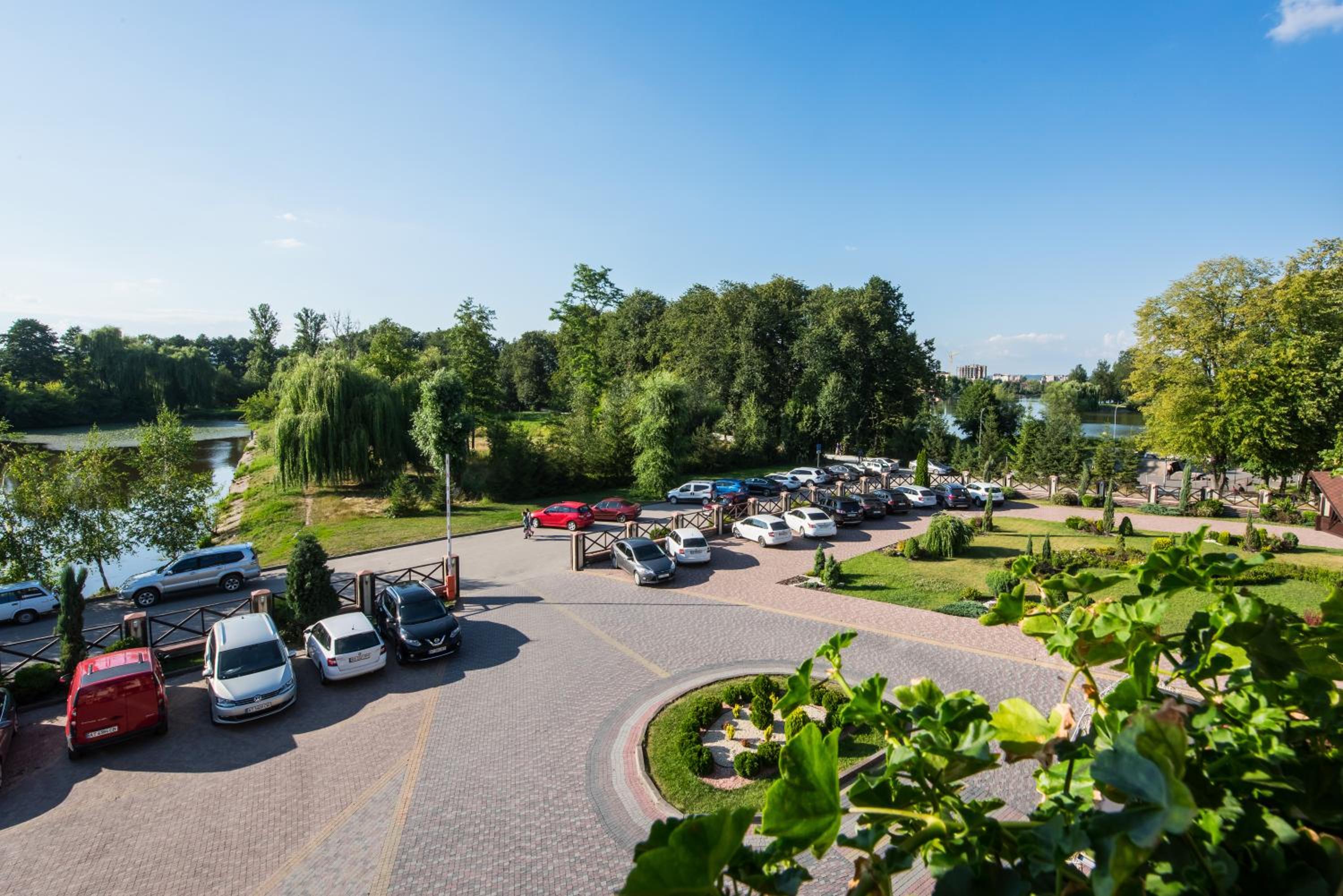 Затишний готель біля міського озера. Ввічливий персонал. Наявність інтернету, теплої води та світла. Місце для паркування. Зручні ліжка
