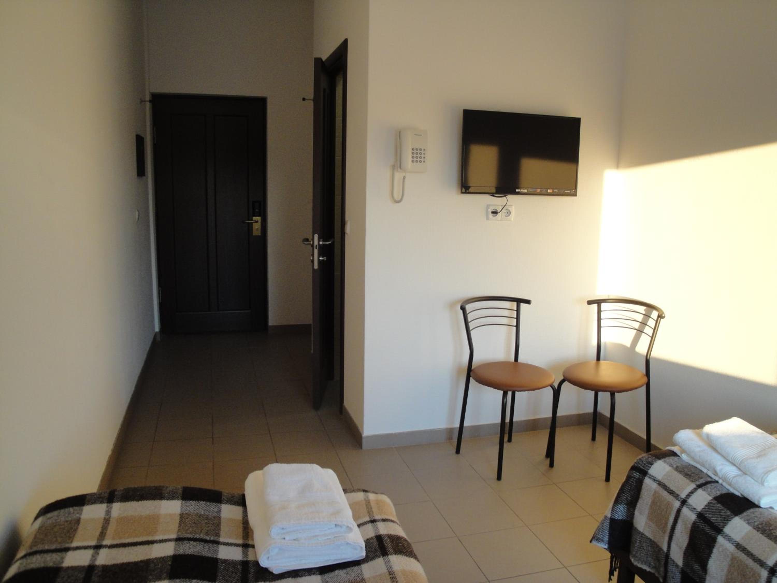 Відсутні стіл або тумбочка - немає куди покласти телефон під час зарядки або поставити пляшку з водою. Відсутній будь-який посуд. У вікно шмалить сонце, але шторки маленькі і прозорі, тому якщо хочеться вдень або під вечір раніше відпочити - це складно, бо світло в очі. Кондиціонер дує майже на ліжко - якщо його вимкнути - відразу відчувається, що сонцем нагрівається люба поверхня в кімнаті наче "шторок" і немає. Якщо відкрити вікно, щоб пустити свіже повітря вночі - гучно чути машини з траси. Також чути все, що відбувається у сусідньому номері, бо погана шумоізоляція. Повезло, якщо сусіди спокійні та не дуже довго дивляться телевізор. В любому випадку беруши для вух і окуляри для сну не будуть зайвими... Під дверима щілина пошти в палець товщиною - в корідорі все чути... Їхав з Кривого Рога - отель на іншому боці дороги - навігатор завів незрозуміло куди через розв'язку на мосту - прийшлось повернутись на трасу і порушити правила розвороту в інший напрямок, бо отель бачиш і не розумієш, як до нього під'їхати - до правильного розвороту 35 км!