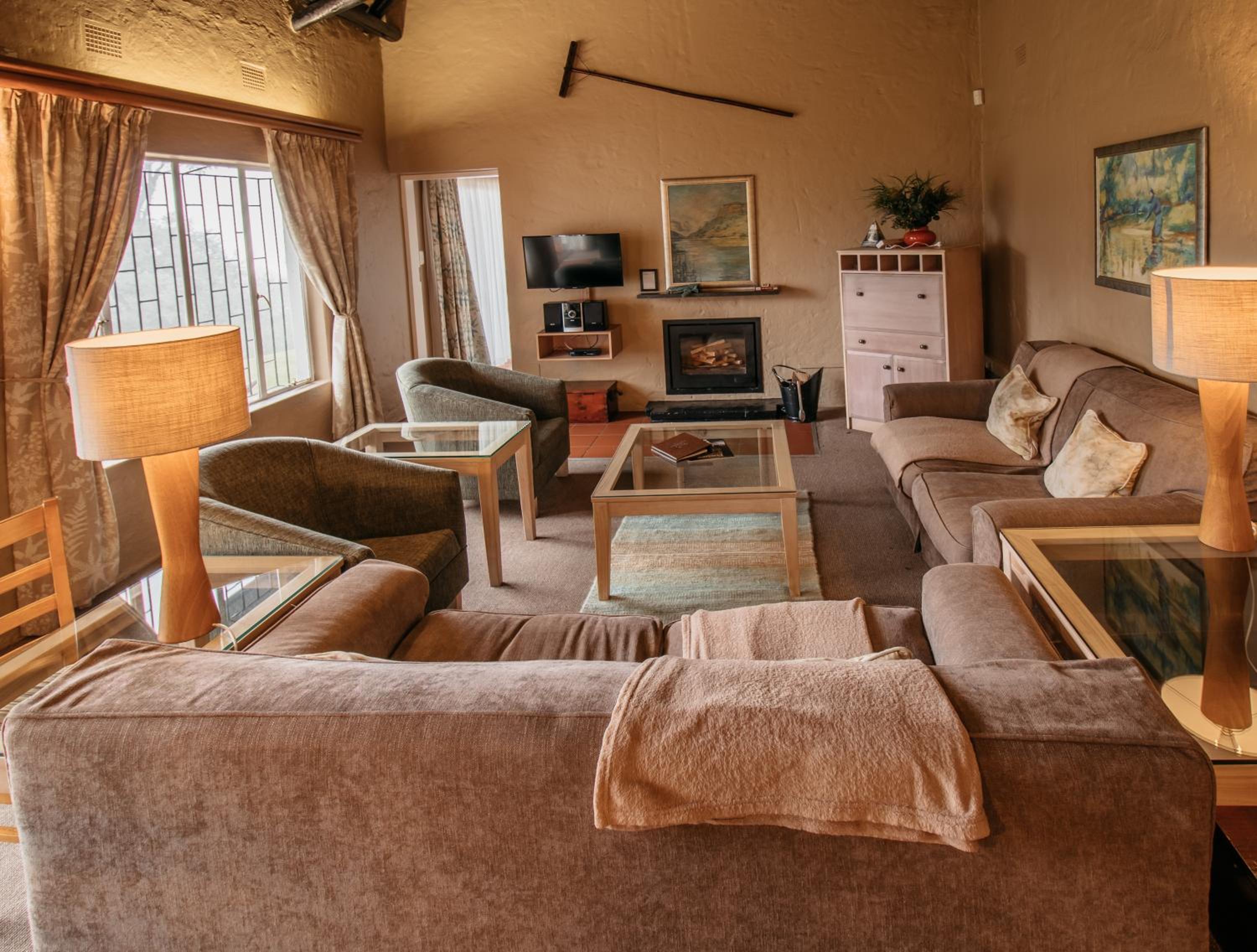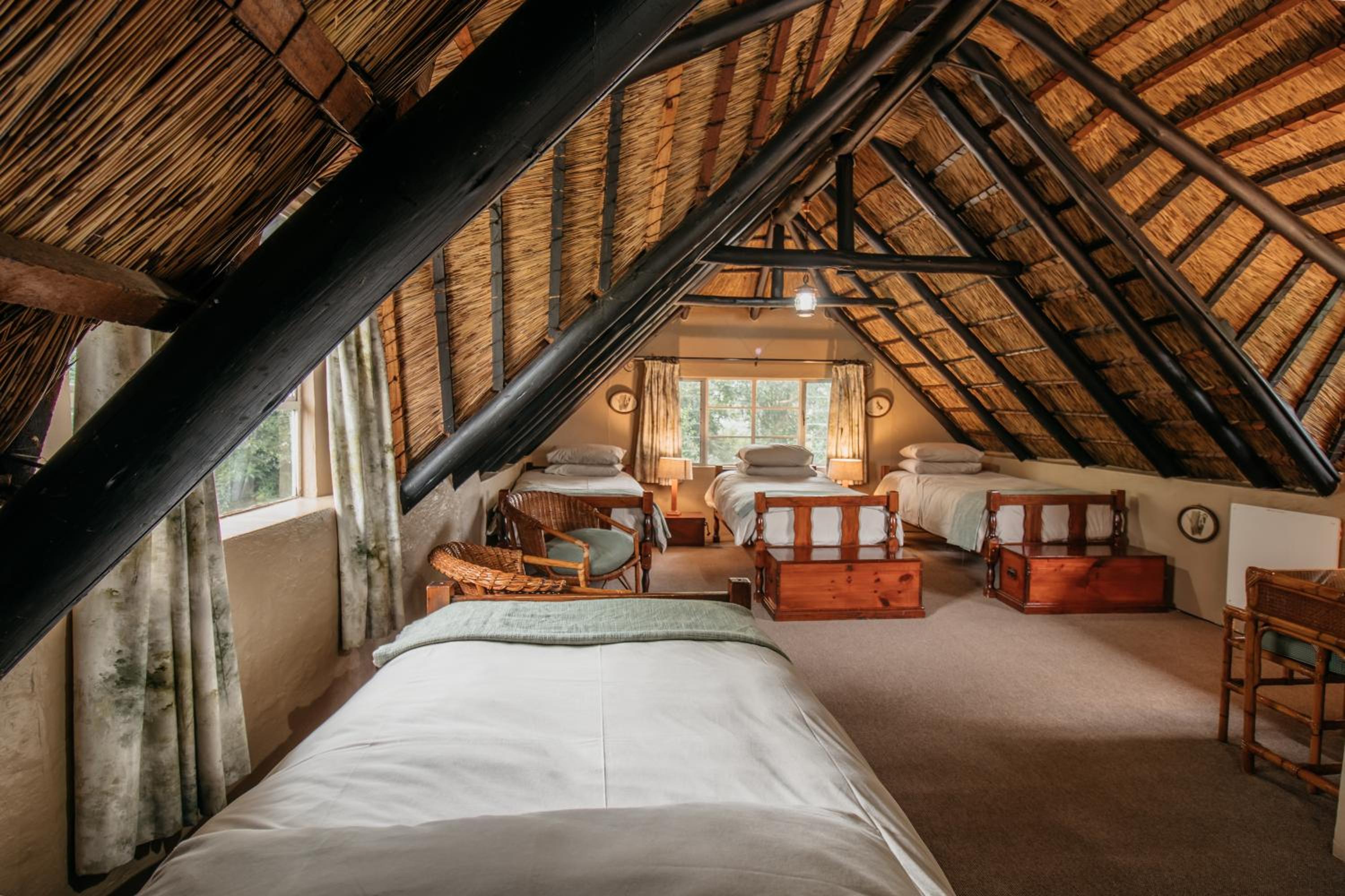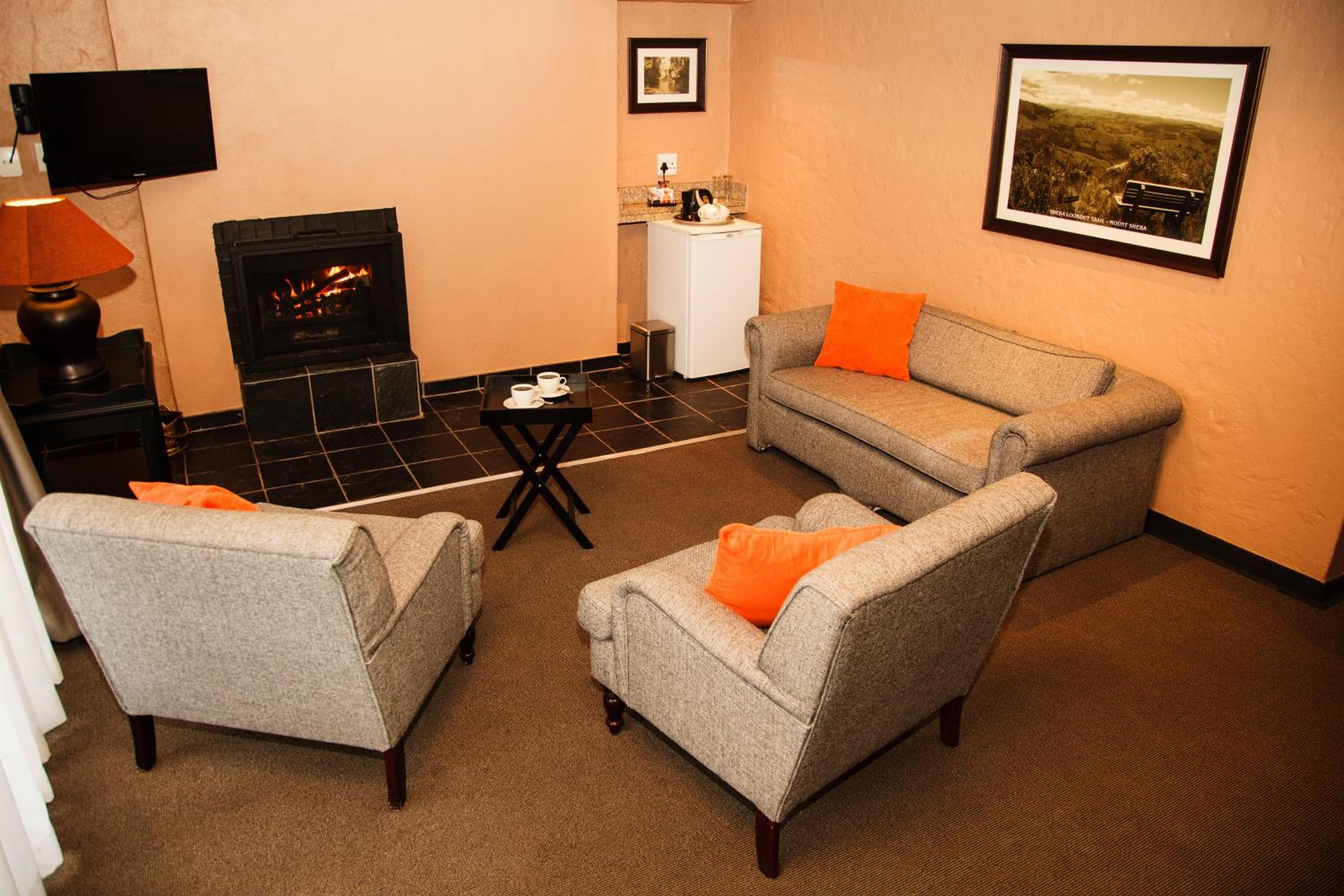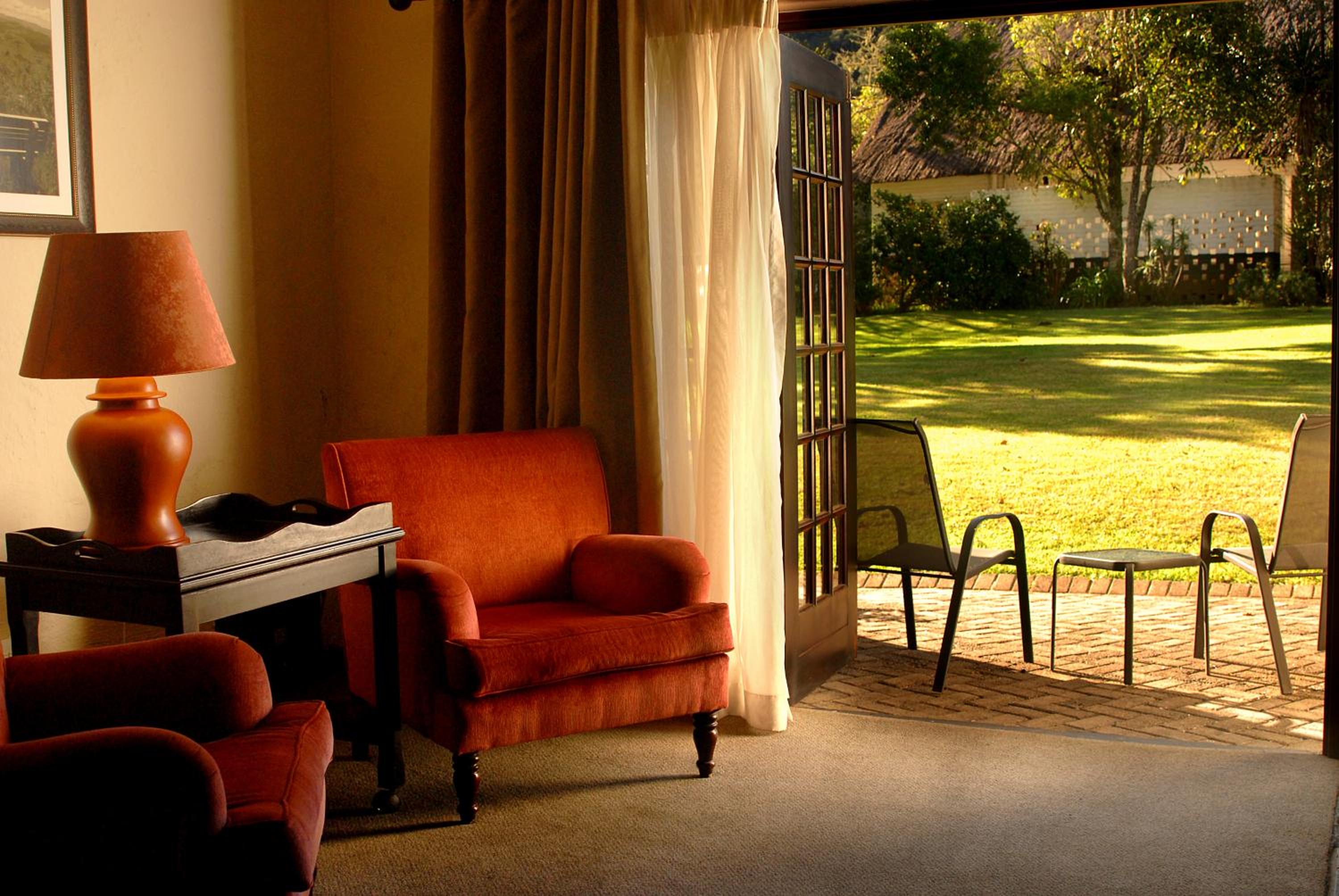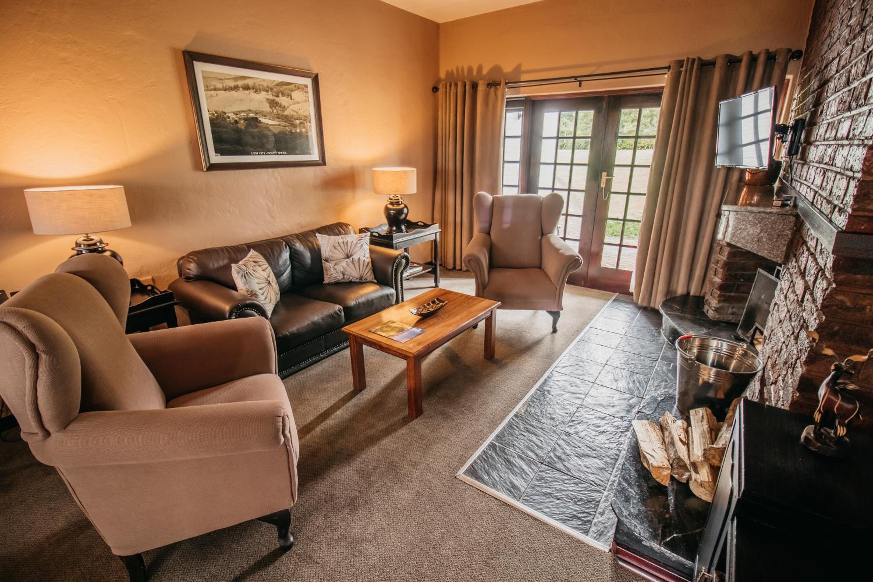 Indulge in the charm of thatched rooms at Mount Sheba, complete with modern amenities and a touch of rustic elegance. Relax by the cosy fireplace or enjoy the views from your private patio.