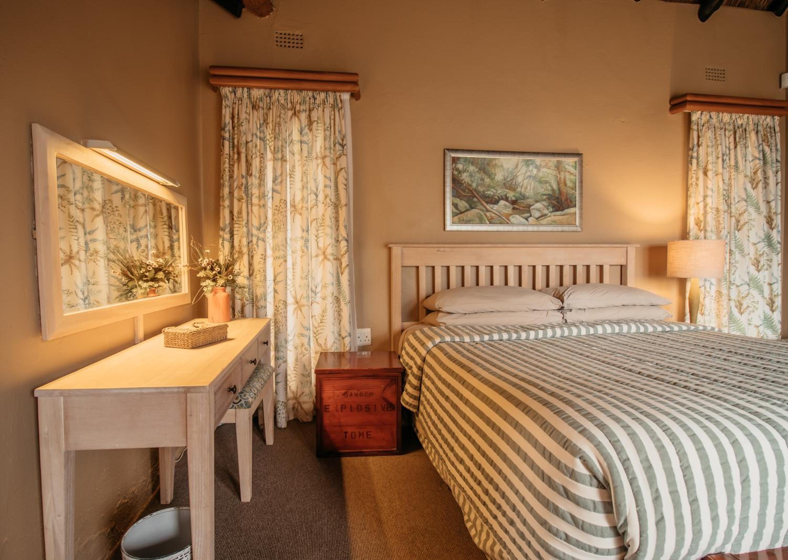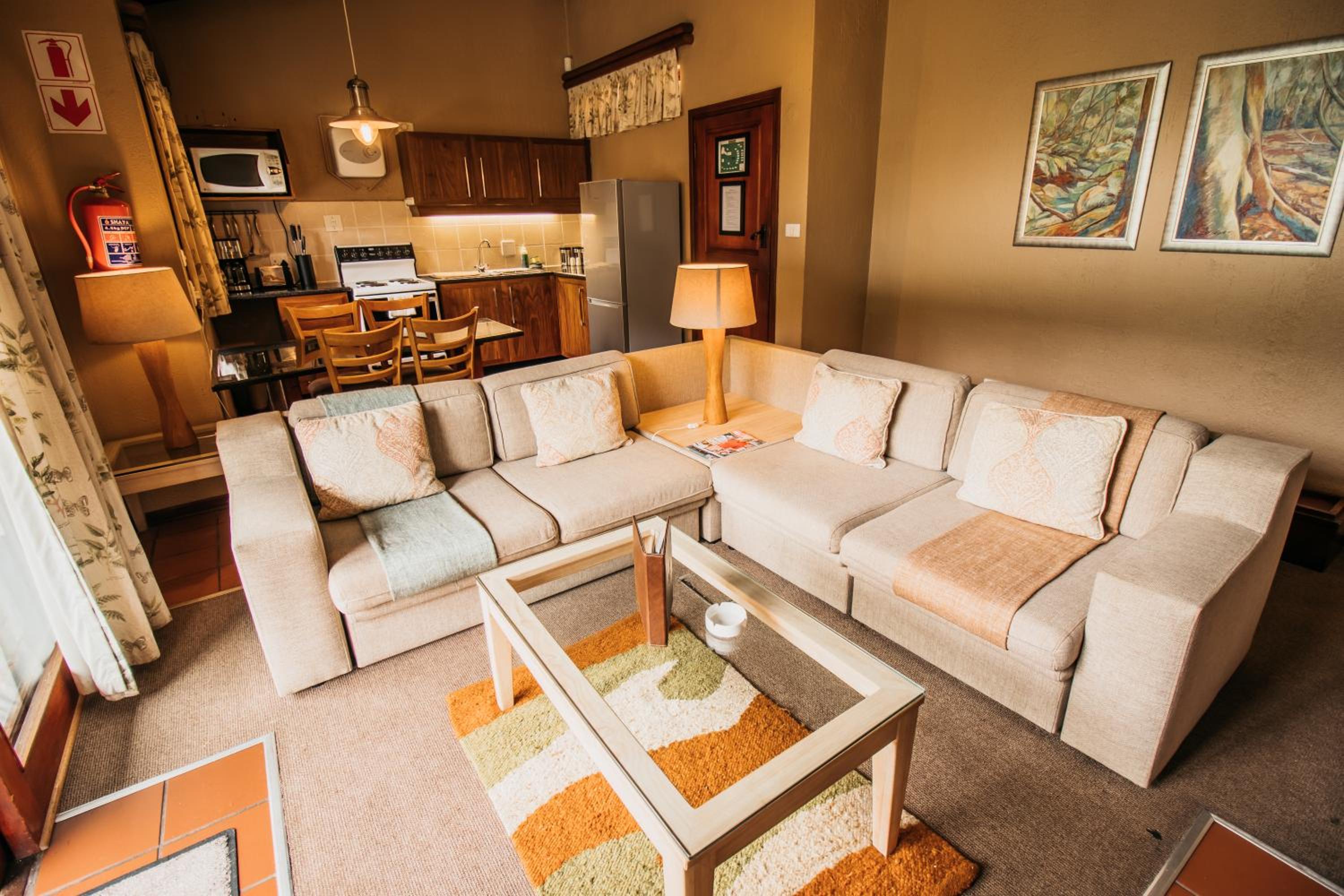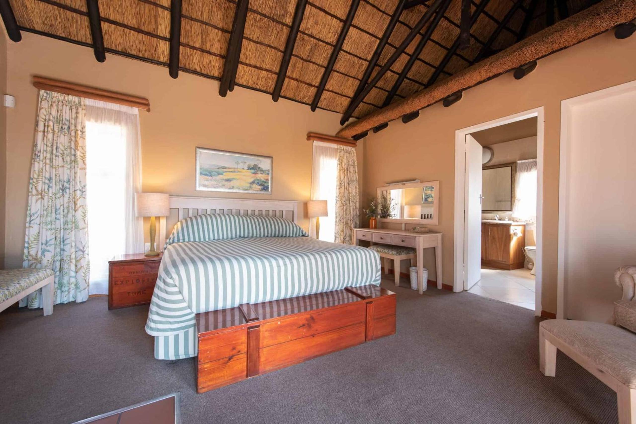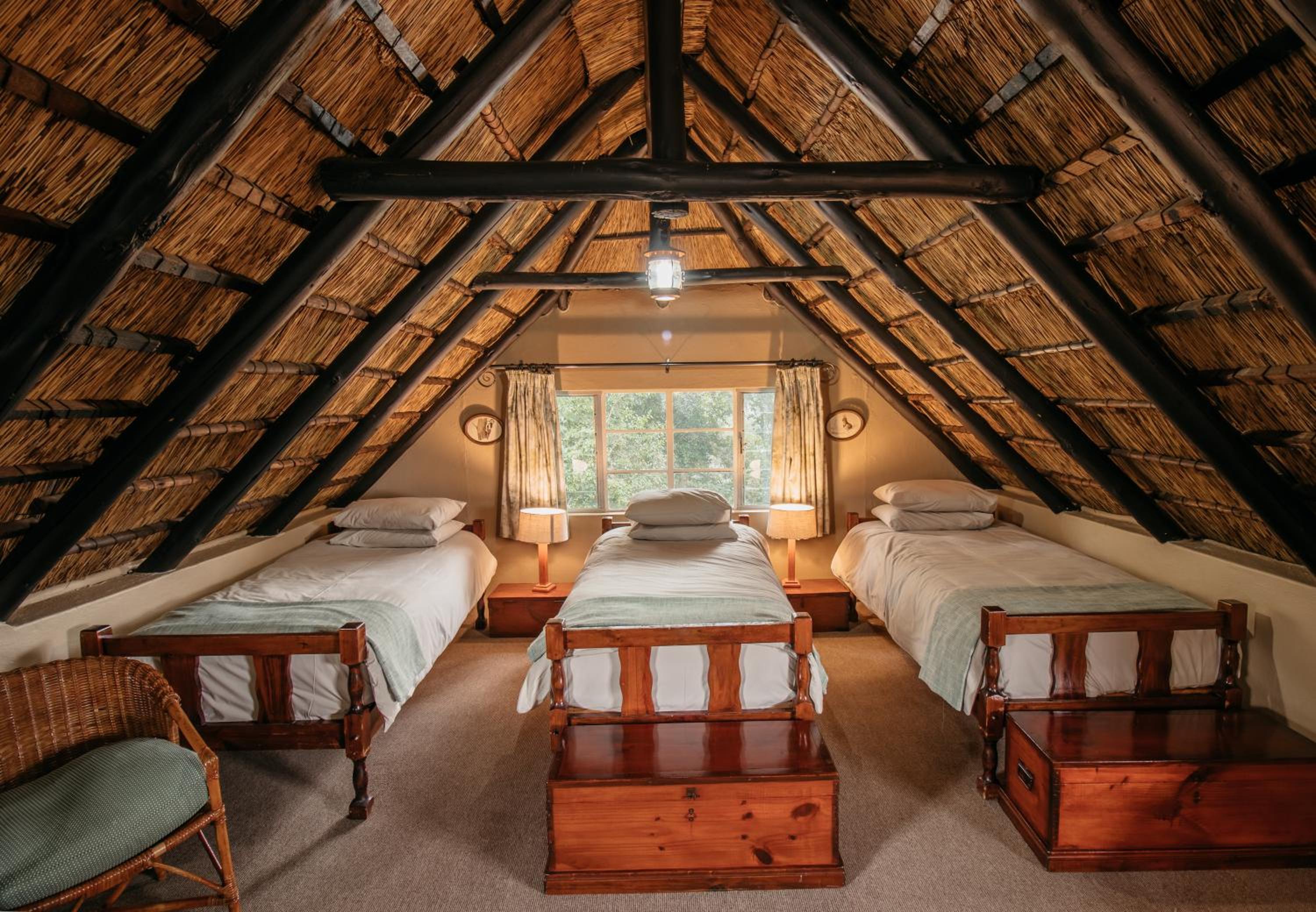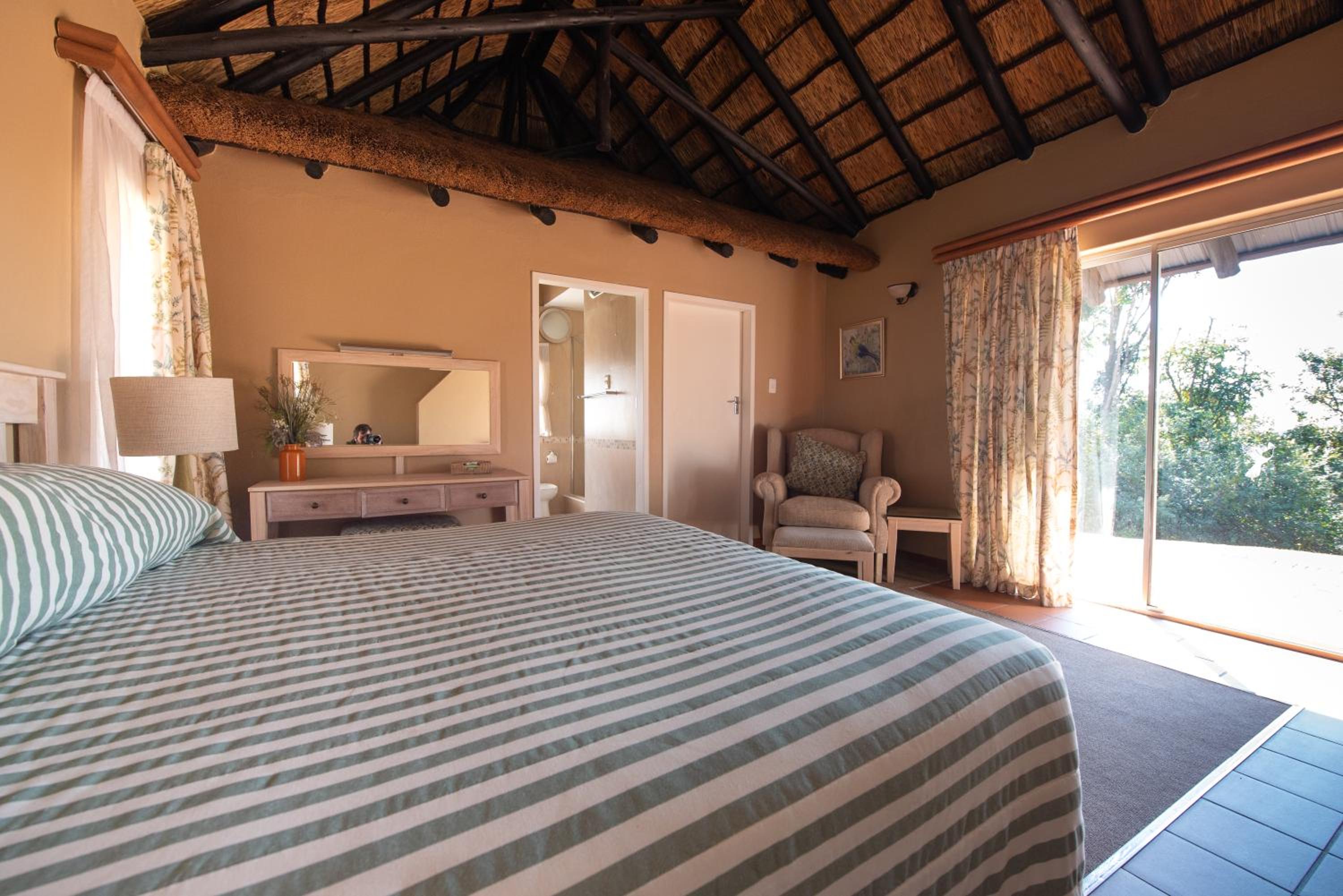 Indulge in the charm of thatched rooms at Mount Sheba, complete with modern amenities and a touch of rustic elegance. Relax by the cosy fireplace or enjoy the views from your private patio.