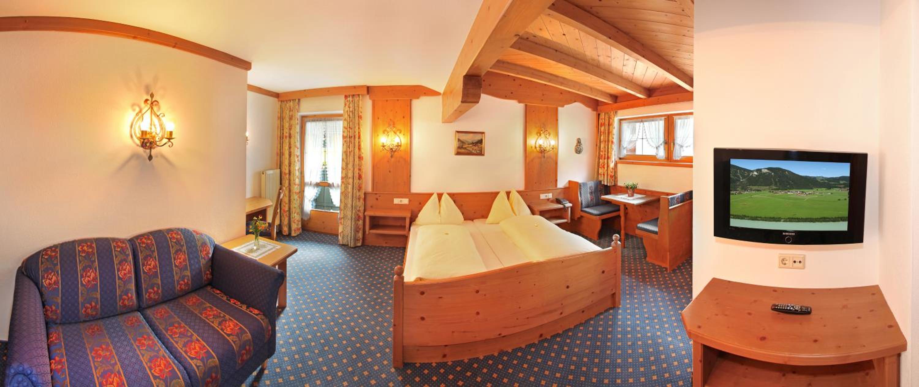 Sehr schönes und gut ausgestattetes Hotel im Zentrum von Erl. Der Stil ist tirolerisch-rustikal. Sehr gut ausgestatt der Wellness Bereich. Freundlicher Empfang, Zimmer gross und sauber, Essen ganz OK, besonders das Grillmenü am Samstag. Frühstück ziemlich vollständig, das meiste vorhanden, was man sich wünscht.