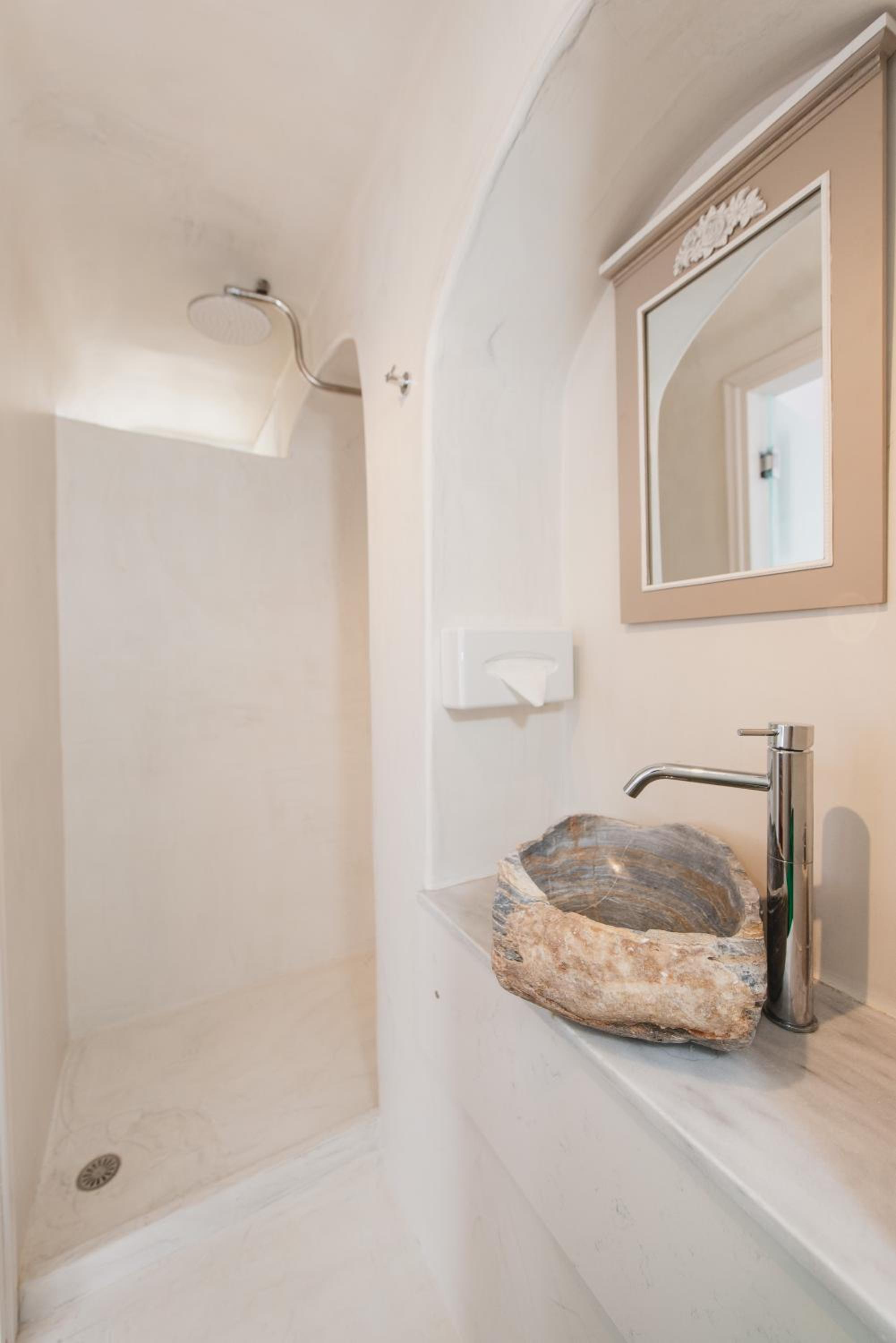 Indulge in a range of wellness treatments at Villas Fanari, including massages, facials, and even hair-dressing appointments. Unwind further in the sauna or by the swimming pool, half of which is nestled in a charming arched cavern with a hot tub.