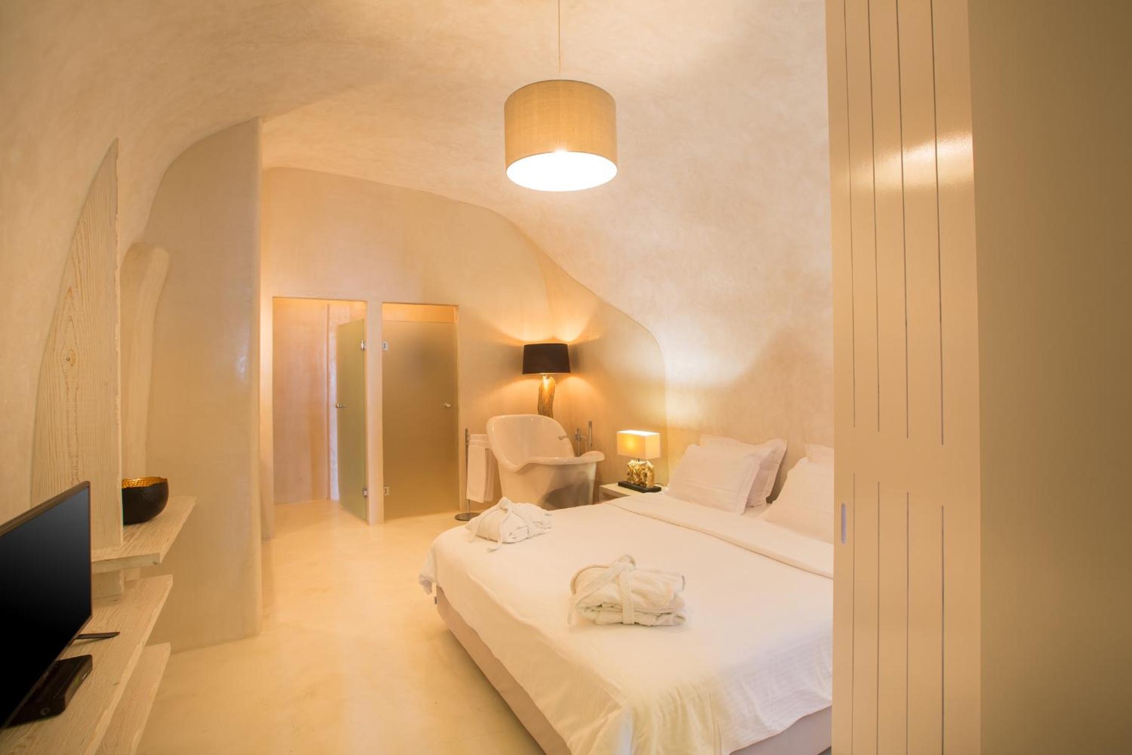 Experience the charm of Oia at The Dream, a traditional cave house boasting 2 separate units, each offering an outdoor hot tub and breathtaking views of the caldera.