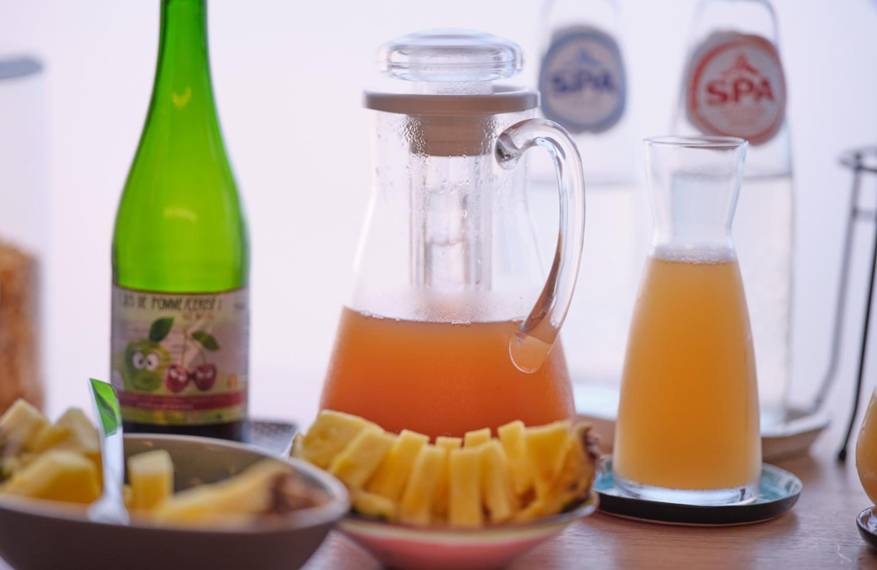Bij het ontbijt heb je een ruime keuze aan opties. Verschillende soorten beleg, koffie/thee en vers geperste appelsiensap.
