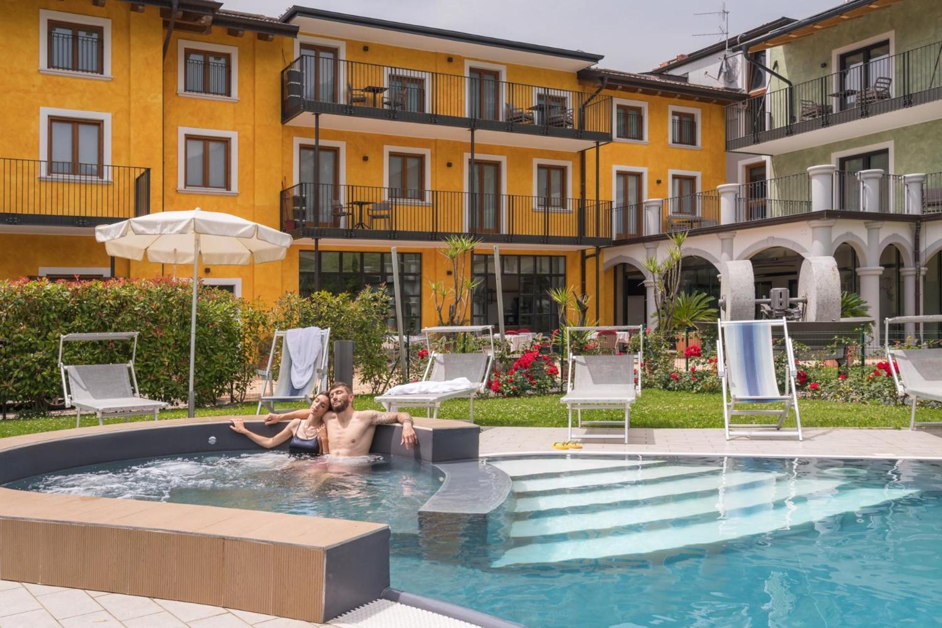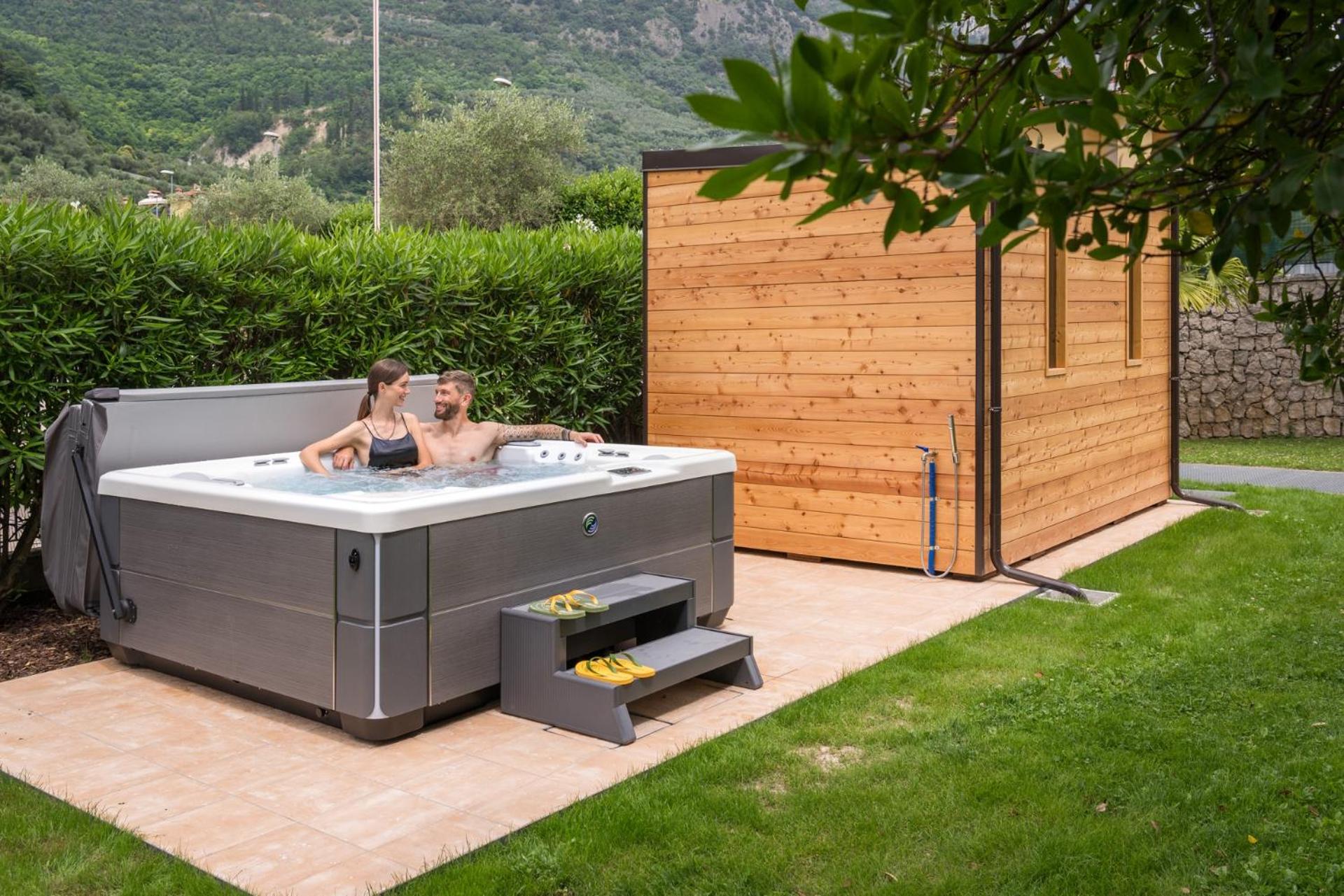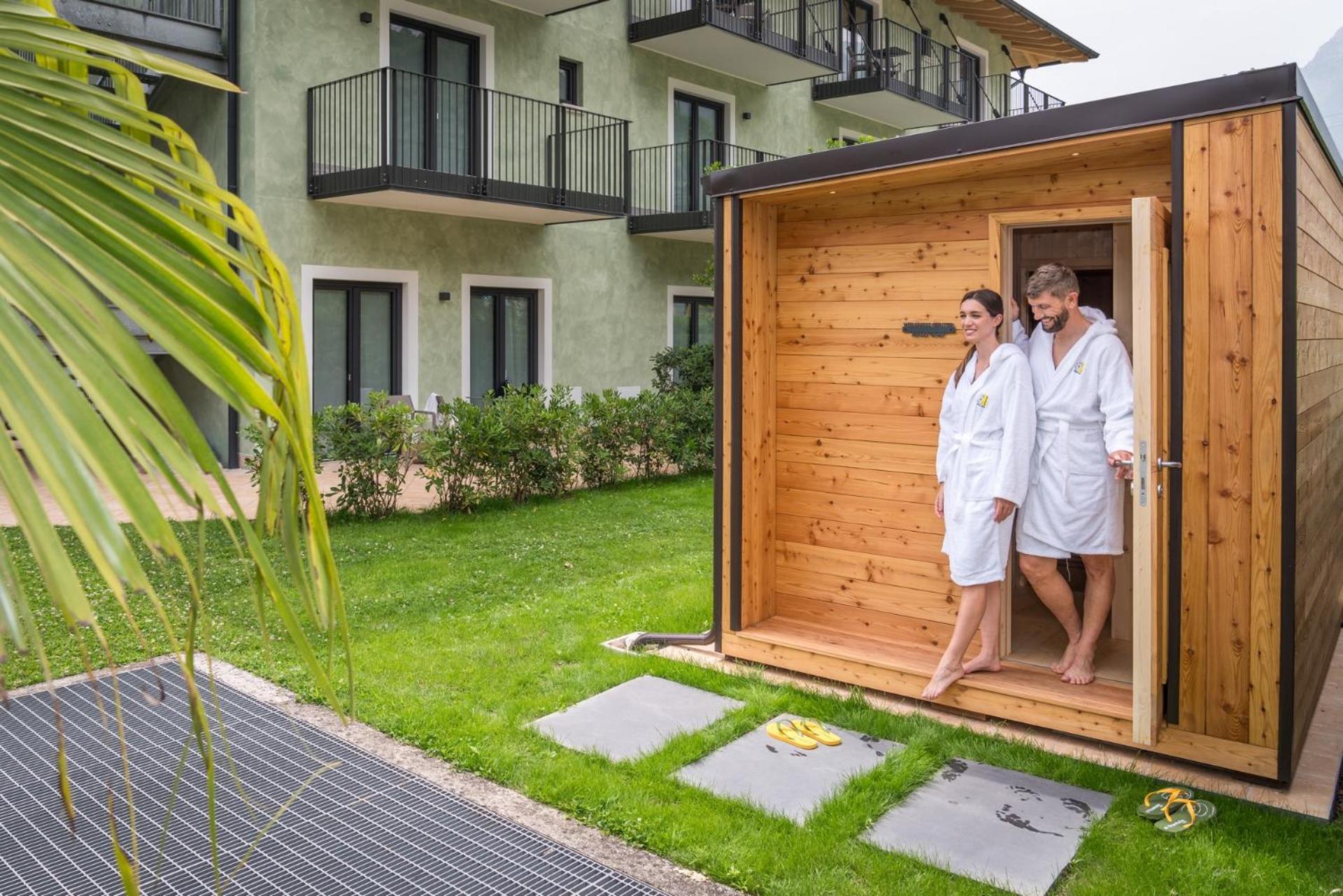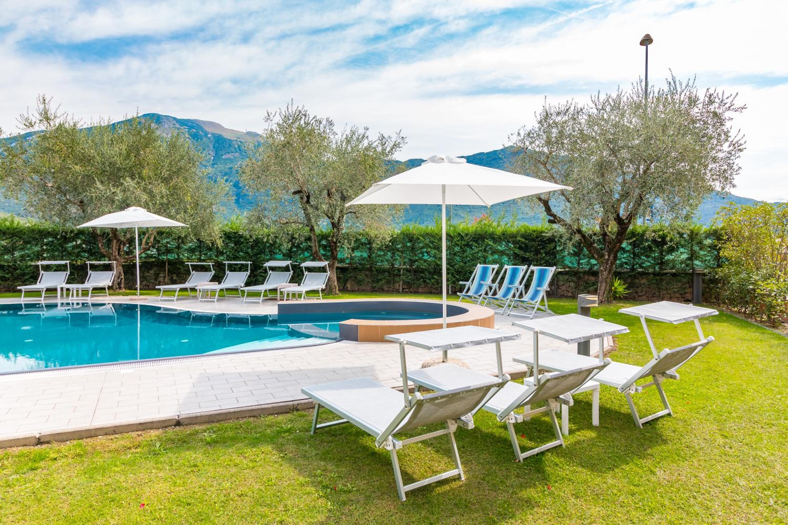 Indulge in the paid wellness area with a sauna, hot tub, and Turkish bath for a rejuvenating experience. The large garden provides a tranquil escape, ideal for unwinding after a day of exploring Riva del Garda.
