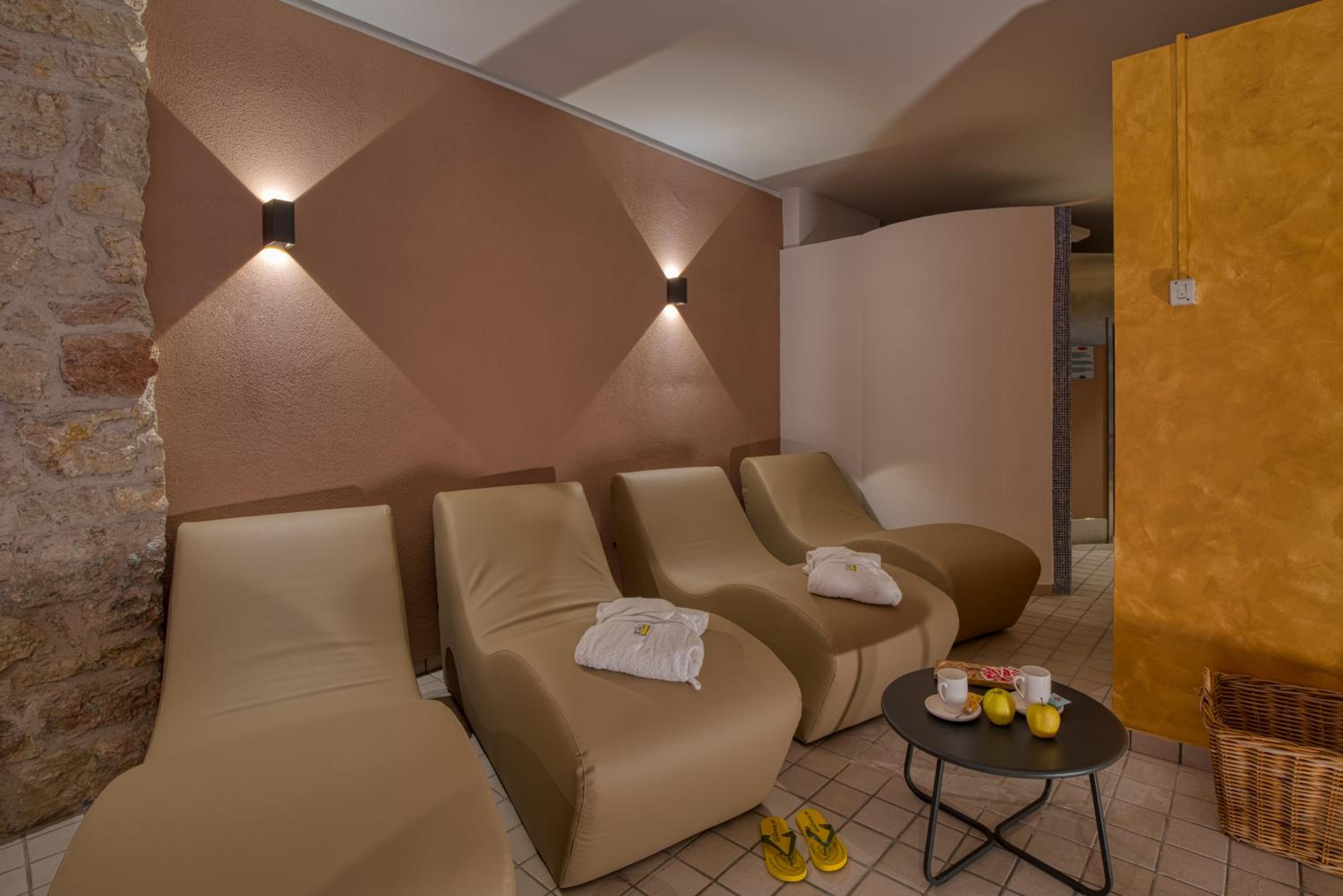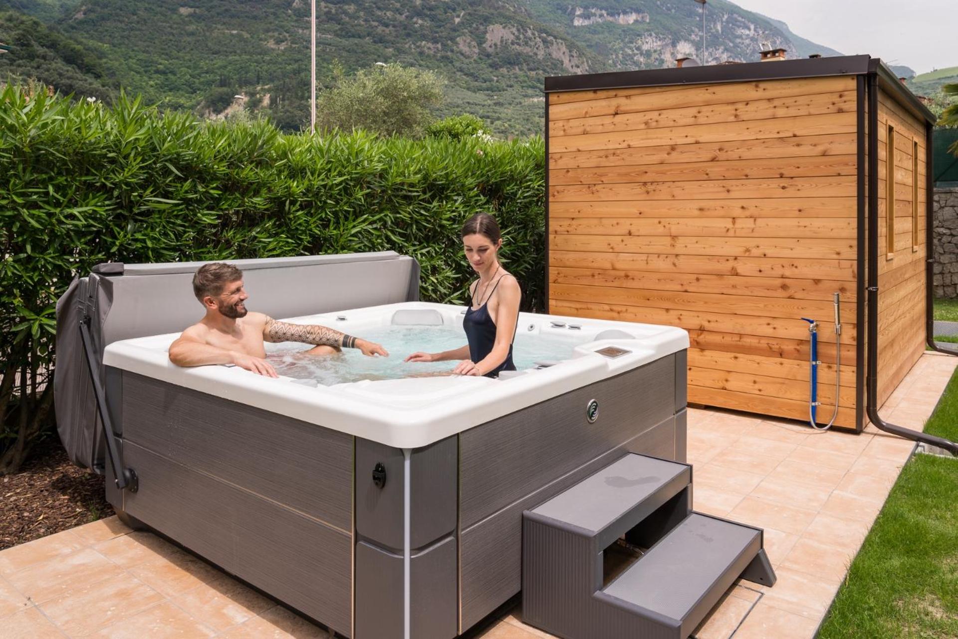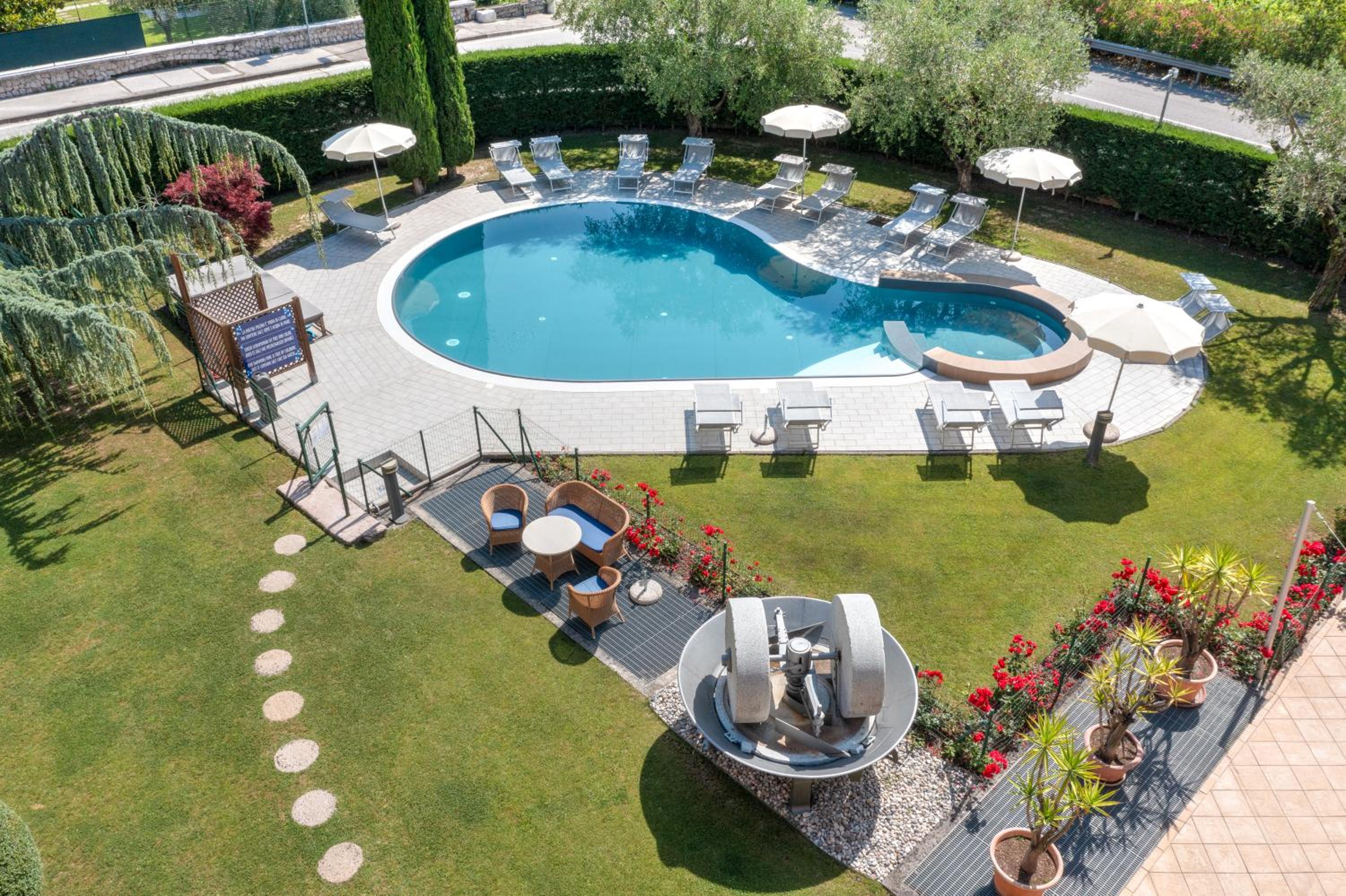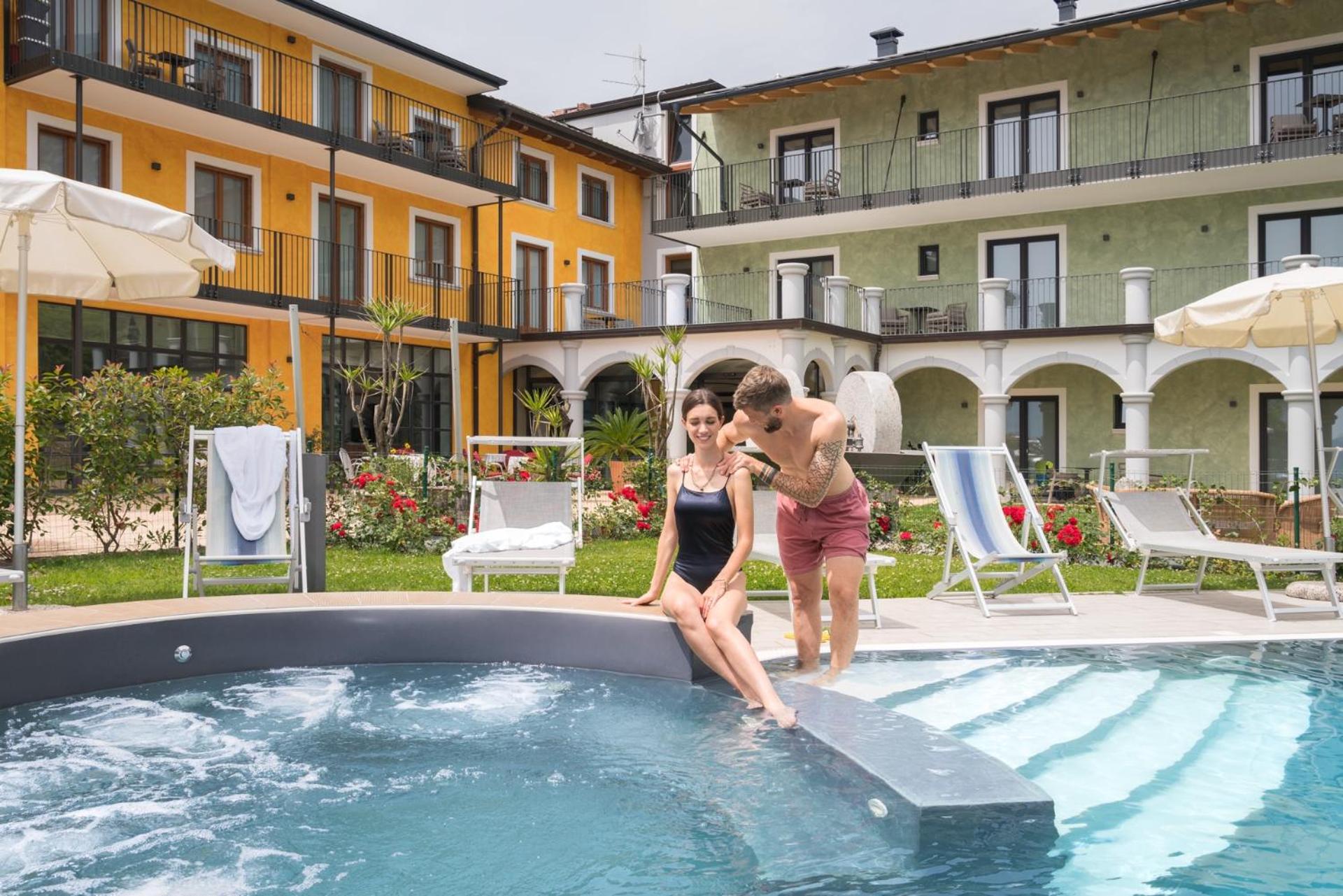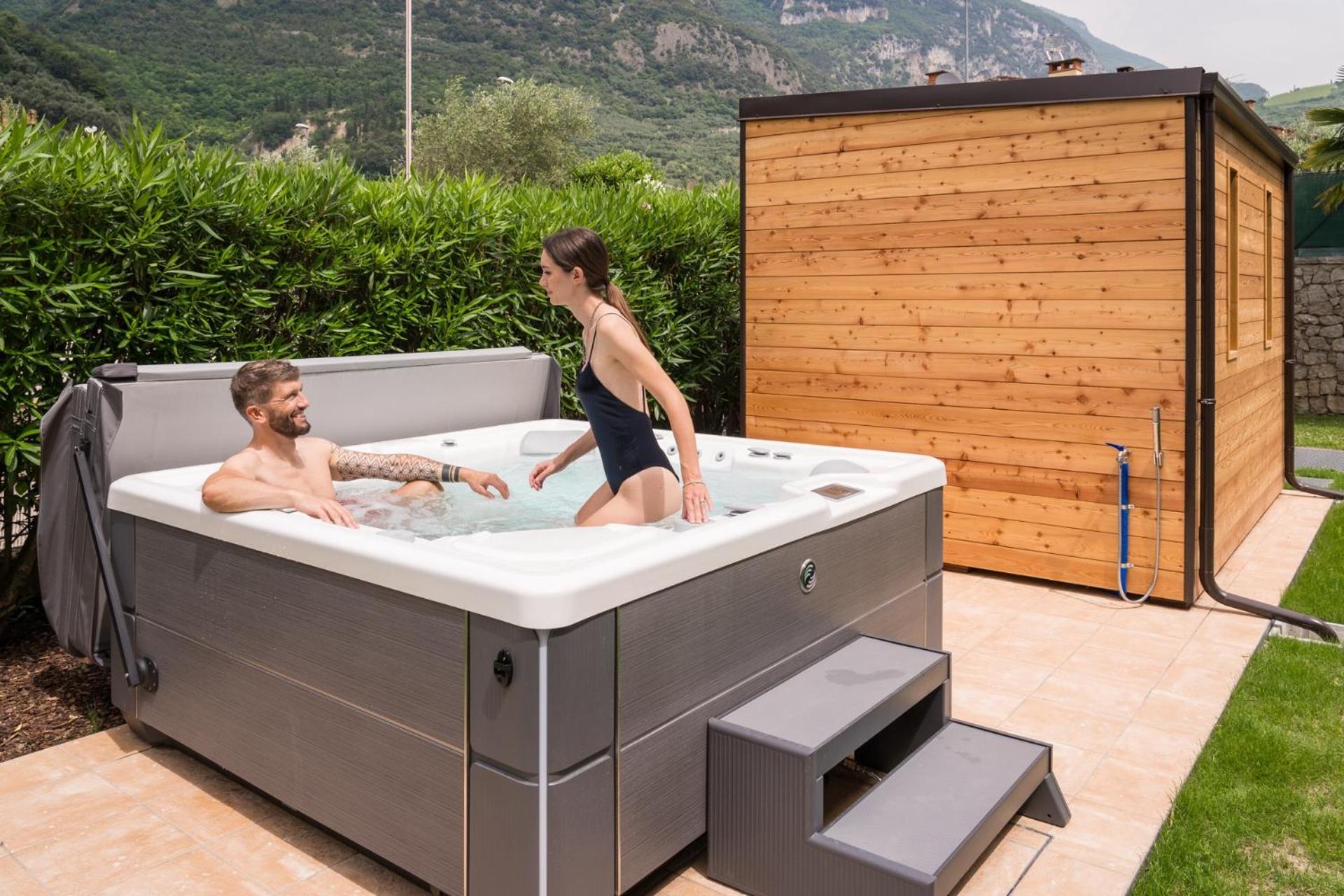 Indulge in the paid wellness area with a sauna, hot tub, and Turkish bath for a rejuvenating experience. The large garden provides a tranquil escape, ideal for unwinding after a day of exploring Riva del Garda.