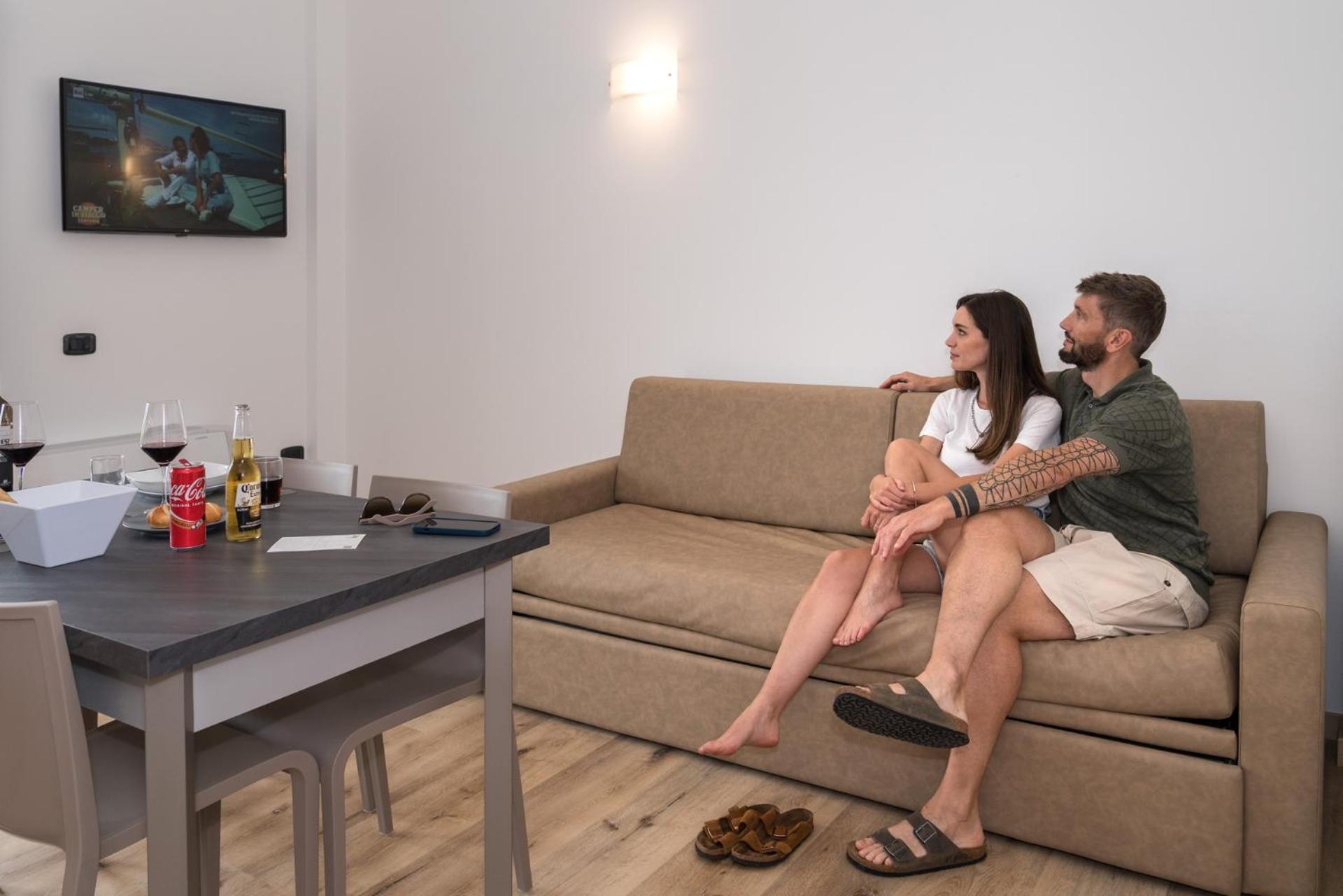 Embrace a unique stay at Residence Al Frantoio with its eye-catching yellow façade that stands out against the natural backdrop. Enjoy the serene surroundings from the equipped garden with a sea-water pool, perfect for relaxation.