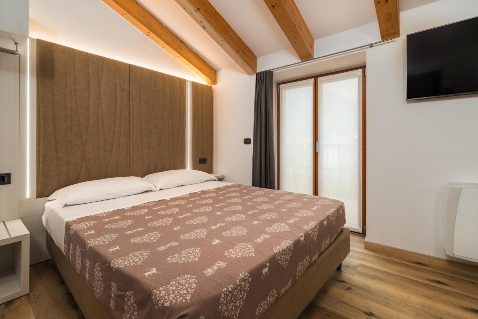 Modernes Zimmer mit riesigem Balkon an ruhiger Lage und grossem Parkplatz, perfekt für einen Urlaub mit Outdooraktivitäten.