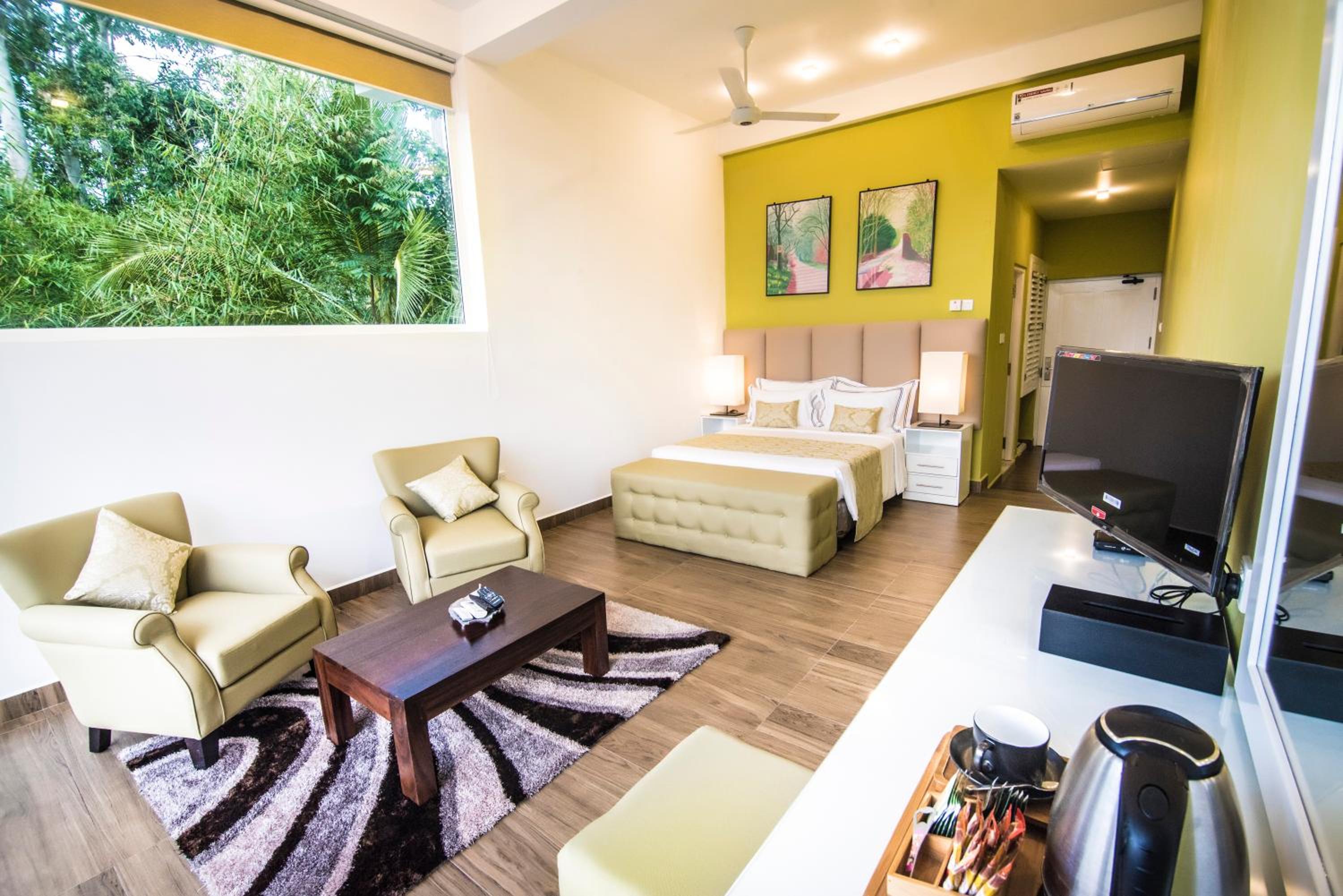 Guests can unwind by the outdoor swimming pool, explore the lush garden, or relax in the shared lounge area. The hotel also features a 24-hour front desk, airport transfers, and free WiFi, providing convenience and connectivity throughout your stay.