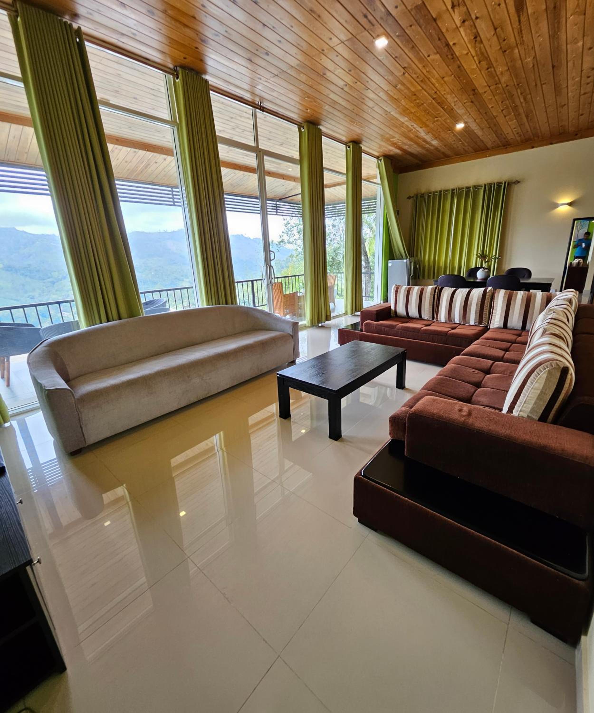 While the location is about 3 kms from the main area, it has fabulous views - of the nine arch bridge, train tracks and the mountains and valley's. Its about a 10 room place and the room overlooks the valley and mountains. For breakfast we were given a nice fruit platter and juice and a choice of western or Sri Lankan main courses. Quite sumptuous. The staff for very attentive to everything