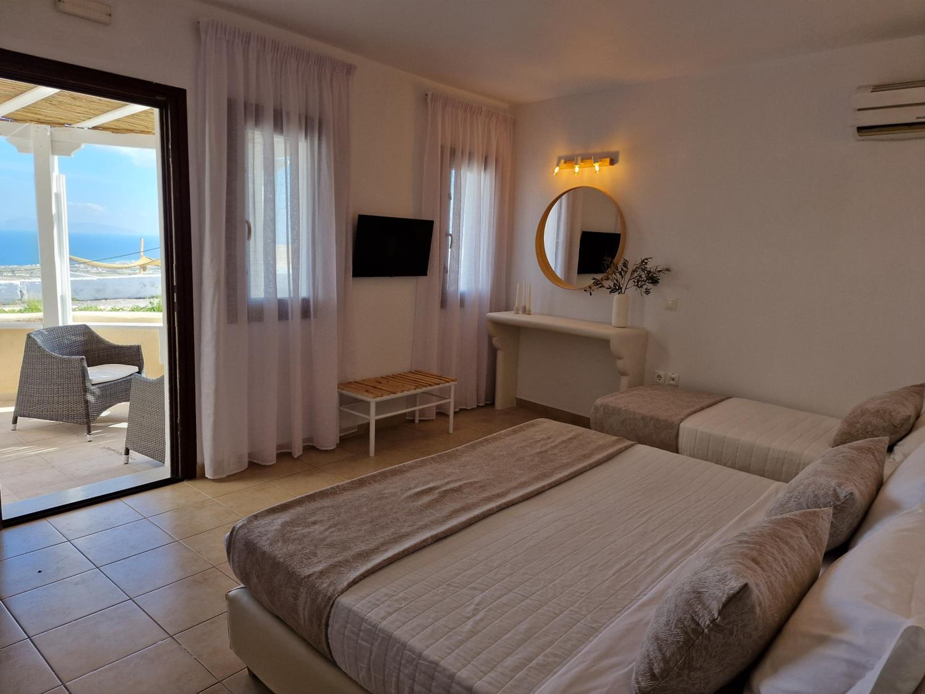 Located on a hill in the east side of Fira, Amerisa Suites & Villa boasts stunning panoramic views of the Aegean Sea. The property's recent total renovation ensures a modern and comfortable stay for guests.