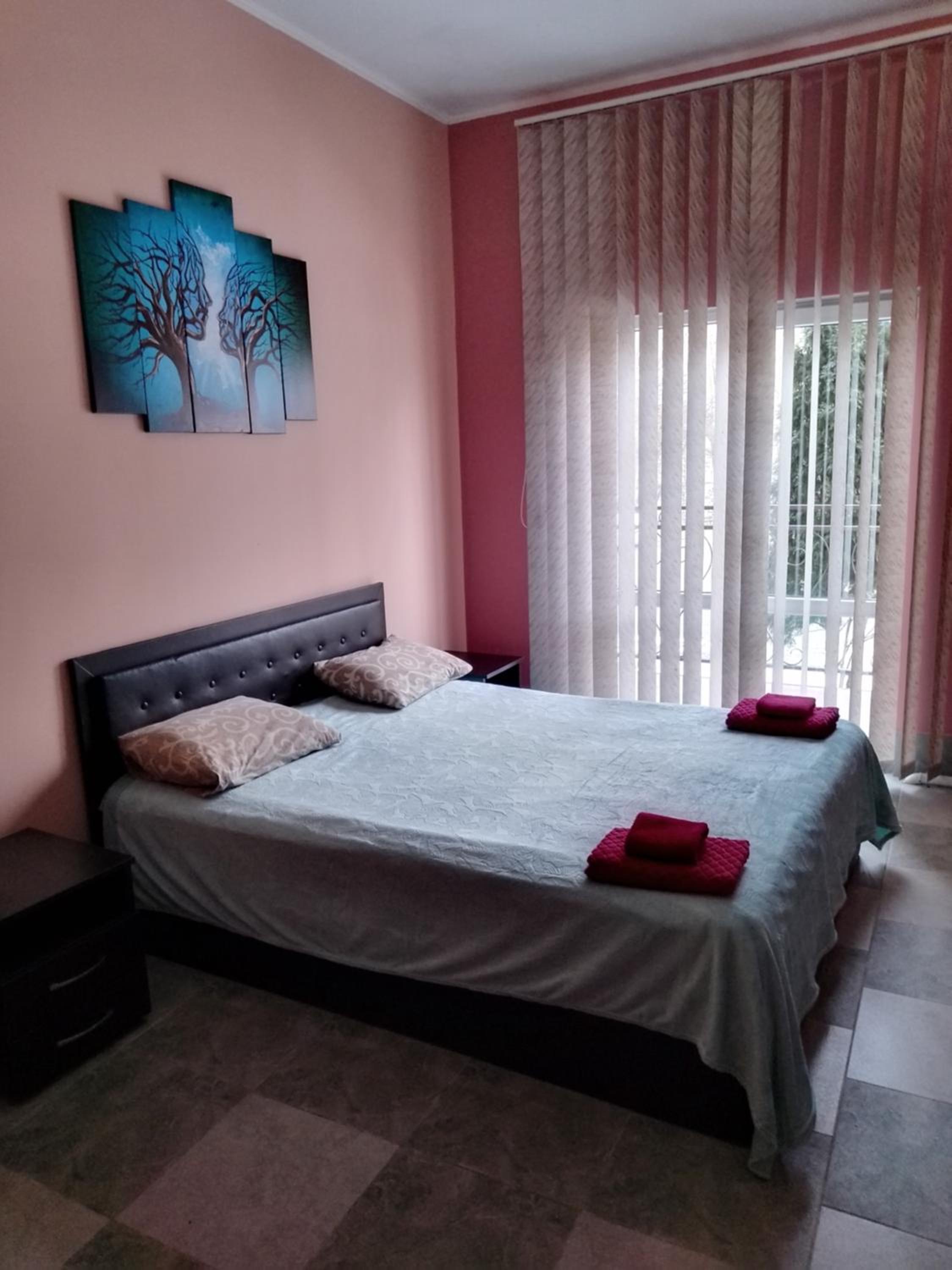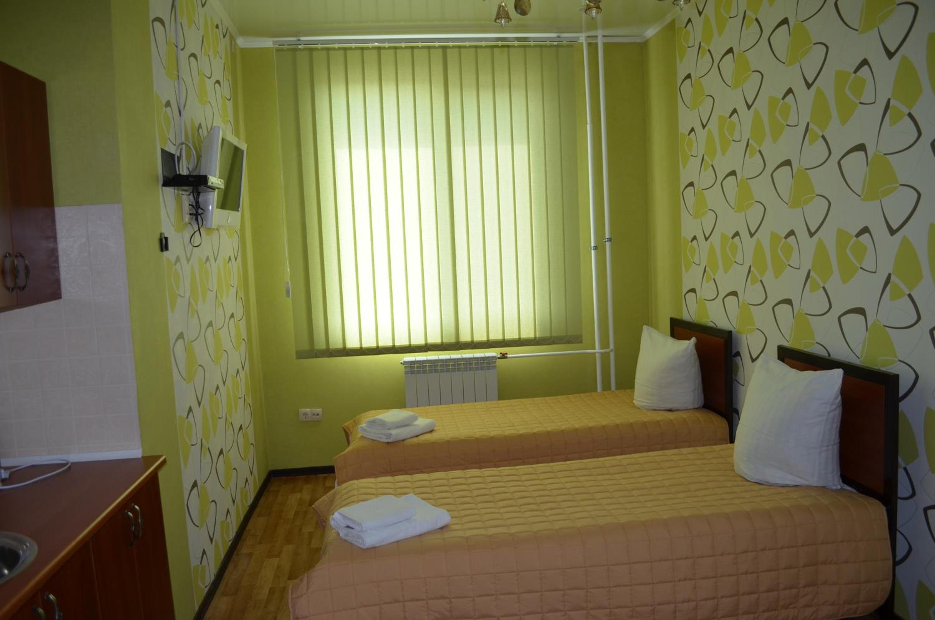 There weren't blinds or sun curtains on the windows. Perhaps it's OK in winter but possibly it will be uncomfortable in hot summer. And there is no night lamp in the room only three bright lamps under the ceiling.