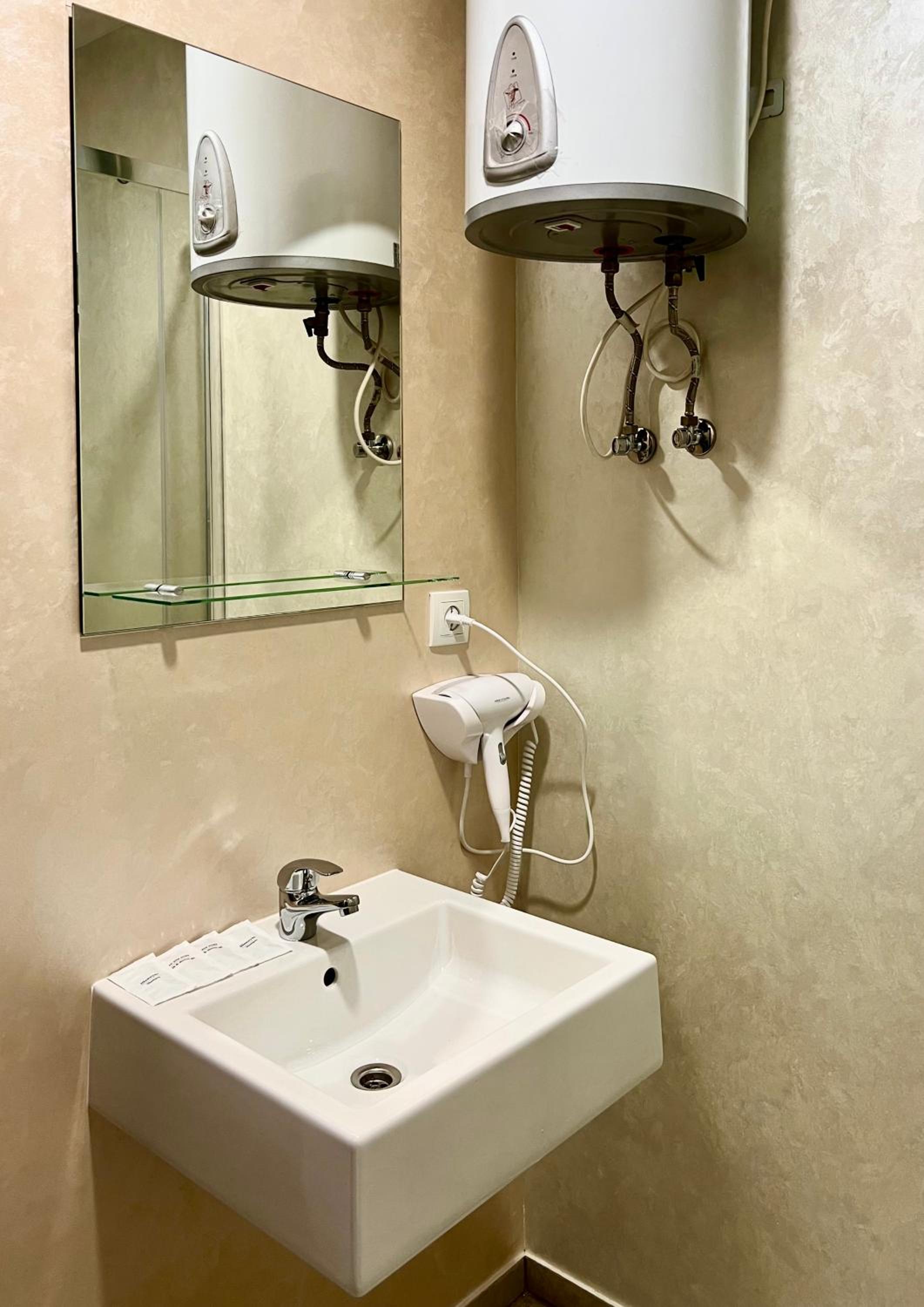 Недорогий невеличкий готель у центрі. Чисто, дуже ввічливий і приємний адміністратор. Туалет і душ сумісний на декілька номерів. У нас не було капців, адміністратор запропонувала одноразові. Внизу можна зробити чай або каву. В номері кондиціонер, праска у коридорі. Вважаю, що дуже хороший варіант зупинки на пару ночей за невеликі гроші.