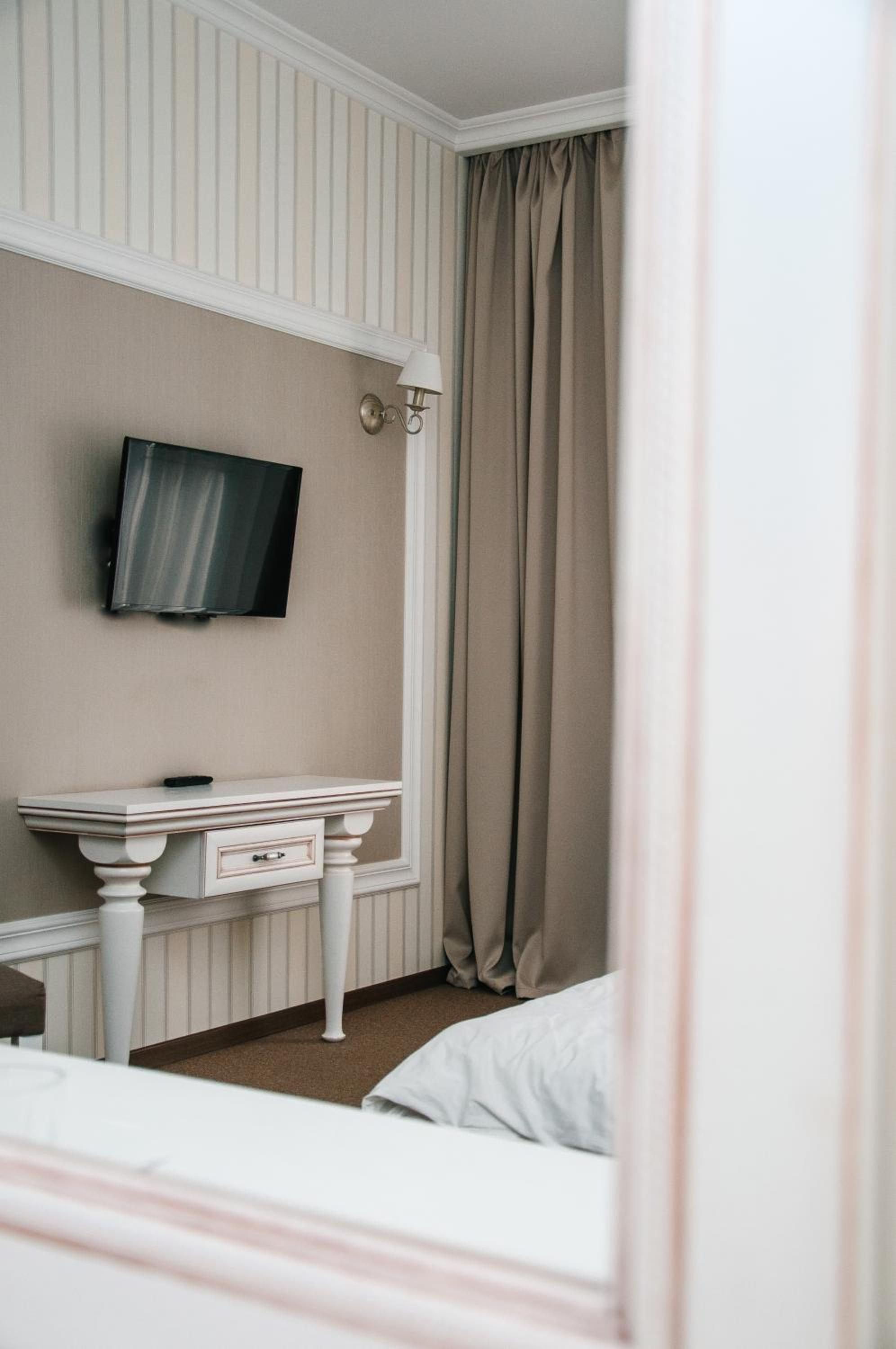 Отель давно потребує ремонту. Ковролін в коридорі та номері був дуууже брудний ( весь в плямах, біля штори навіть пропалений). Деревʼяна дошка, яка обрамлює телевізор, відпадала від стіни. На стільці відвалилась оббивка коли на нього сіли. Смітник у ванній погнутий. Матрас просів до пружин і спати на ньому не зручно. Дуже клацає електрообігрівач на стіні (вночі прокидаєшься весь час від цього). У номері немає безкоштовної води (тільки у мінібарі платна).
