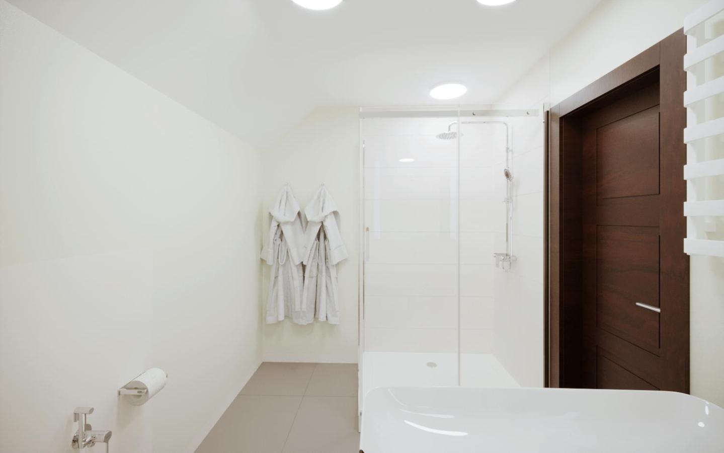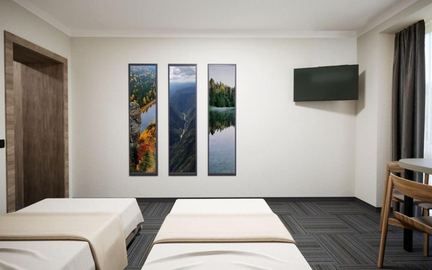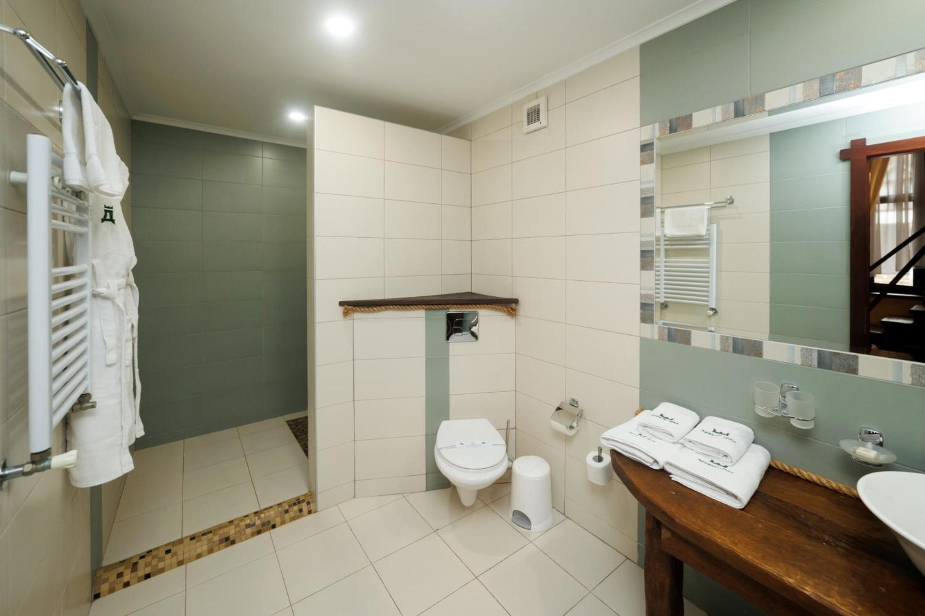 Привітні дівчатка на рецепції, зручне розташування, чисті і просторі кімнати, сучасний душ, достатній смачний сніданок, безпечна парковка, гарне поєднання стилю комплексу з природою навколо.