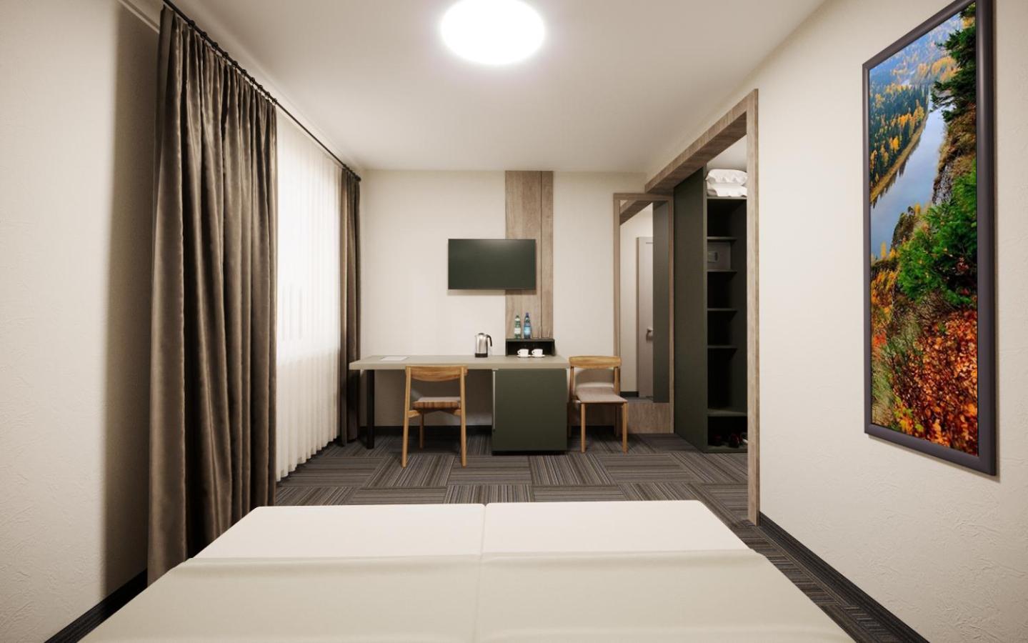 Уважний персонал, гарний і затишний номер, чисто. Дуже зручне ліжко, в номері є все необхідне, навіть беруші) Гарний ресторан, є територія де погуляти. Трохи чутно шум від траси, але тільки на вулиці, в номері тихо.