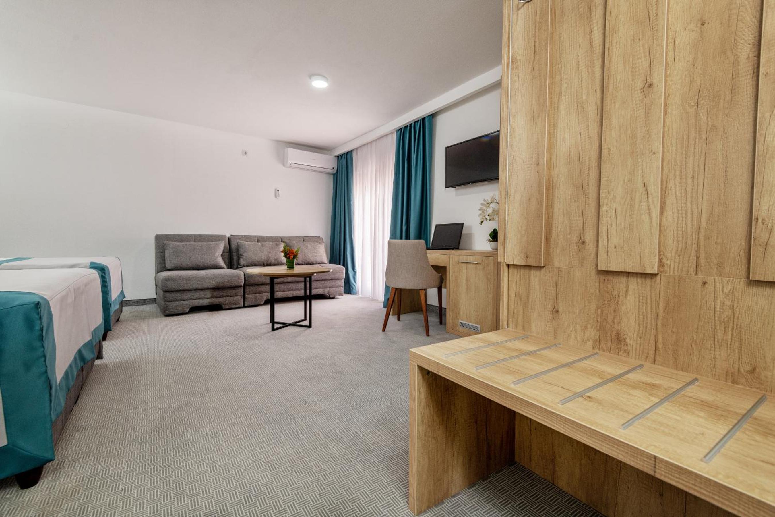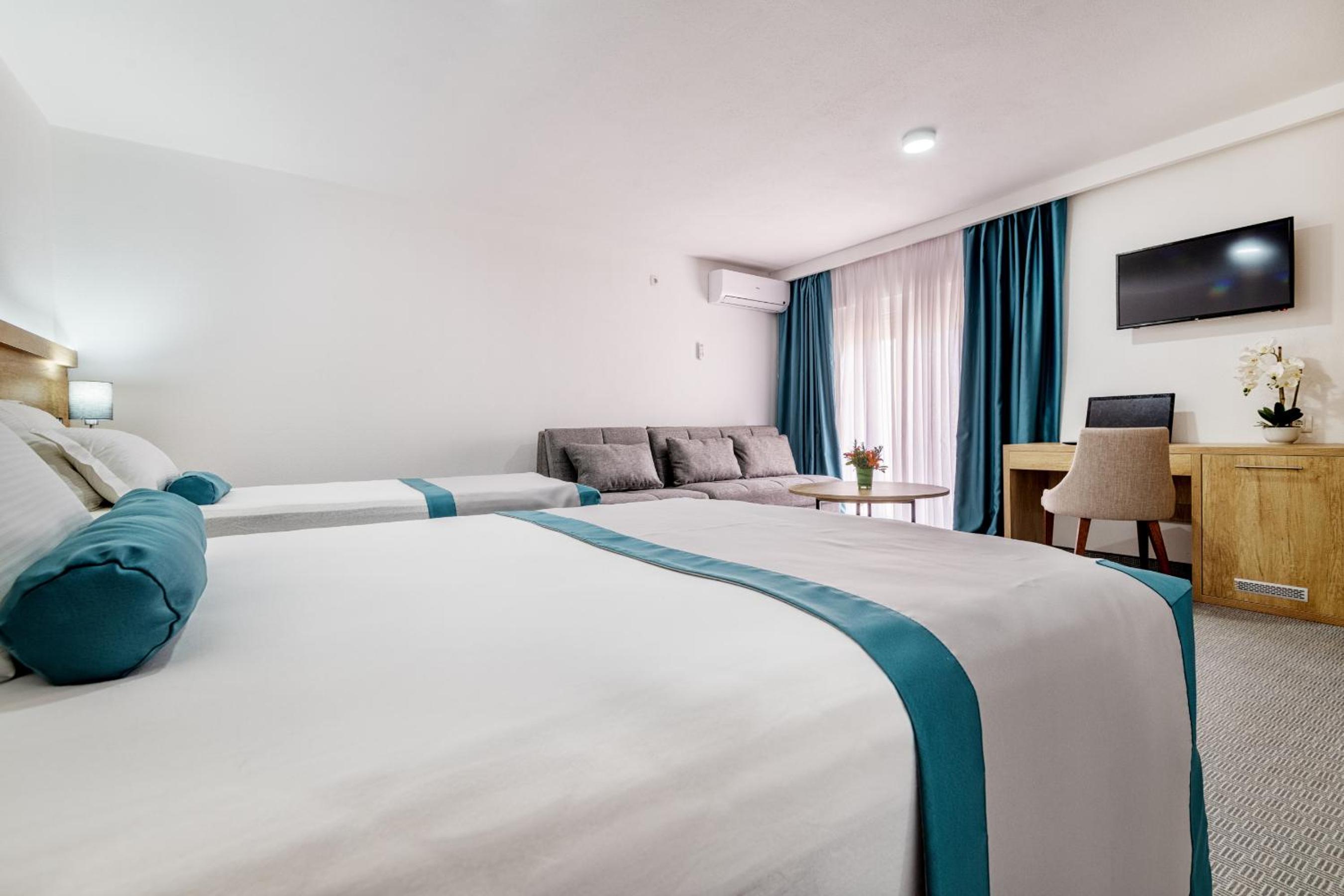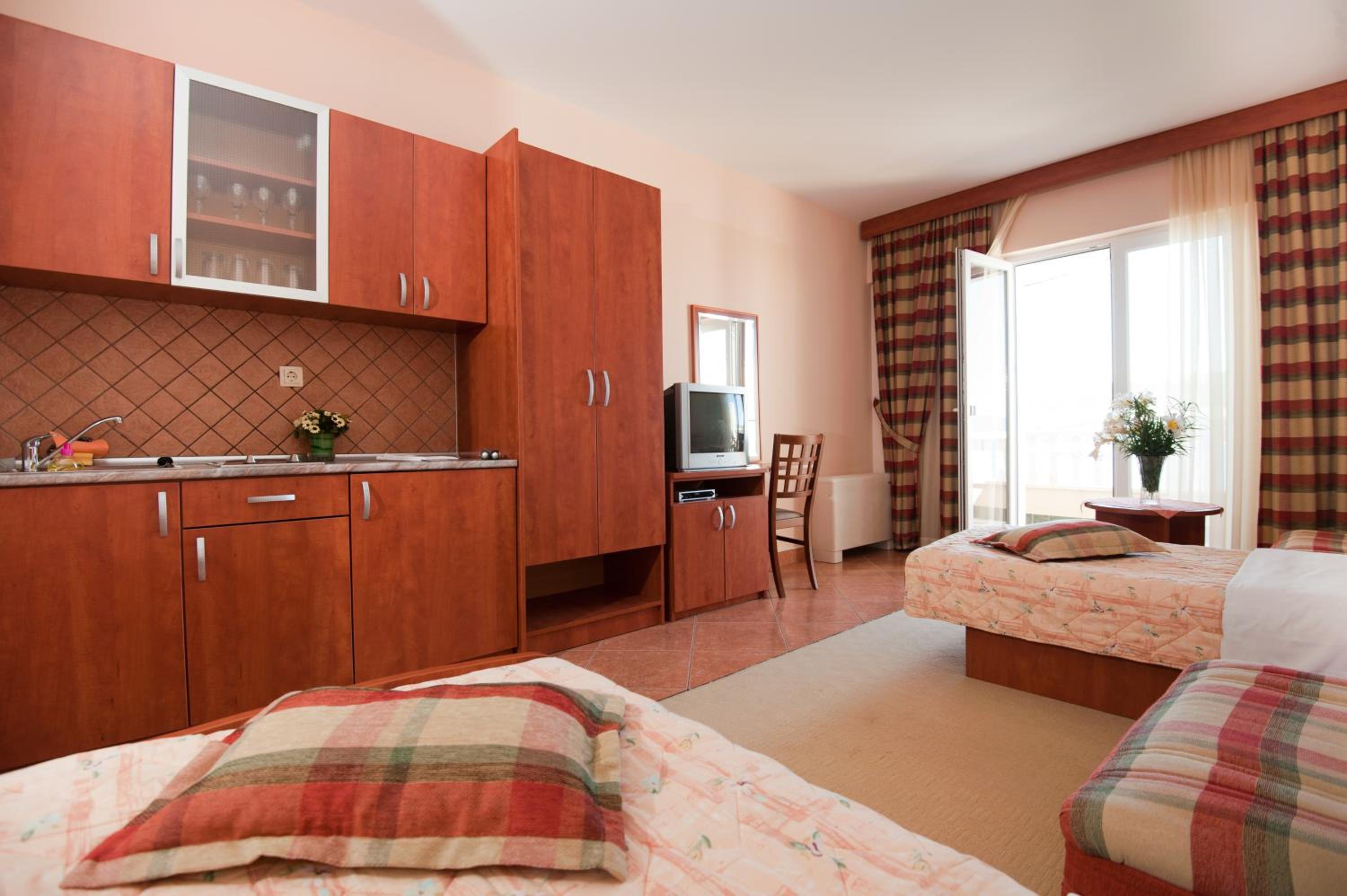 Hotel Porat offers modernly furnished rooms and apartments, each equipped with a balcony, fridge, and flat-screen TV. The inclusion of kitchenettes in some units provides guests with added convenience during their stay.