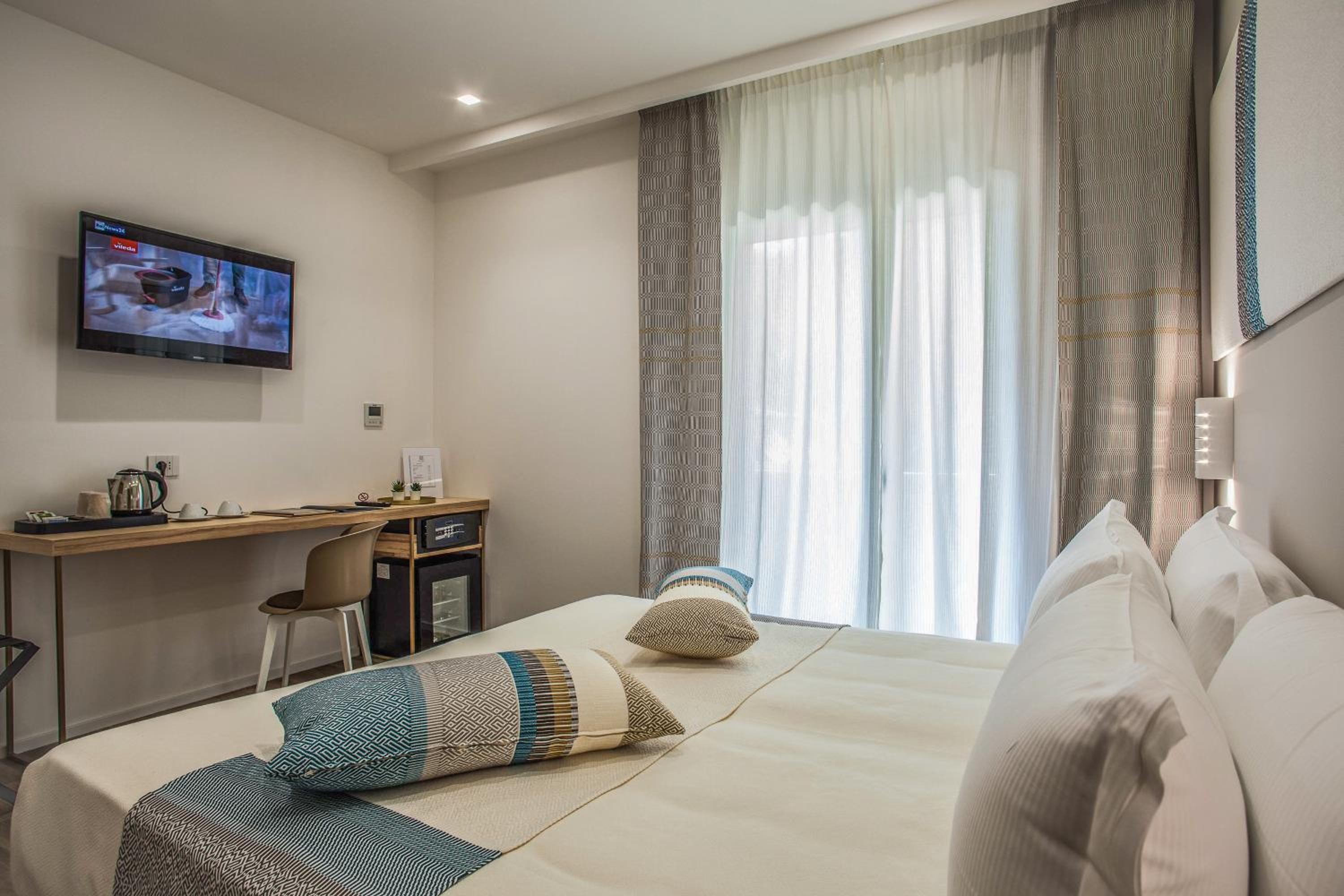 Cały personel był bardzo miły, panie z recepcji, z bufetu ze śniadaniem oraz panie sprzątające - wszystkie pomocne i miłe. Cały hotel i pokoje były bardzo czyste i regularnie sprzątane. Śniadania w porządku, były różnego rodzaju słodkości, ale znalazło się też coś na wytrawnie. Okolica spokojna, z dala od hałasu. Rzut beretem plaża, jednak nie należała do najładniejszych. Duży plus za czysty basen oraz leżaki, super, że był otwarty nawet w październiku. Na miejscu można wypożyczyć rowery, nie są pierwszej nowości, ale fajnie, że jest taka możliwość. Duży parking przy hotelu bezpłatny. Polecamy serdecznie